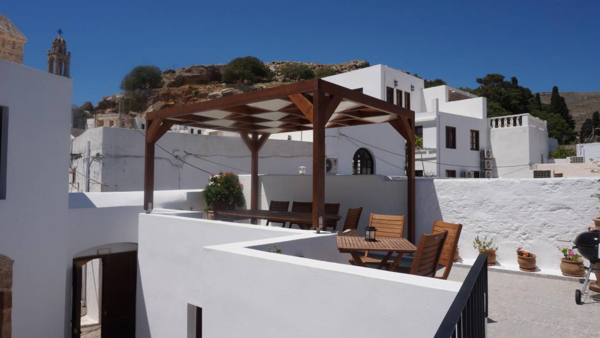 Εξοπλισμένη με μπανιέρα-υδρομασάζ και στρώματα Cocomat, αυτή η κλιματιζόμενη βίλα 4 υπνοδωματίων θα σας προσφέρει έξυπνες τηλεοράσεις επίπεδης οθόνης με εξοπλισμό οικιακού κινηματογράφου, κλιματισμό και 2 ευρύχωρες βεράντες με θέα στο Αιγαίο Πέλαγος, Ακρόπολη Λίνδου και η εκκλησία. Υπάρχει μια πλήρως εξοπλισμένη κουζίνα με τραπεζαρία και φούρνο, καθώς και 3 μπάνια, το ένα με μπανιέρα -υδρομασάζ. Παρέχονται εγκαταστάσεις πλυντηρίου και σιδερώματος.