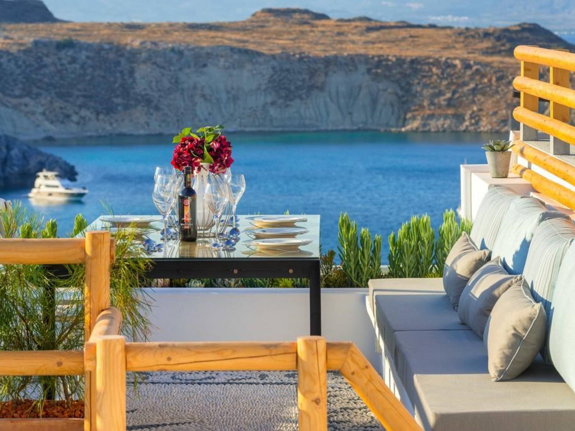 Το Lindos Shore Summer House Rhodes with Jacuzzi Η Ρόδος είναι μια πολυτελής ενοικίαση βίλας με 2 υπνοδωμάτια και υπέροχη θέα στη θάλασσα. Αυτή η ολοκαίνουργια βίλα είναι ένας παράδεισος αποκλειστικής ιδιωτικότητας, άνεσης και πολυτέλειας, ενσωματώνοντας έμπειρο σχεδιασμό και δημιουργικότητα, εκλεκτά υλικά, τοπική δεξιοτεχνία και πάθος για τελειότητα. Μοναδικά Λινδιακό και πανέμορφο, η εξοχική κατοικία Lindos shore προσφέρει καταλύματα απαράμιλλα σε ολόκληρο το χωριό της Λίνδου.
