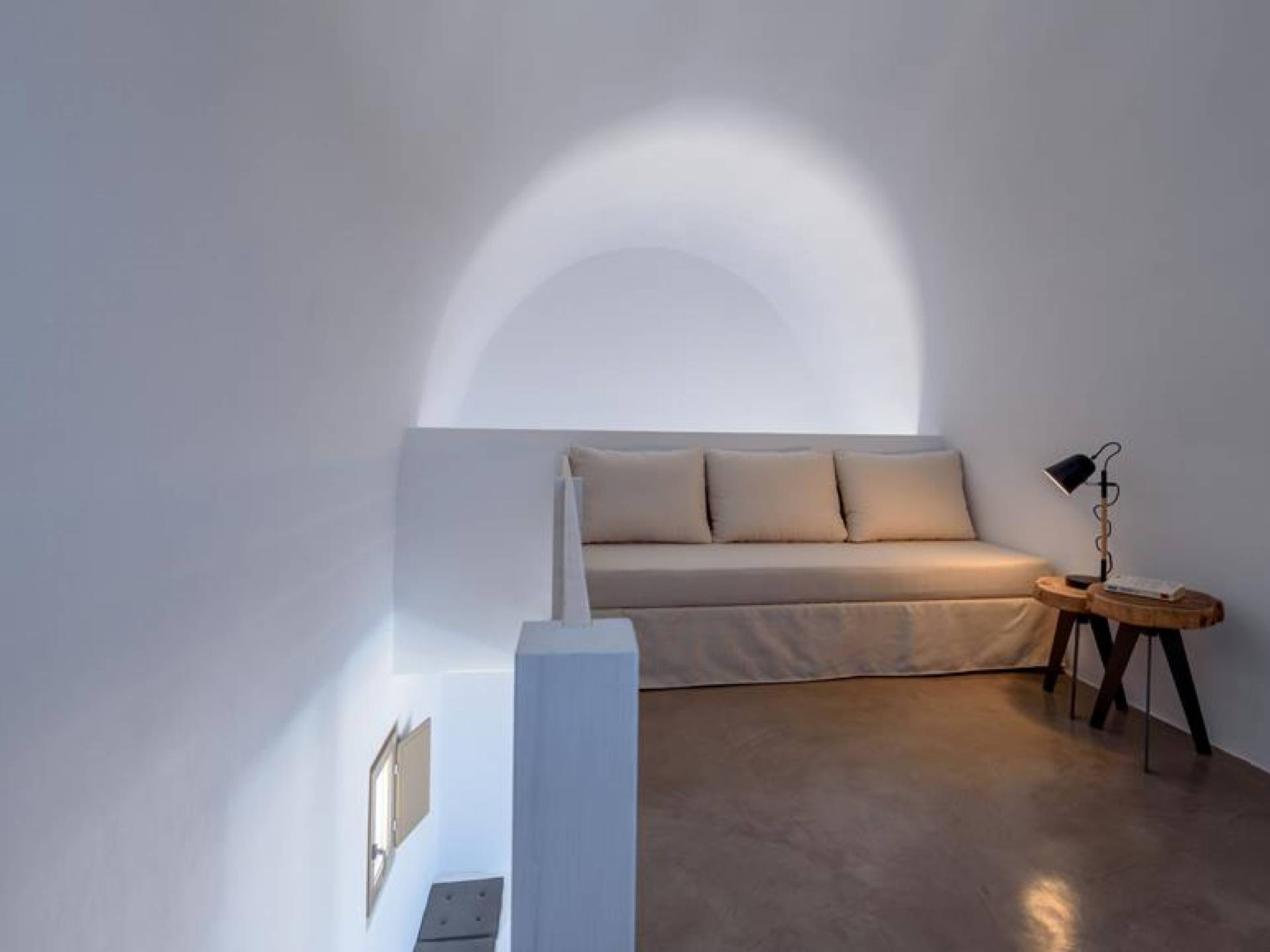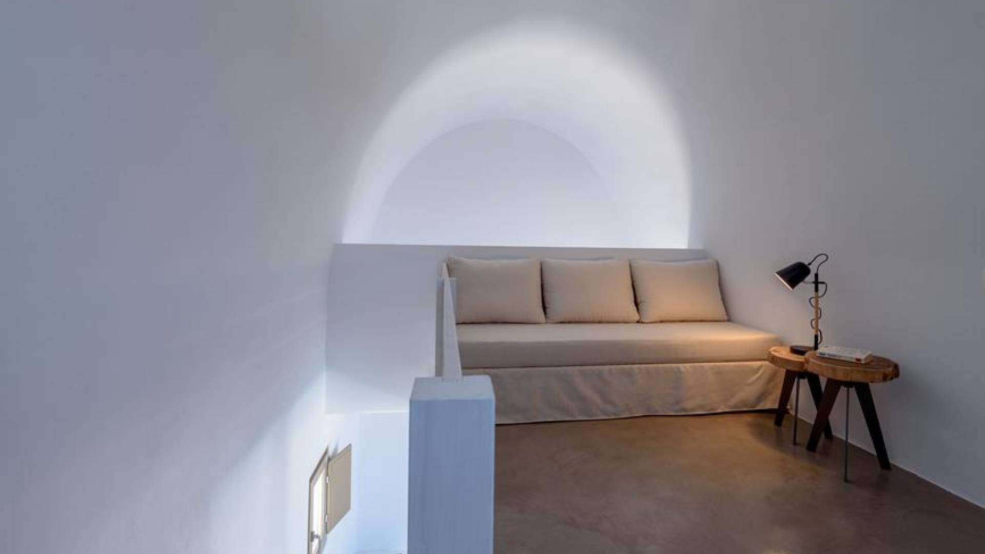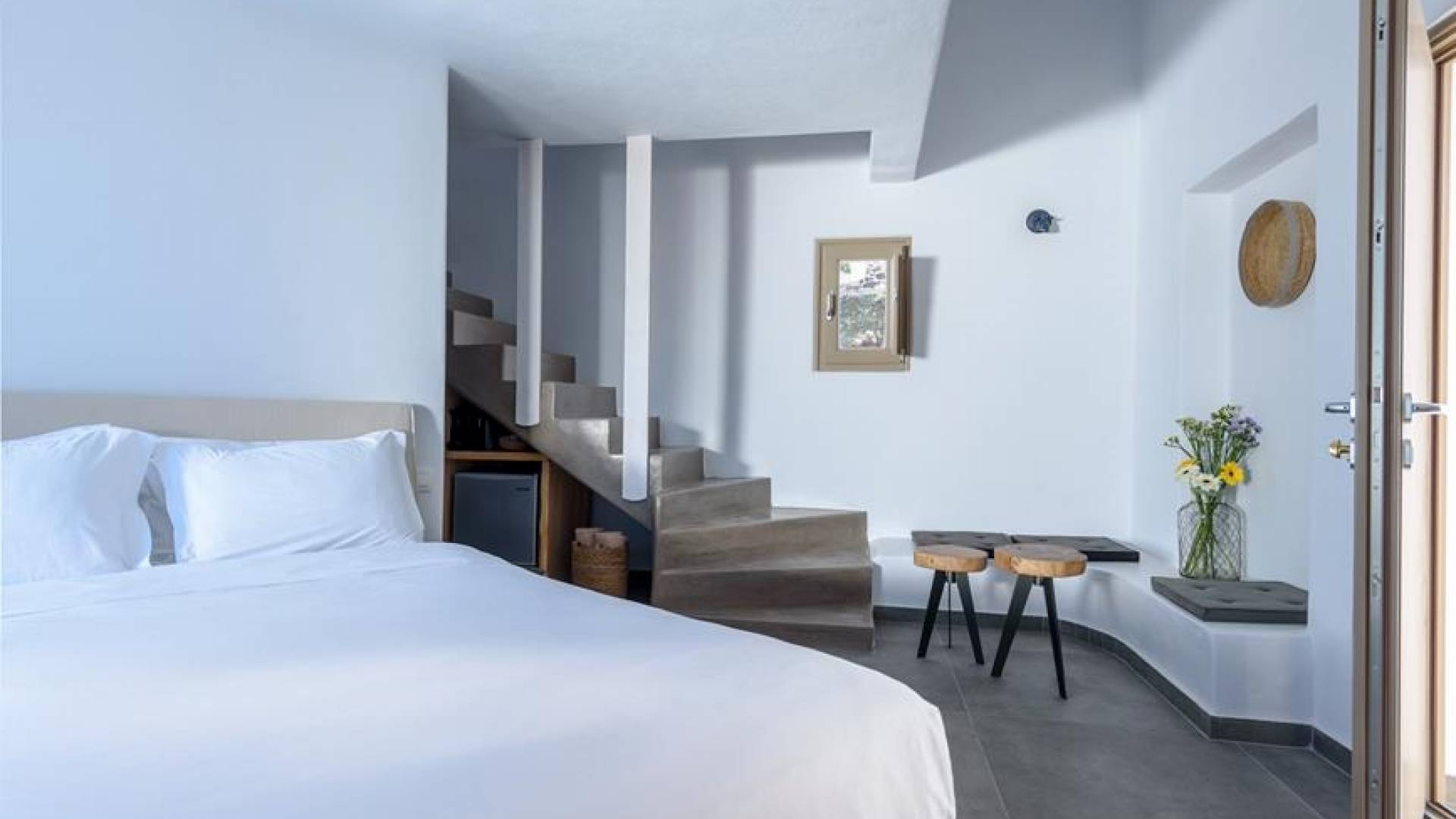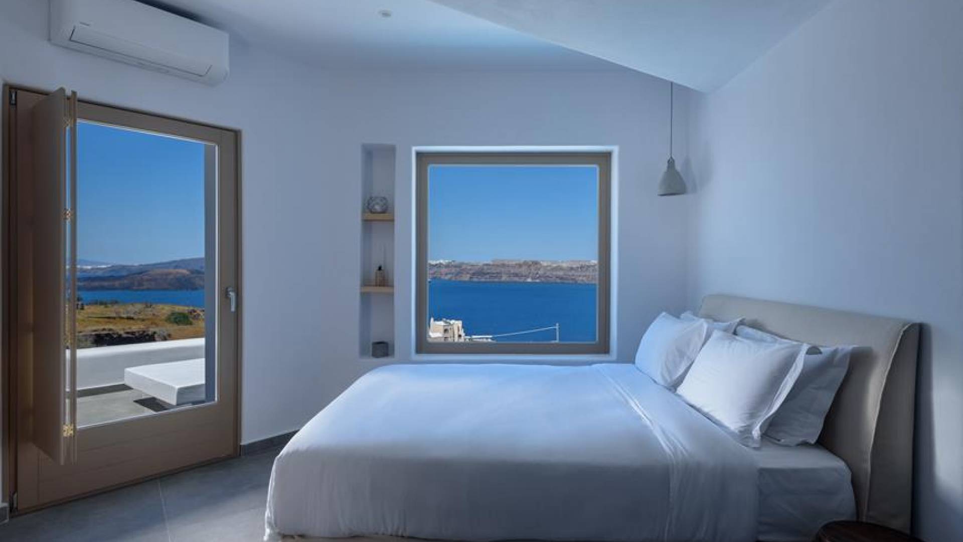 Η θέα στο υπνοδωμάτιο με τα παράθυρα με θέα στην Καλντέρα είναι η τέλεια δικαιολογία για να μην αφήσετε το κρεβάτι ενώ μένετε εδώ, ενώ η ιδιωτική θερμαινόμενη πισίνα ωθεί τον επισκέπτη να περάσει πολλές ώρες απόλαυσης ξεκουράζοντας τα μάτια του στο γαλήνιο τοπίο της καλντέρας. Το εσωτερικό χωρίζεται σε δύο επίπεδα. Στο ισόγειο, υπάρχει ένα μπάνιο και ένα υπνοδωμάτιο με μεγάλα παράθυρα που δίνουν θέα απευθείας από το κρεβάτι στην Καλντέρα. Στον ημιώροφο, υπάρχει ένα μικρό καθιστικό με καναπέ -κρεβάτι, μετατρέψιμο σε δύο μονά κρεβάτια με ορθοπεδικά στρώματα.