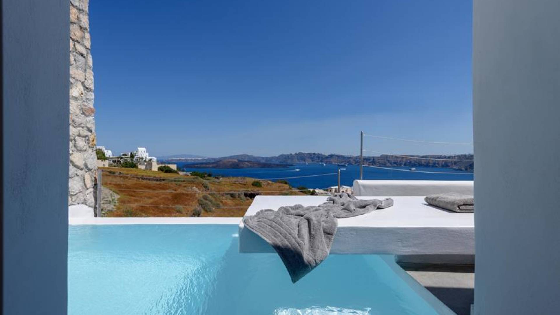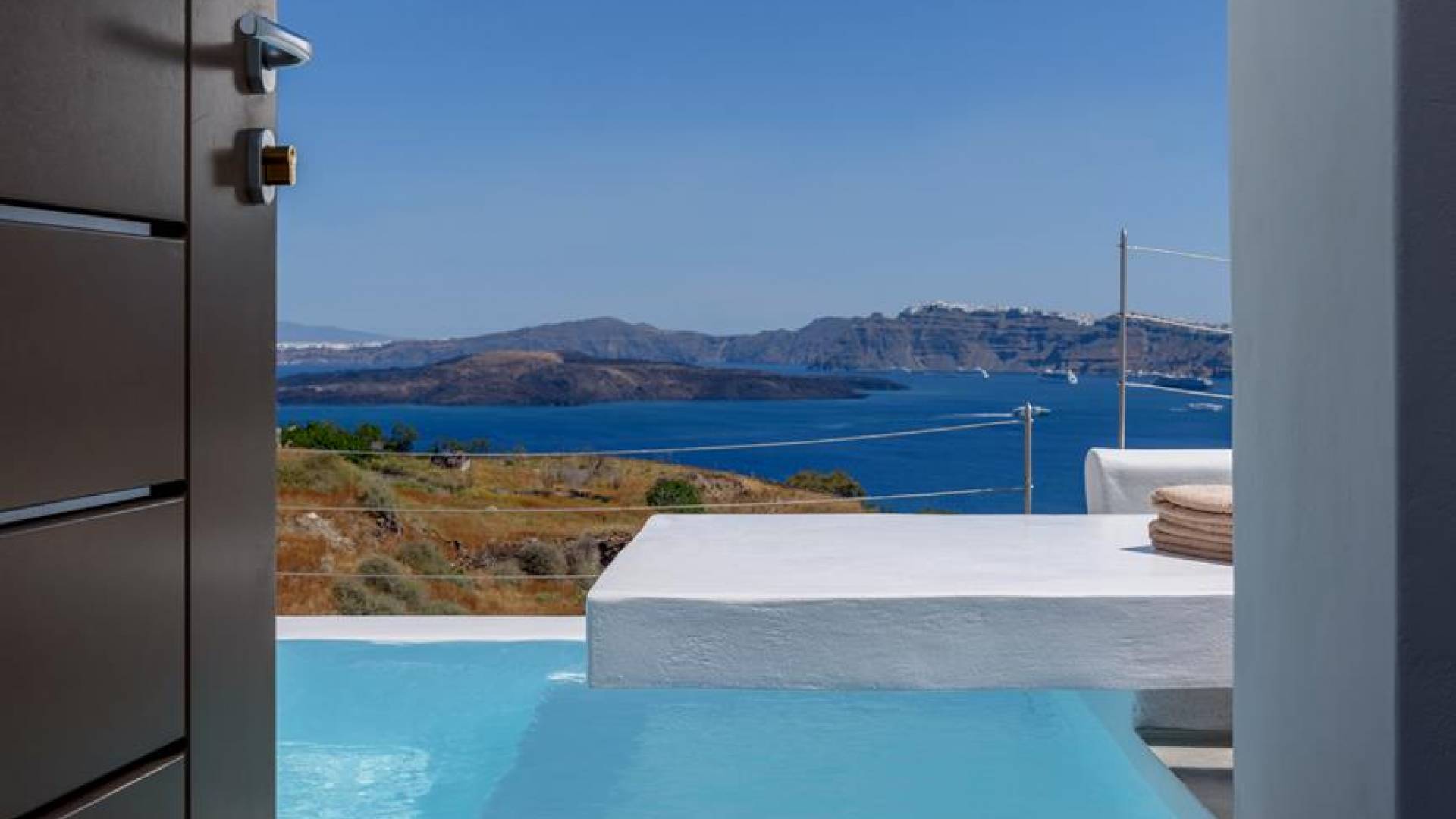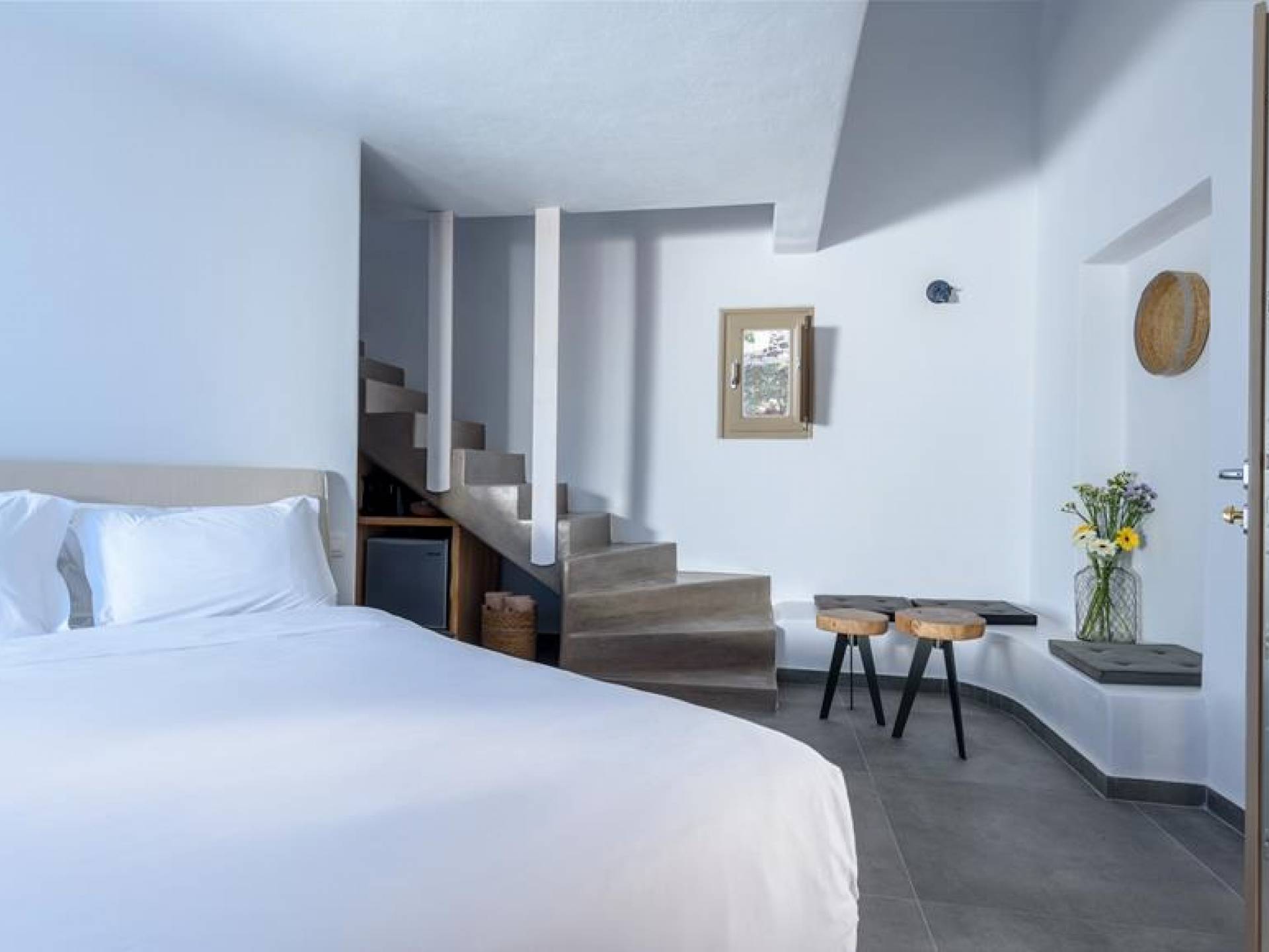 Η θέα στο υπνοδωμάτιο με τα παράθυρα με θέα στην Καλντέρα είναι η τέλεια δικαιολογία για να μην αφήσετε το κρεβάτι ενώ μένετε εδώ, ενώ η ιδιωτική θερμαινόμενη πισίνα ωθεί τον επισκέπτη να περάσει πολλές ώρες απόλαυσης ξεκουράζοντας τα μάτια του στο γαλήνιο τοπίο της καλντέρας. Το εσωτερικό χωρίζεται σε δύο επίπεδα. Στο ισόγειο, υπάρχει ένα μπάνιο και ένα υπνοδωμάτιο με μεγάλα παράθυρα που δίνουν θέα απευθείας από το κρεβάτι στην Καλντέρα. Στον ημιώροφο, υπάρχει ένα μικρό καθιστικό με καναπέ -κρεβάτι, μετατρέψιμο σε δύο μονά κρεβάτια με ορθοπεδικά στρώματα.