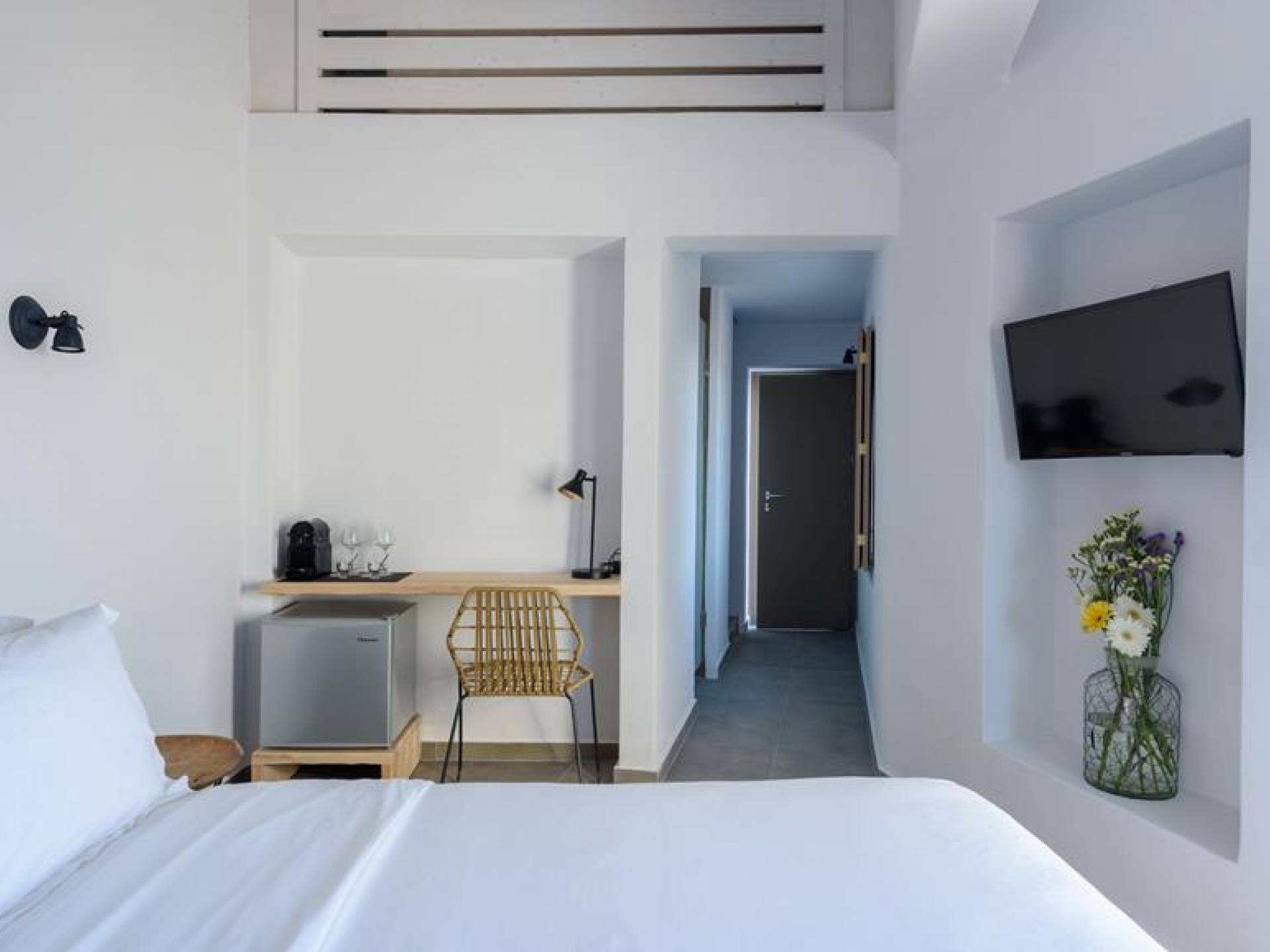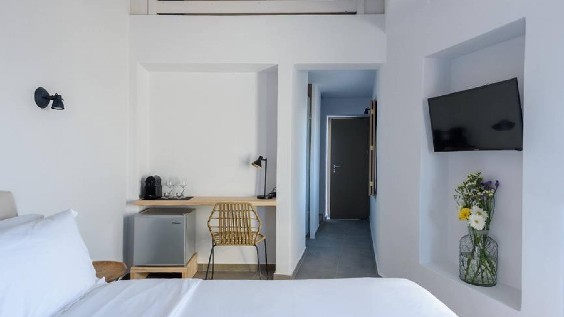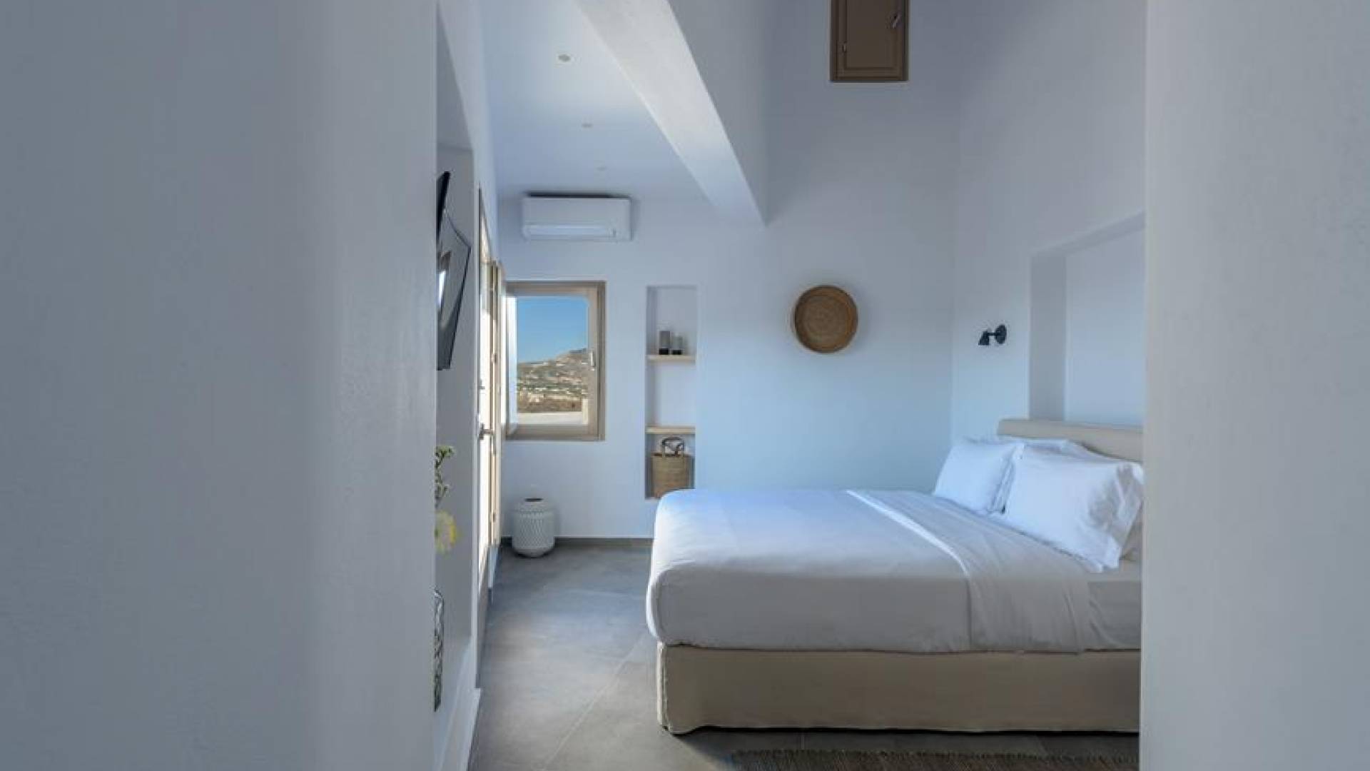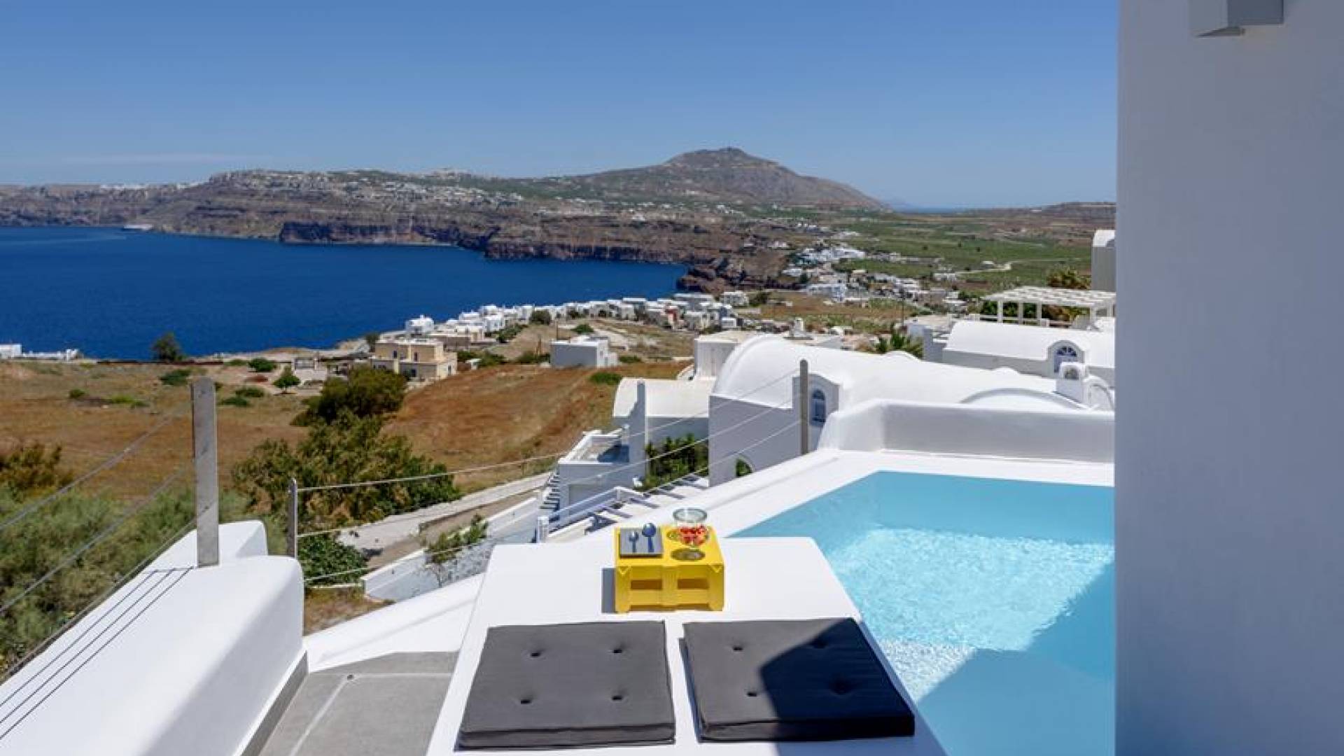 Η θέα στο υπνοδωμάτιο με τα παράθυρα με θέα στην Καλντέρα είναι η τέλεια δικαιολογία για να μην αφήσετε το κρεβάτι ενώ μένετε εδώ, ενώ η ιδιωτική θερμαινόμενη πισίνα ωθεί τον επισκέπτη να περάσει πολλές ώρες απόλαυσης ξεκουράζοντας τα μάτια του στο γαλήνιο τοπίο της καλντέρας. Το εσωτερικό χωρίζεται σε δύο επίπεδα. Στο ισόγειο, υπάρχει ένα μπάνιο και ένα υπνοδωμάτιο με μεγάλα παράθυρα που δίνουν θέα απευθείας από το κρεβάτι στην Καλντέρα. Στον ημιώροφο, υπάρχει ένα μικρό καθιστικό με καναπέ -κρεβάτι, μετατρέψιμο σε δύο μονά κρεβάτια με ορθοπεδικά στρώματα.