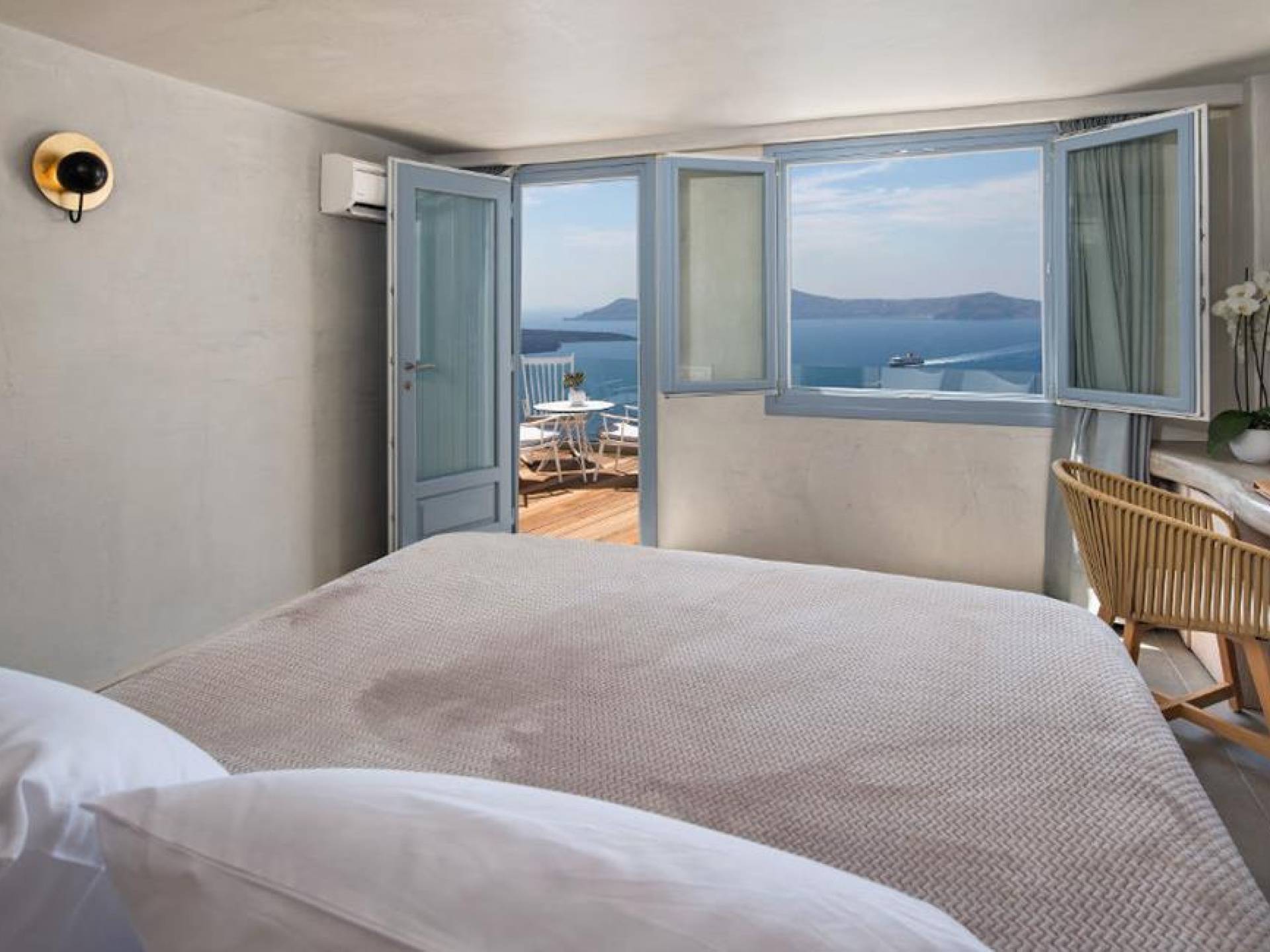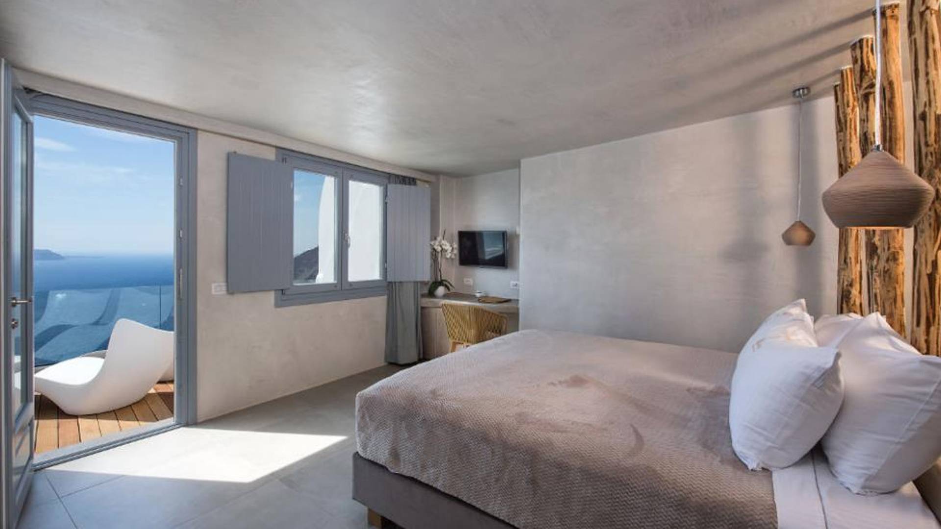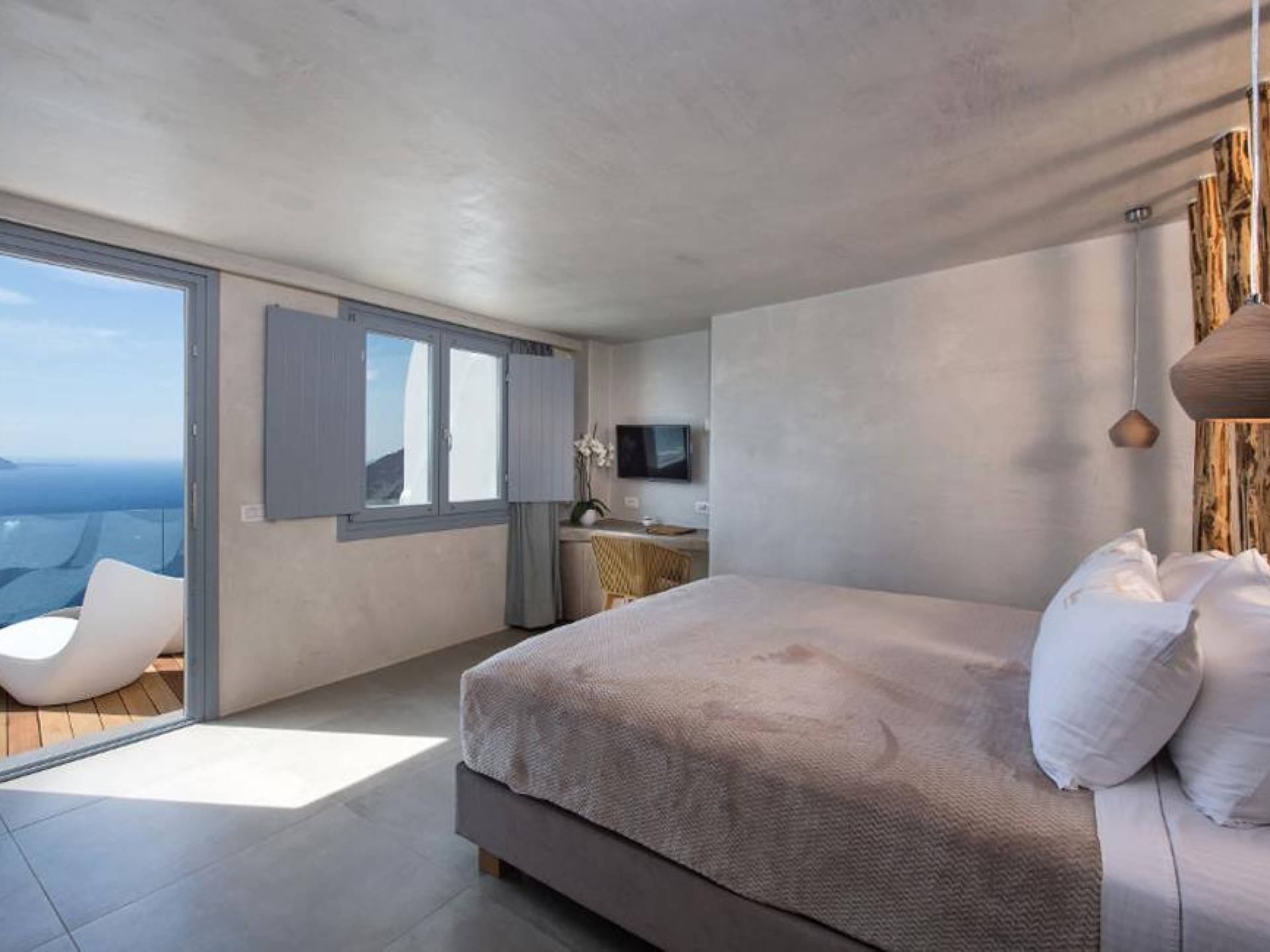 Μπείτε στο ιδιωτικό σας καταφύγιο, με κρεβάτι king size και ιδιωτικό μπαλκόνι με εξαιρετική θέα στη θάλασσα και στο ηφαίστειο. Το Athina Junior Cave Suite είναι ιδανικό για ζευγάρια που αναζητούν ρομαντισμό και χαλάρωση.