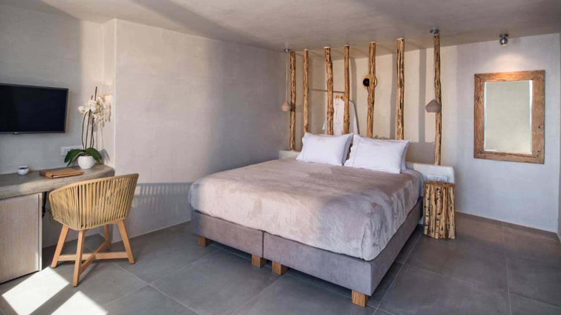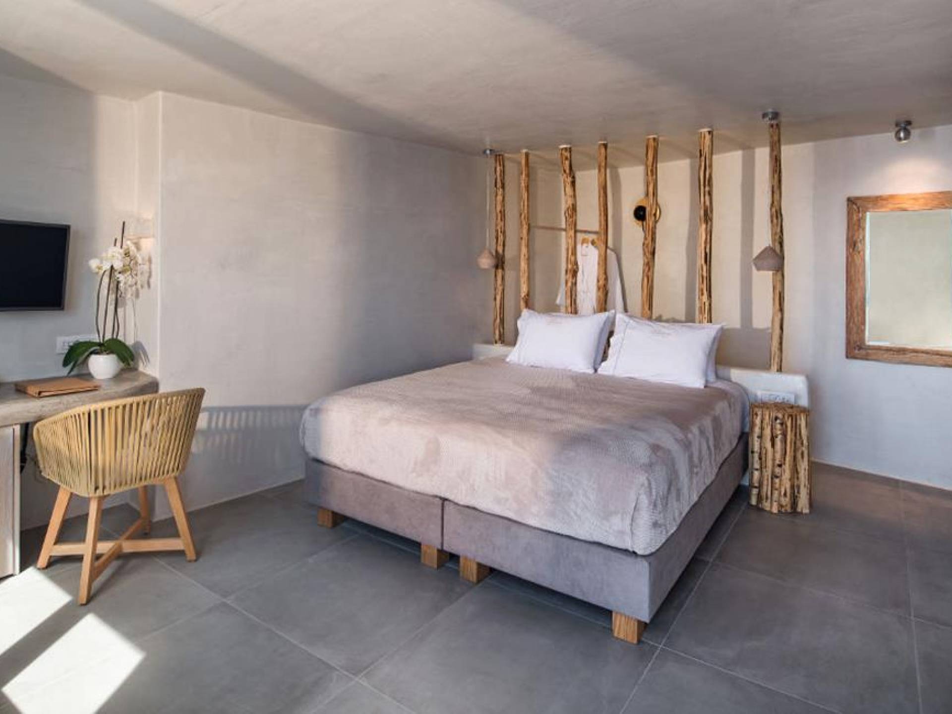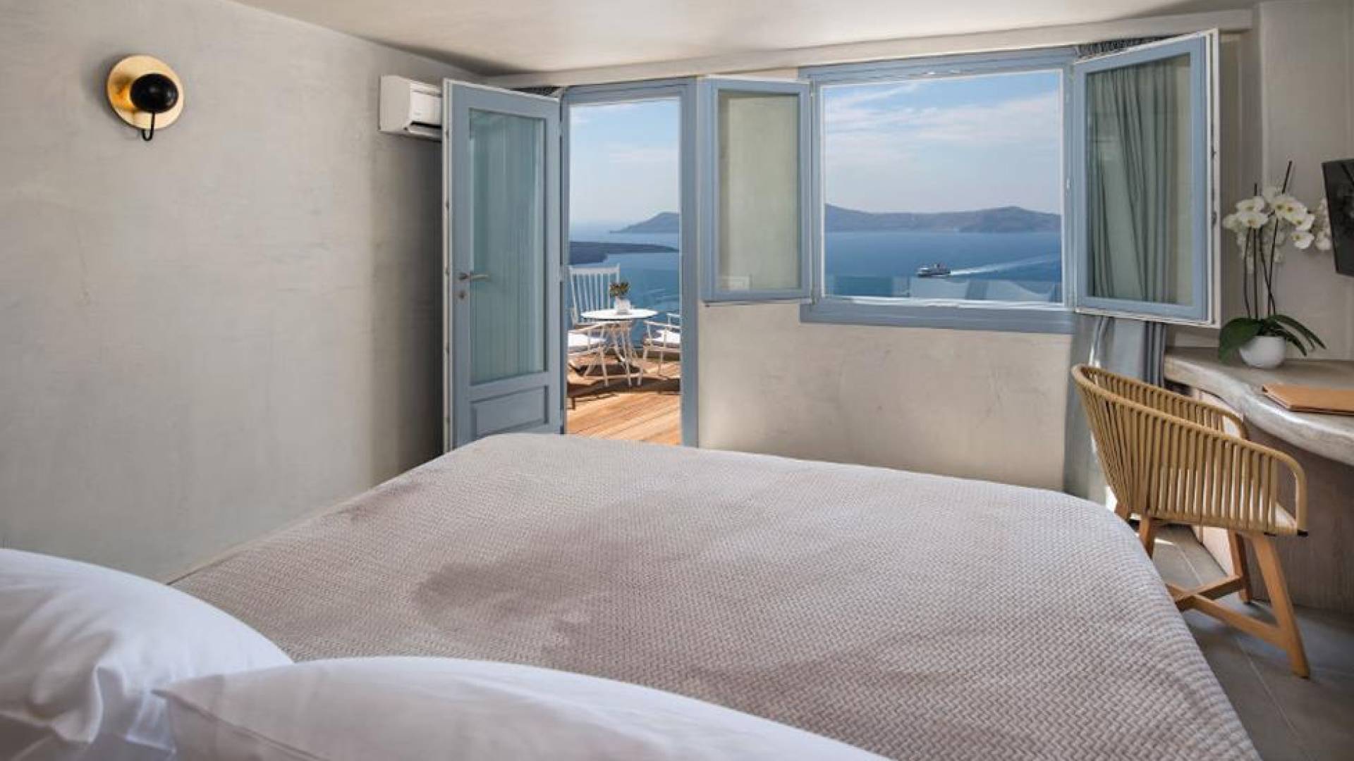 Μπείτε στο ιδιωτικό σας καταφύγιο, με κρεβάτι king size και ιδιωτικό μπαλκόνι με εξαιρετική θέα στη θάλασσα και στο ηφαίστειο. Το Athina Junior Cave Suite είναι ιδανικό για ζευγάρια που αναζητούν ρομαντισμό και χαλάρωση.