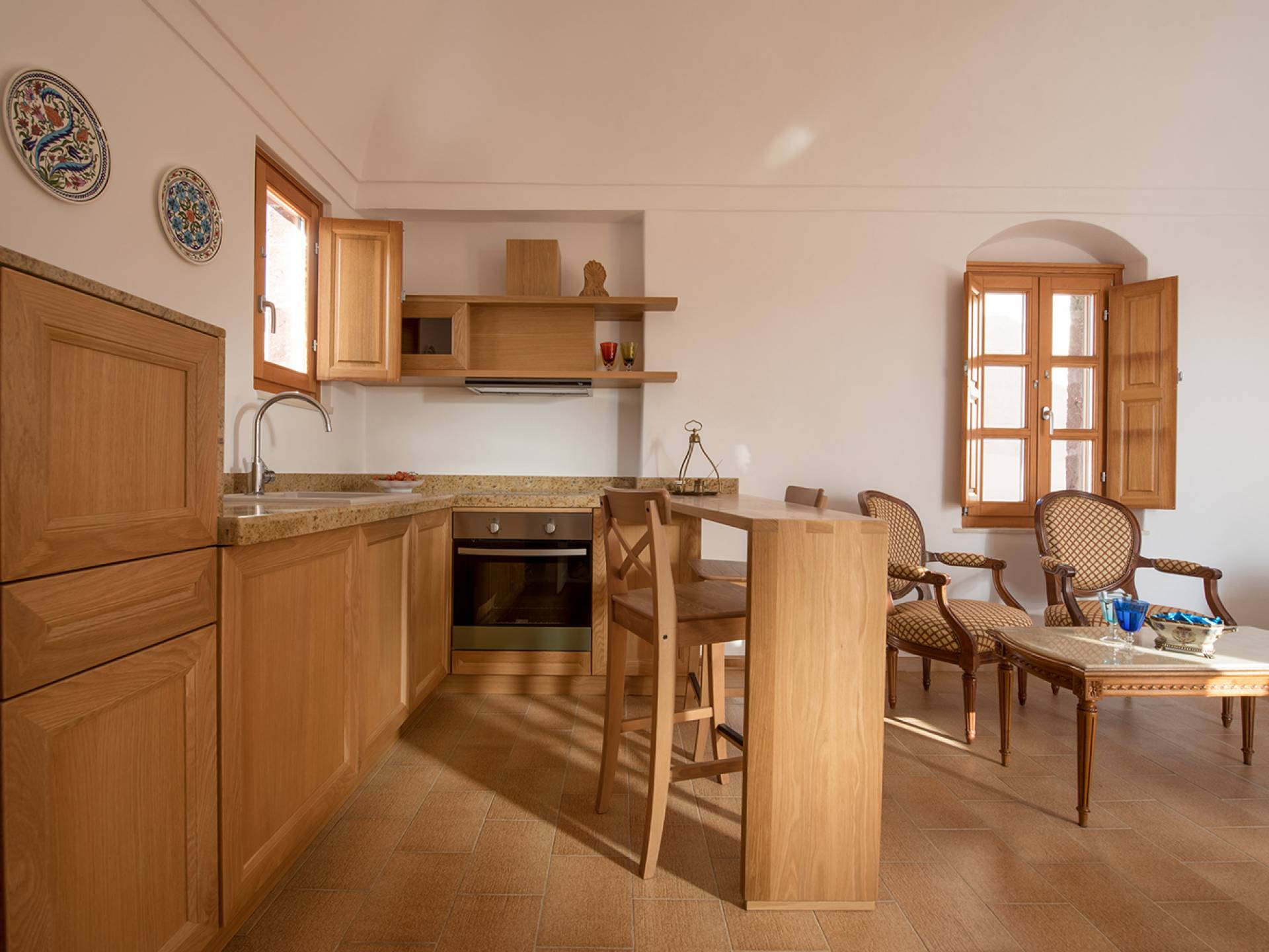 Τα έπιπλα και η διακόσμηση του εσωτερικού κάθε διαμερίσματος αντικατοπτρίζουν το ύφος της περιόδου και είναι σε αρμονία με τα ιδιαίτερα μορφολογικά χαρακτηριστικά της εσωτερικής αρχιτεκτονικής, ενώ η κατάλληλη χρήση υλικών (κυρίως μάρμαρο, πέτρα και ξύλο) και εξοπλισμός προσφέρει μια σύγχρονη πολυτελή εγκατάσταση για μια ευχάριστη και άνετη διαμονή.