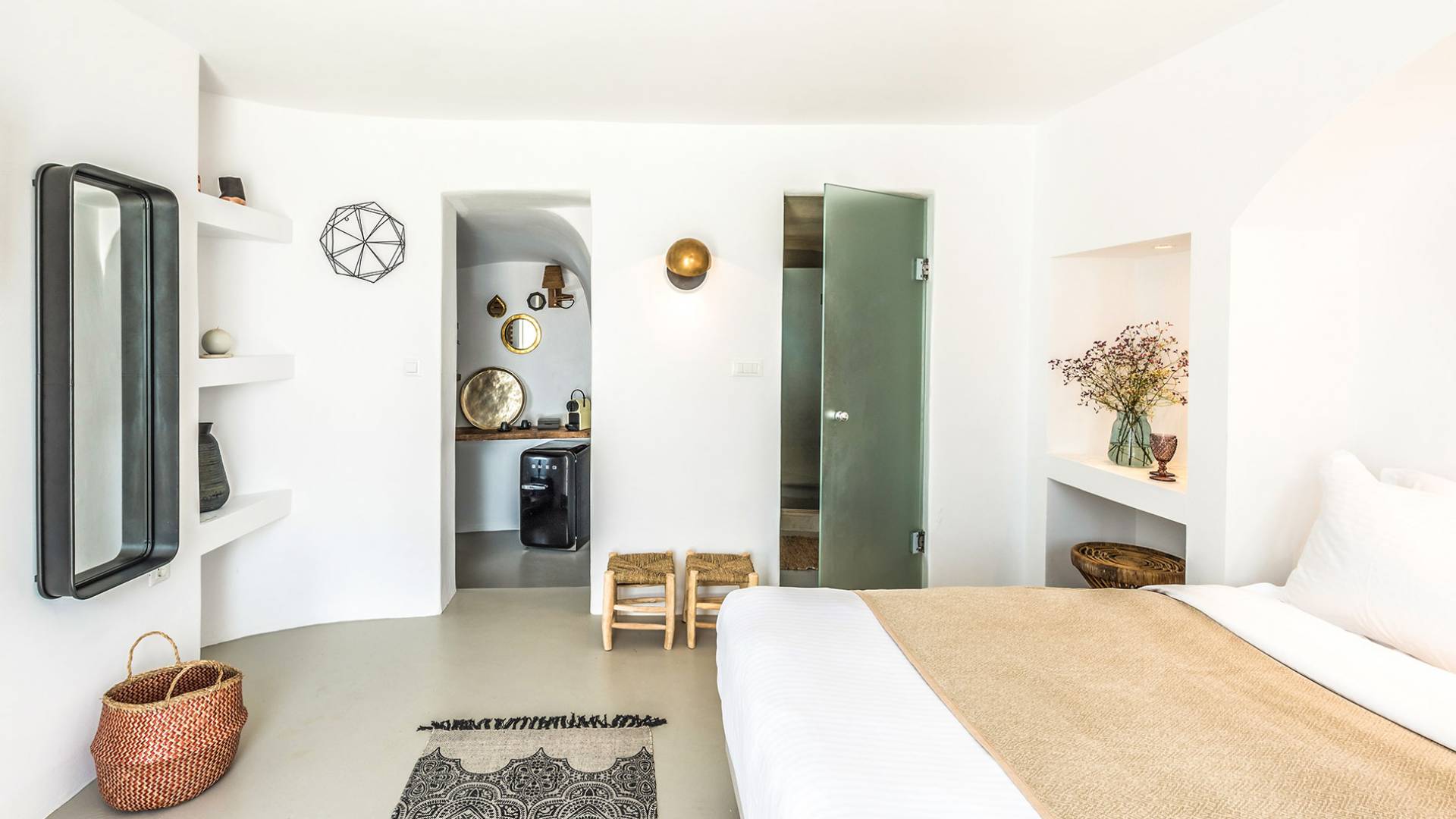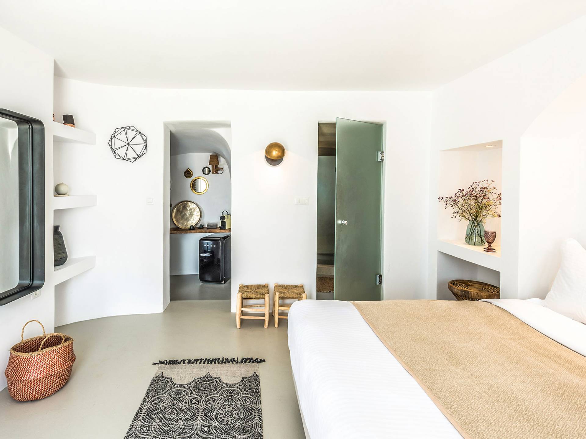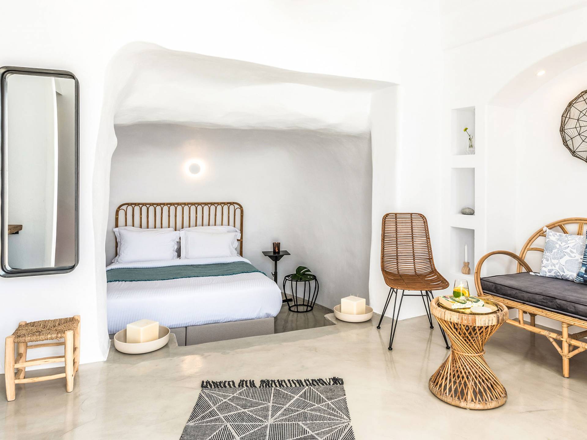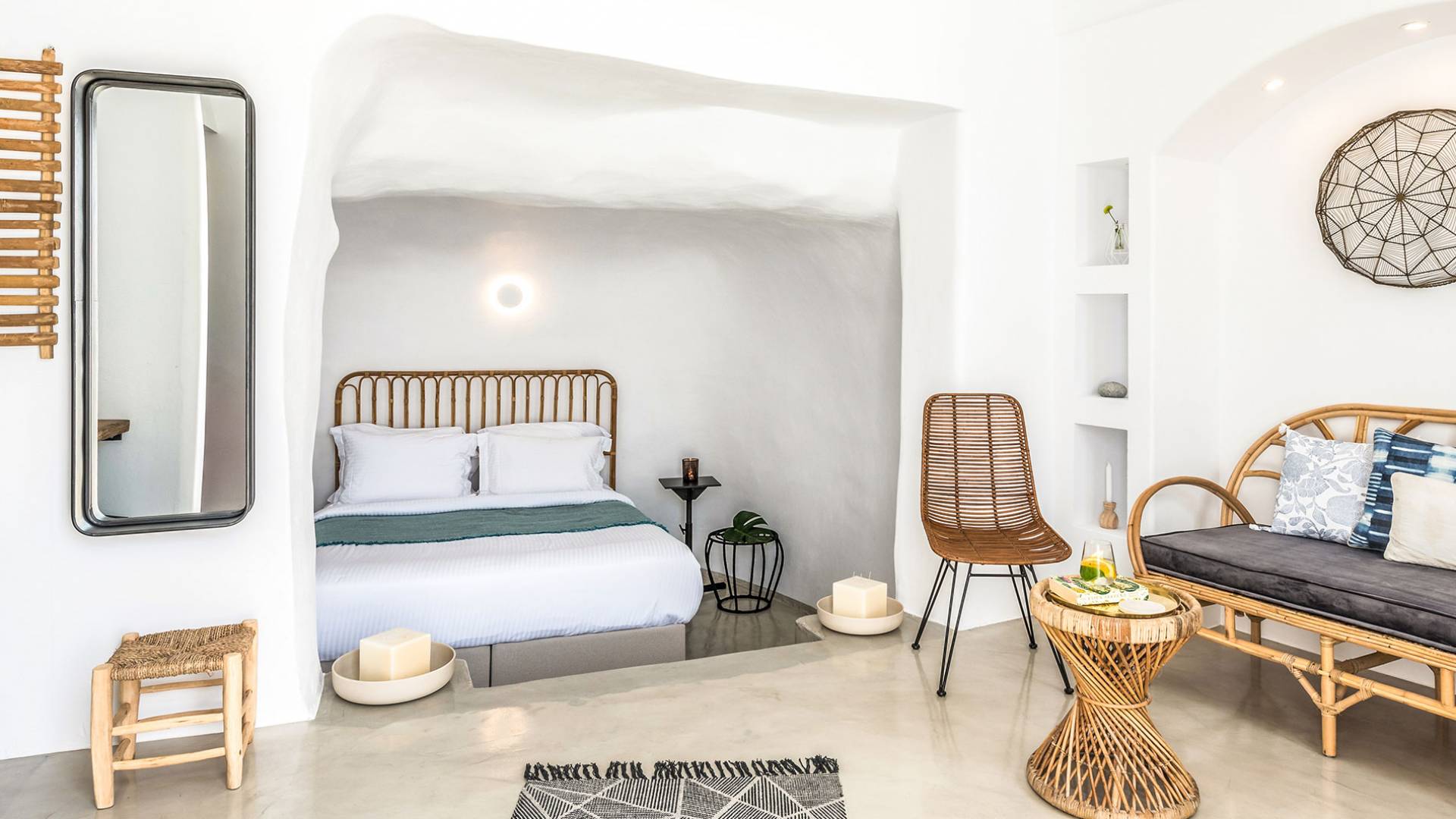 Οι οκτώ Cocoon Suites Santorini 5* φέρνουν μια νέα εικόνα για τη φιλοξενία. Καθένα είναι ξεχωριστά διακοσμημένο με μοναδικές λεπτομέρειες για κάθε δωμάτιο, δημιουργώντας μια οικεία ατμόσφαιρα "στυλ σπηλιάς", με φυσικά υλικά όπως βράχια και ξύλα. Η κομψή, στιλάτη απλότητα είναι ντυμένη με απαλούς ήσυχους τόνους, ενώ παρέχει όλες τις σύγχρονες ανεπιτήδευτες ανέσεις της πολυτελούς ξυπόλητης.
