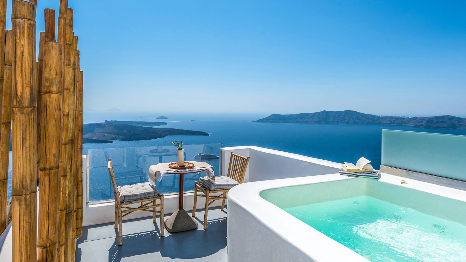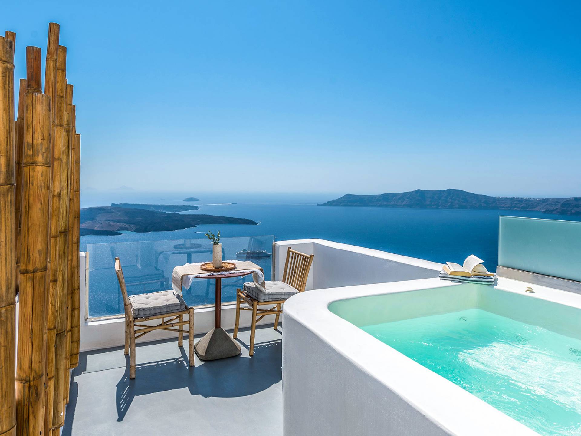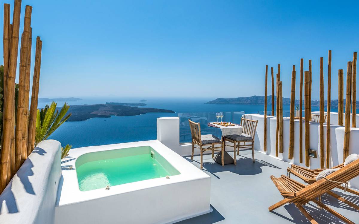 Η Junior Σουίτα μπορεί να φιλοξενήσει δύο άτομα σε έναν άνετο χώρο 28μ2. Το διπλό κρεβάτι συνοδεύεται από το διάσημο στρώμα Simmons (μοντέλο Suite Memo 28), ίσως το καλύτερο στον κόσμο, με επαναστατική τεχνολογία ύπνου για ανενόχλητο ύπνο. Και όταν θέλετε πραγματικά να χαλάσετε τον εαυτό σας, μπορείτε πάντα να μπείτε στο ιδιωτικό σας τζακούζι με θέα την Καλντέρα, το Αιγαίο και το Ηφαίστειο.
