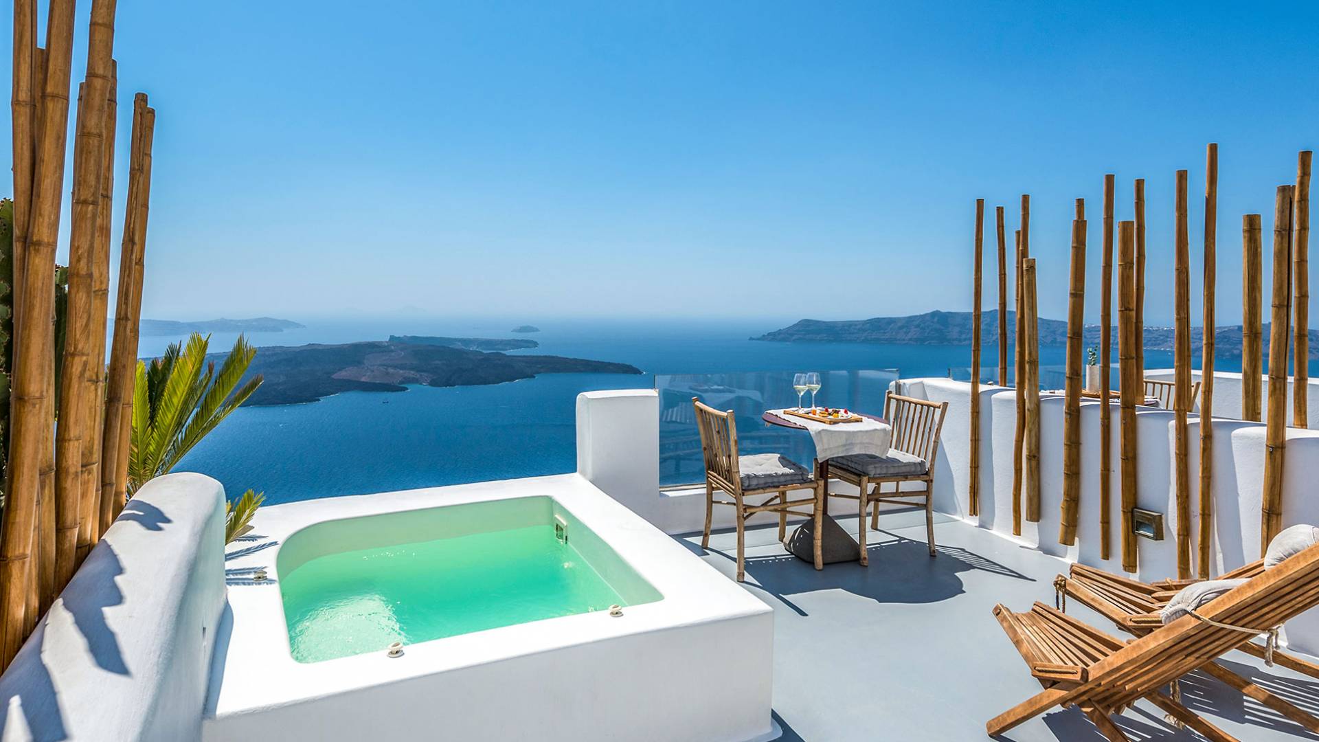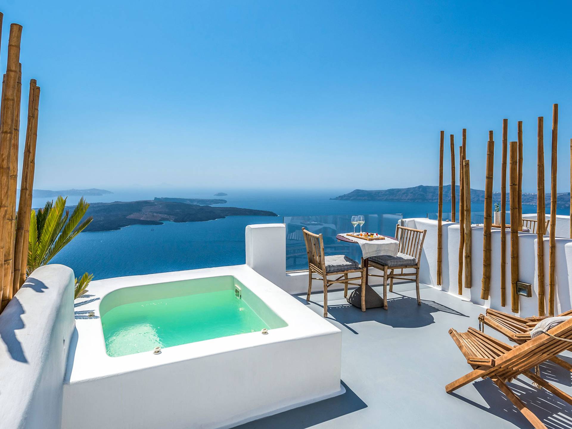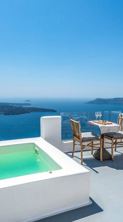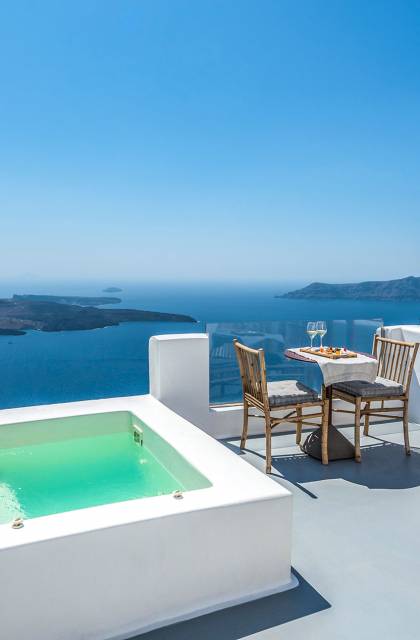 Η Junior Σουίτα μπορεί να φιλοξενήσει δύο άτομα σε έναν άνετο χώρο 28μ2. Το διπλό κρεβάτι συνοδεύεται από το διάσημο στρώμα Simmons (μοντέλο Suite Memo 28), ίσως το καλύτερο στον κόσμο, με επαναστατική τεχνολογία ύπνου για ανενόχλητο ύπνο. Και όταν θέλετε πραγματικά να χαλάσετε τον εαυτό σας, μπορείτε πάντα να μπείτε στο ιδιωτικό σας τζακούζι με θέα την Καλντέρα, το Αιγαίο και το Ηφαίστειο.