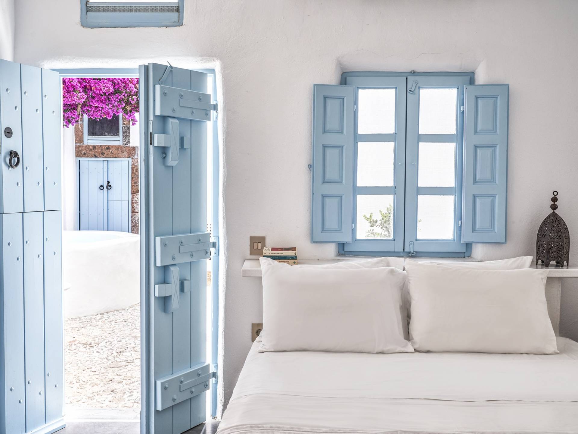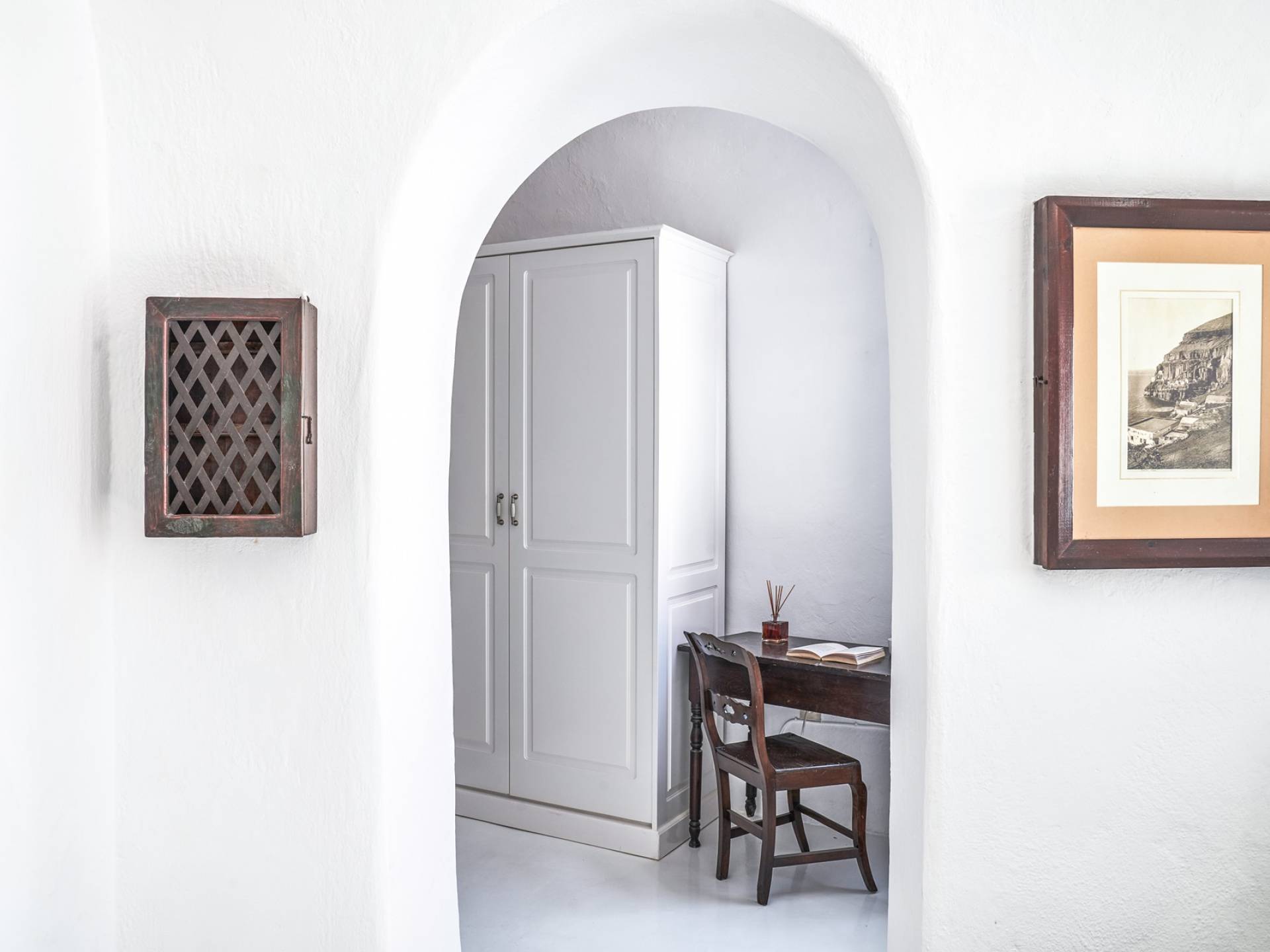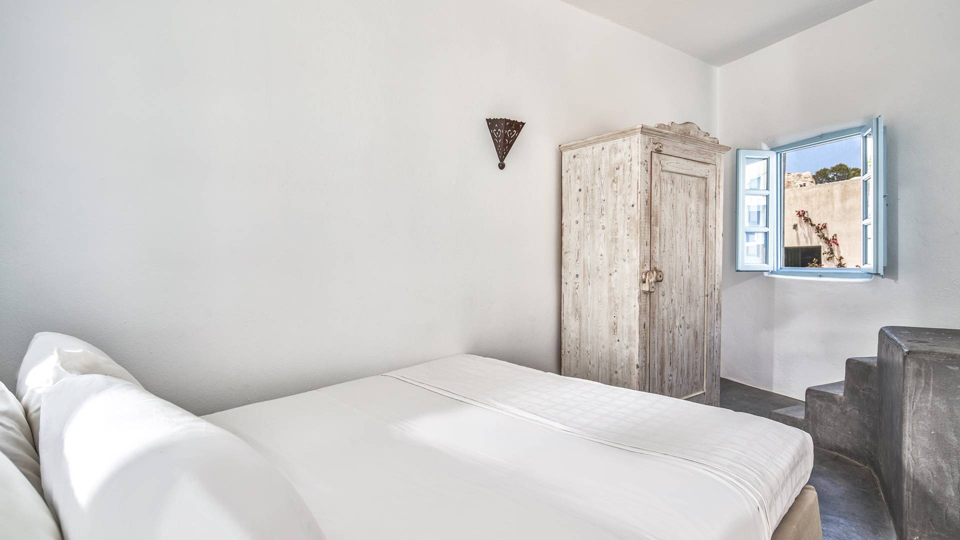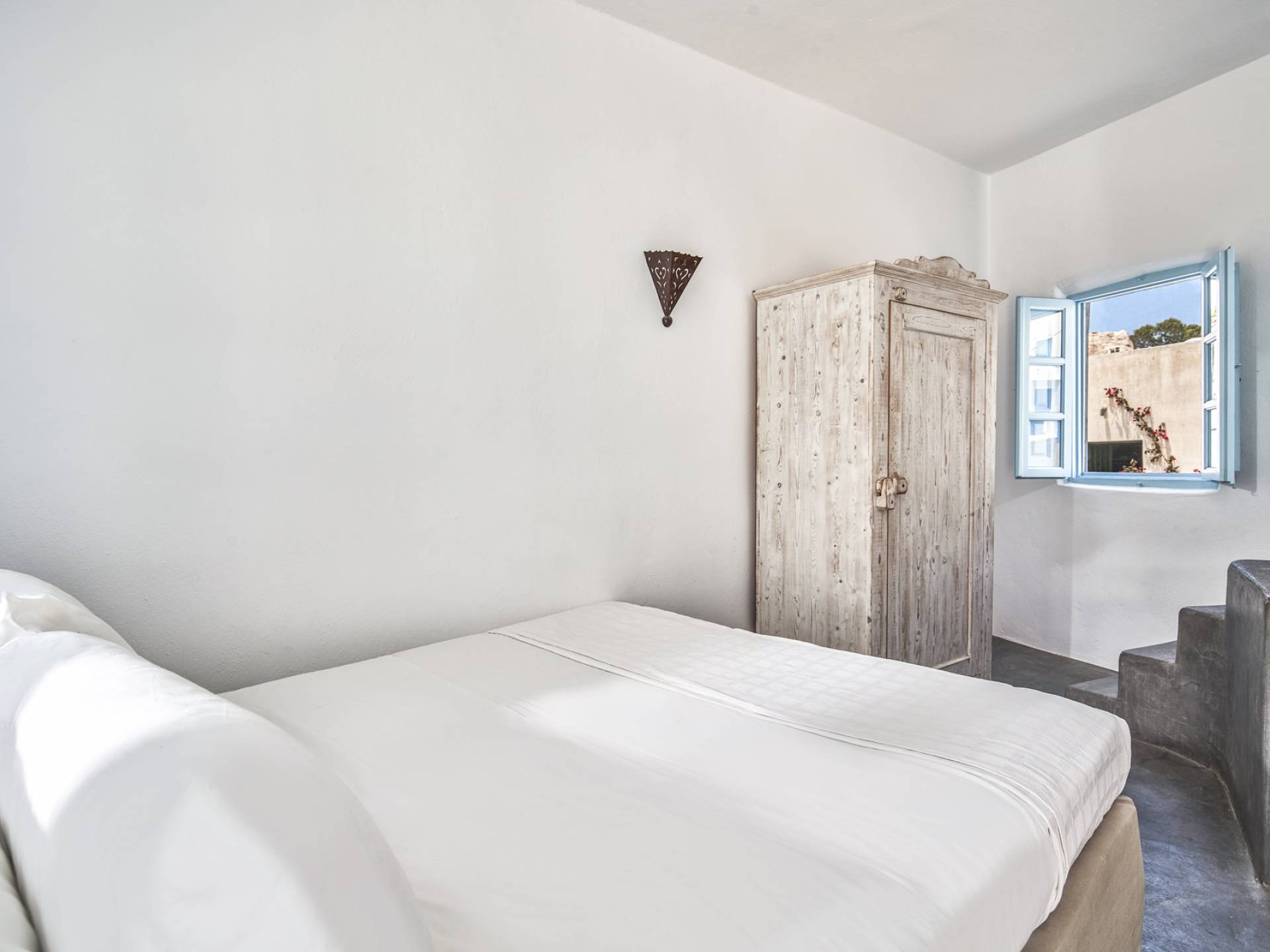 Το ευρύχωρο κυρίως υπνοδωμάτιο, με ψηλή θολωτή οροφή, έχει θέα στην αυλή. Αυτό το υπνοδωμάτιο εξυπηρετεί ένα μεγάλο μπάνιο με σύγχρονες ανέσεις. Το δεύτερο υπνοδωμάτιο είναι ένας ξενώνας που έχει τη δική του είσοδο από την αυλή. Το δίκλινο υπνοδωμάτιο είναι άνετου μεγέθους και μια μικρή σκάλα οδηγεί στο ιδιωτικό μπάνιο με ντους. Αυτή είναι μια υπέροχη βίλα για ένα ή δύο ζευγάρια ή μια μικρή οικογένεια που θέλουν ένα ιδιωτικό καταφύγιο από το οποίο θα εξερευνήσουν το νησί.