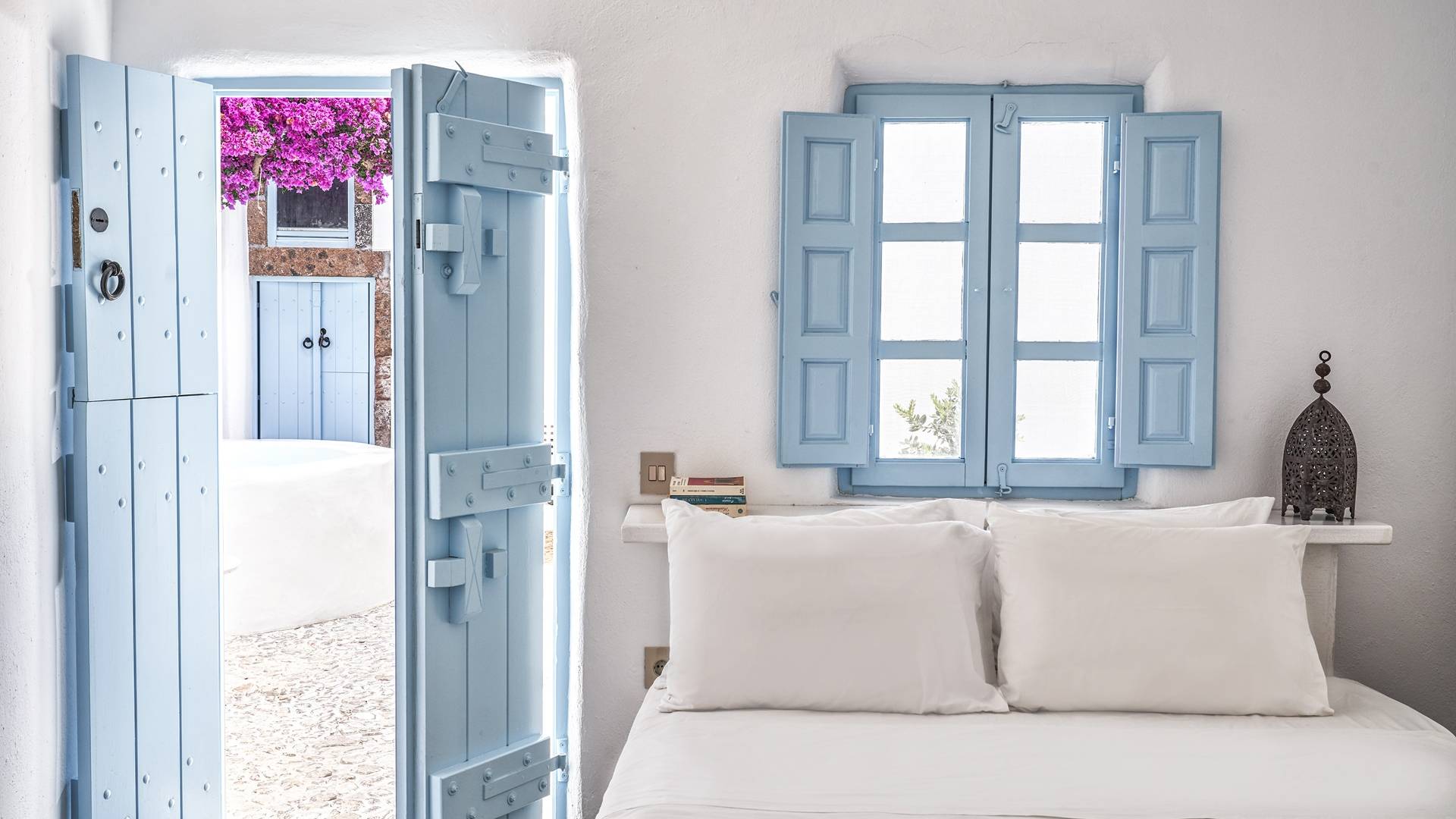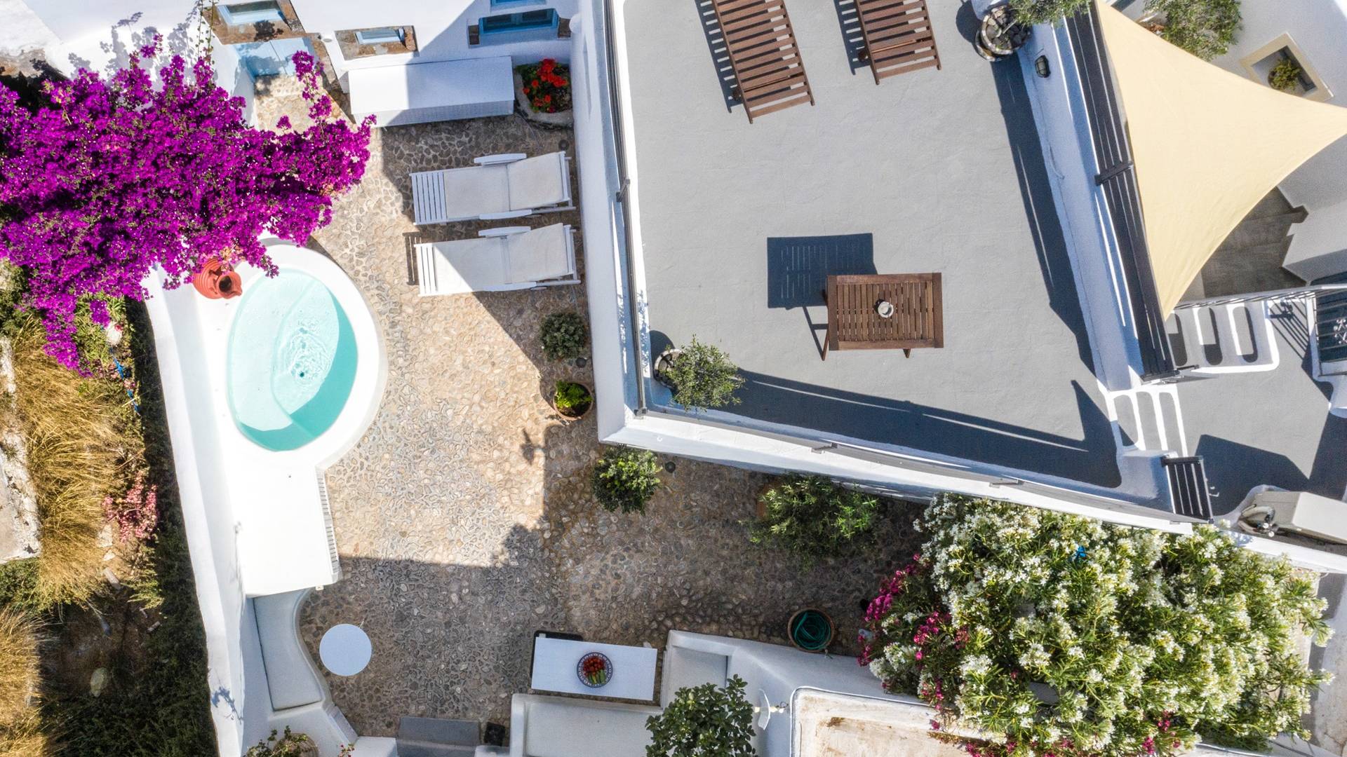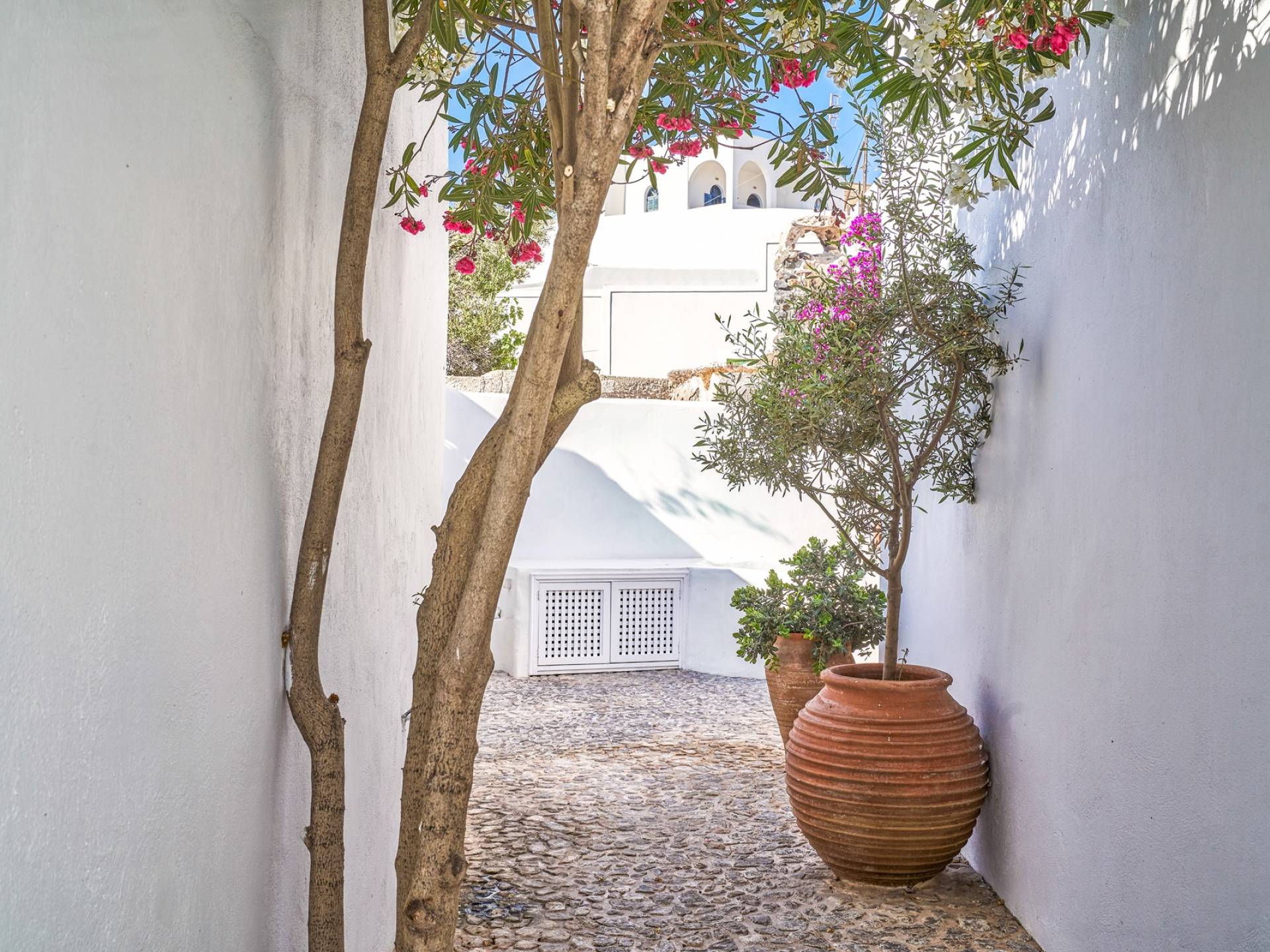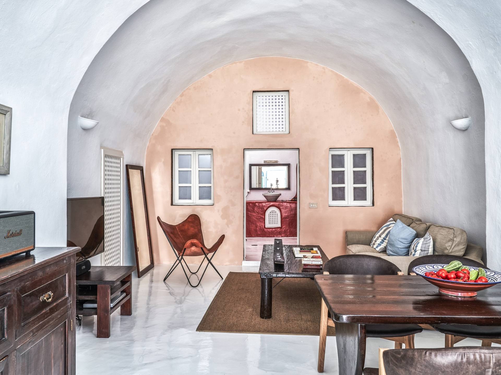 Βρίσκεται κάτω από την εκκλησία των Αγίων Αναργύρων με το υπέροχο καμπαναριό, το Villa Ivi δύο υπνοδωματίων είναι ένα γοητευτικό καταφύγιο από τη φασαρία των Φηρών και της Οίας. Προστατευμένο από τους κυκλαδίτικους ανέμους, το χωριό Μεγαλοχώρι χωρίς κίνηση προσφέρει μια ειρηνική και περιζήτητη εναλλακτική λύση. Η ρομαντική Villa Ivi παρείχε κάποτε στους χωρικούς ένα ασφαλές καταφύγιο από ληστές πειρατές που εισέβαλαν στο νησί.