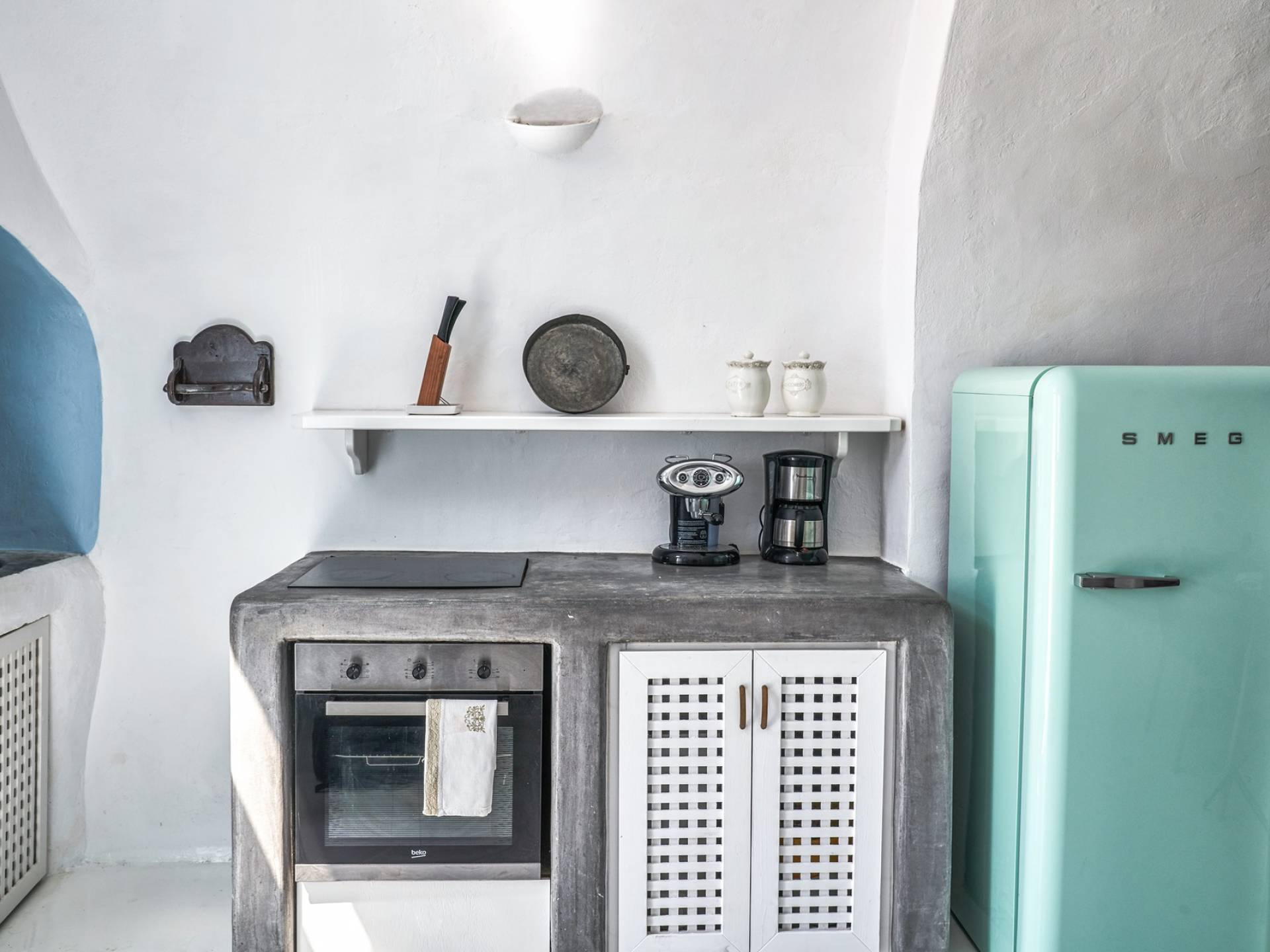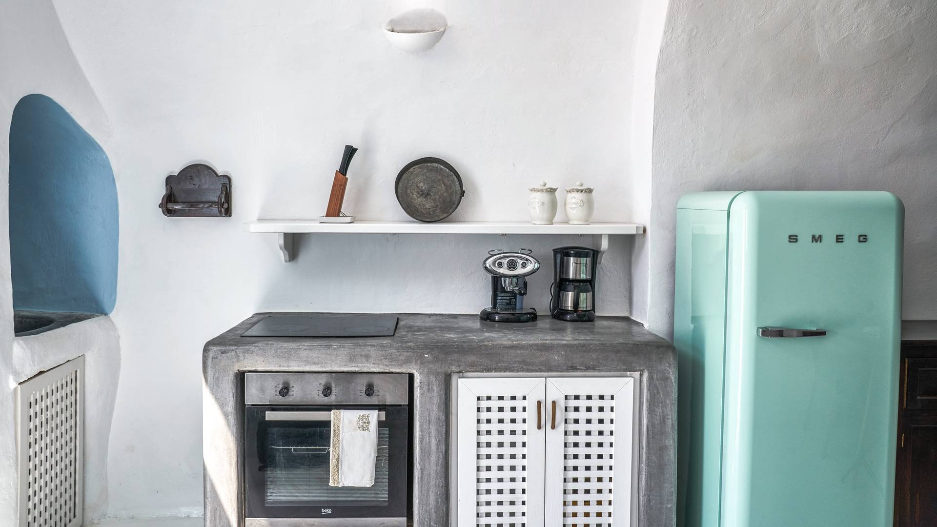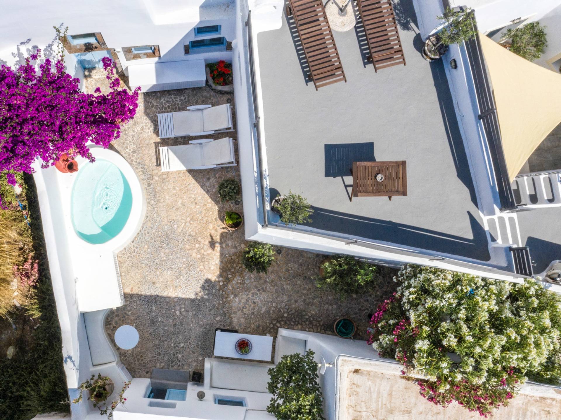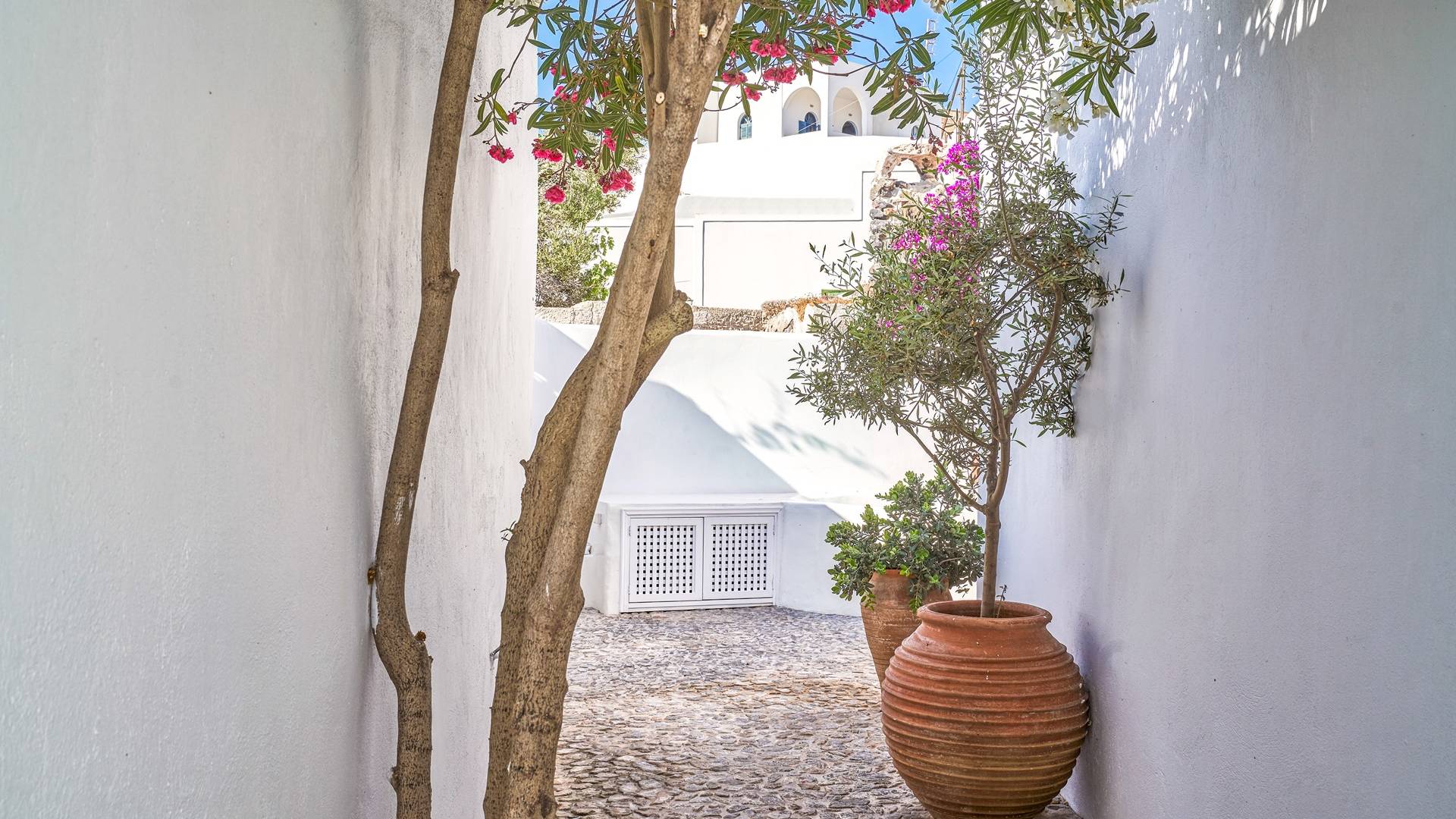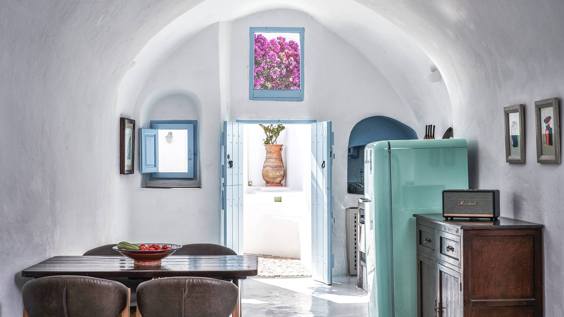 Βρίσκεται κάτω από την εκκλησία των Αγίων Αναργύρων με το υπέροχο καμπαναριό, το Villa Ivi δύο υπνοδωματίων είναι ένα γοητευτικό καταφύγιο από τη φασαρία των Φηρών και της Οίας. Προστατευμένο από τους κυκλαδίτικους ανέμους, το χωριό Μεγαλοχώρι χωρίς κίνηση προσφέρει μια ειρηνική και περιζήτητη εναλλακτική λύση. Η ρομαντική Villa Ivi παρείχε κάποτε στους χωρικούς ένα ασφαλές καταφύγιο από ληστές πειρατές που εισέβαλαν στο νησί.