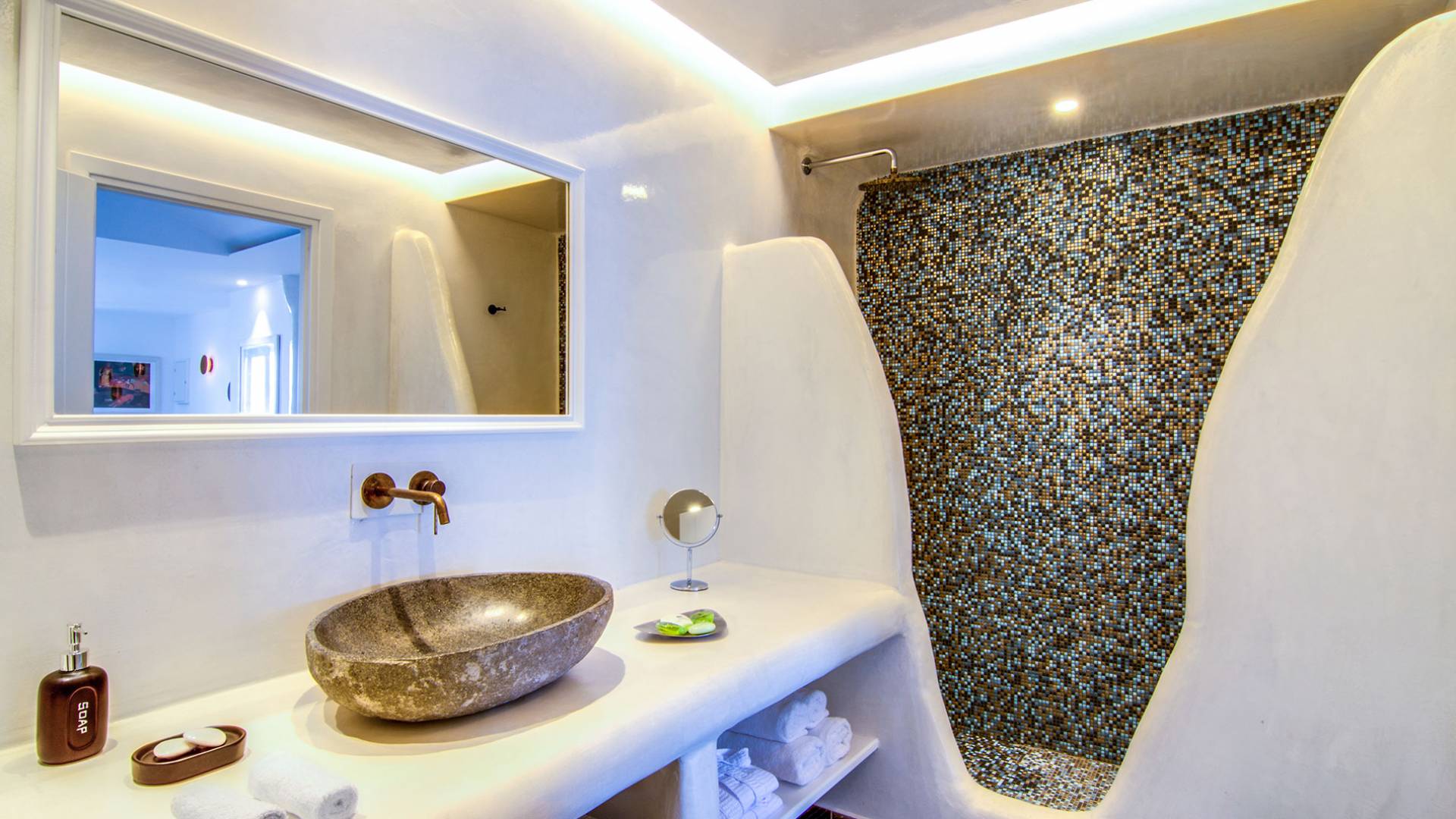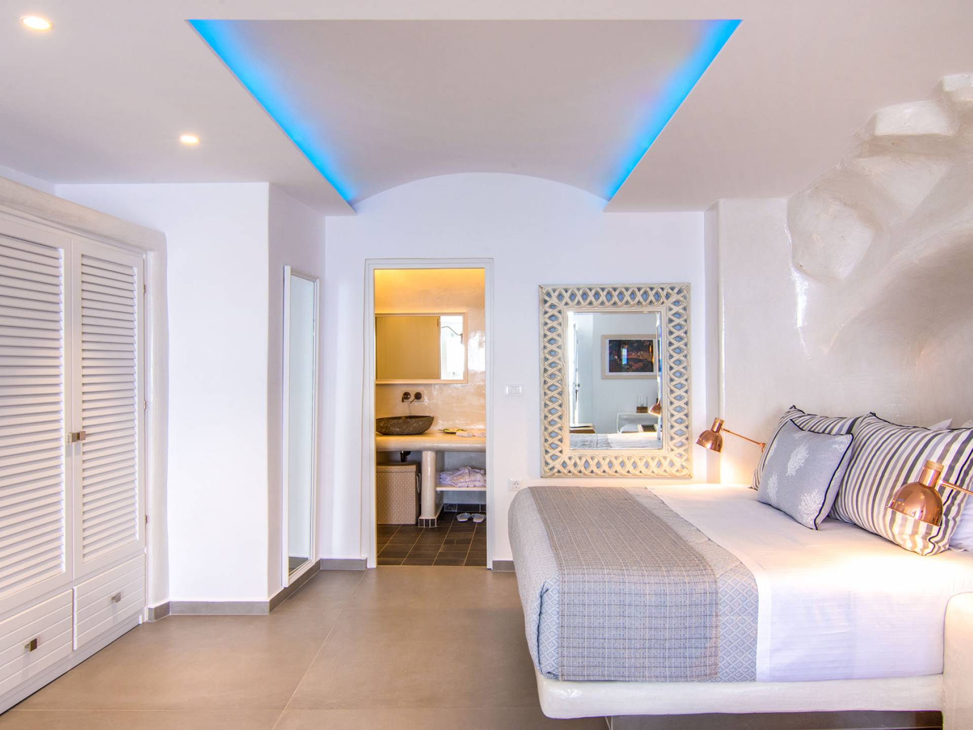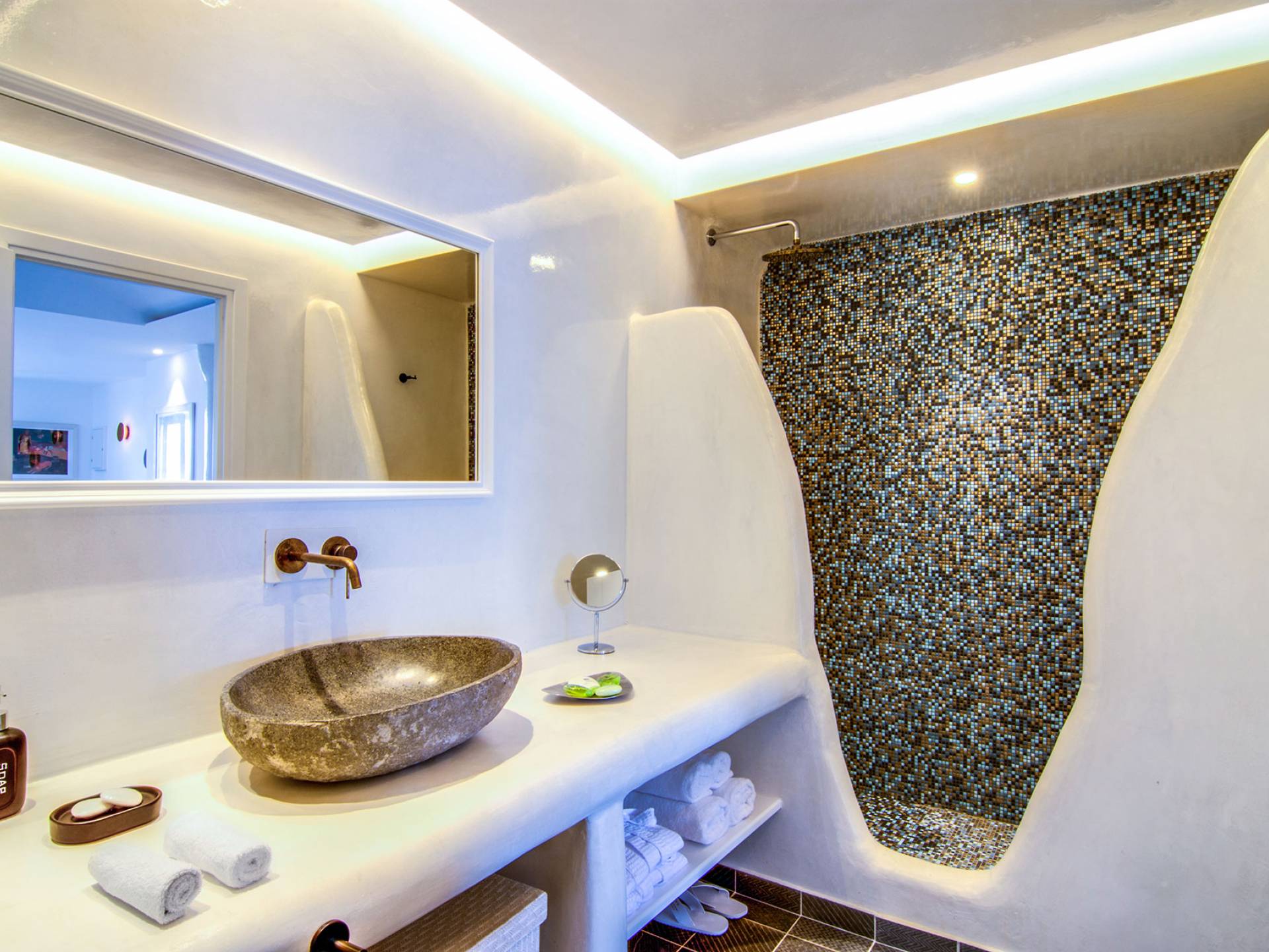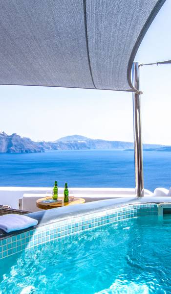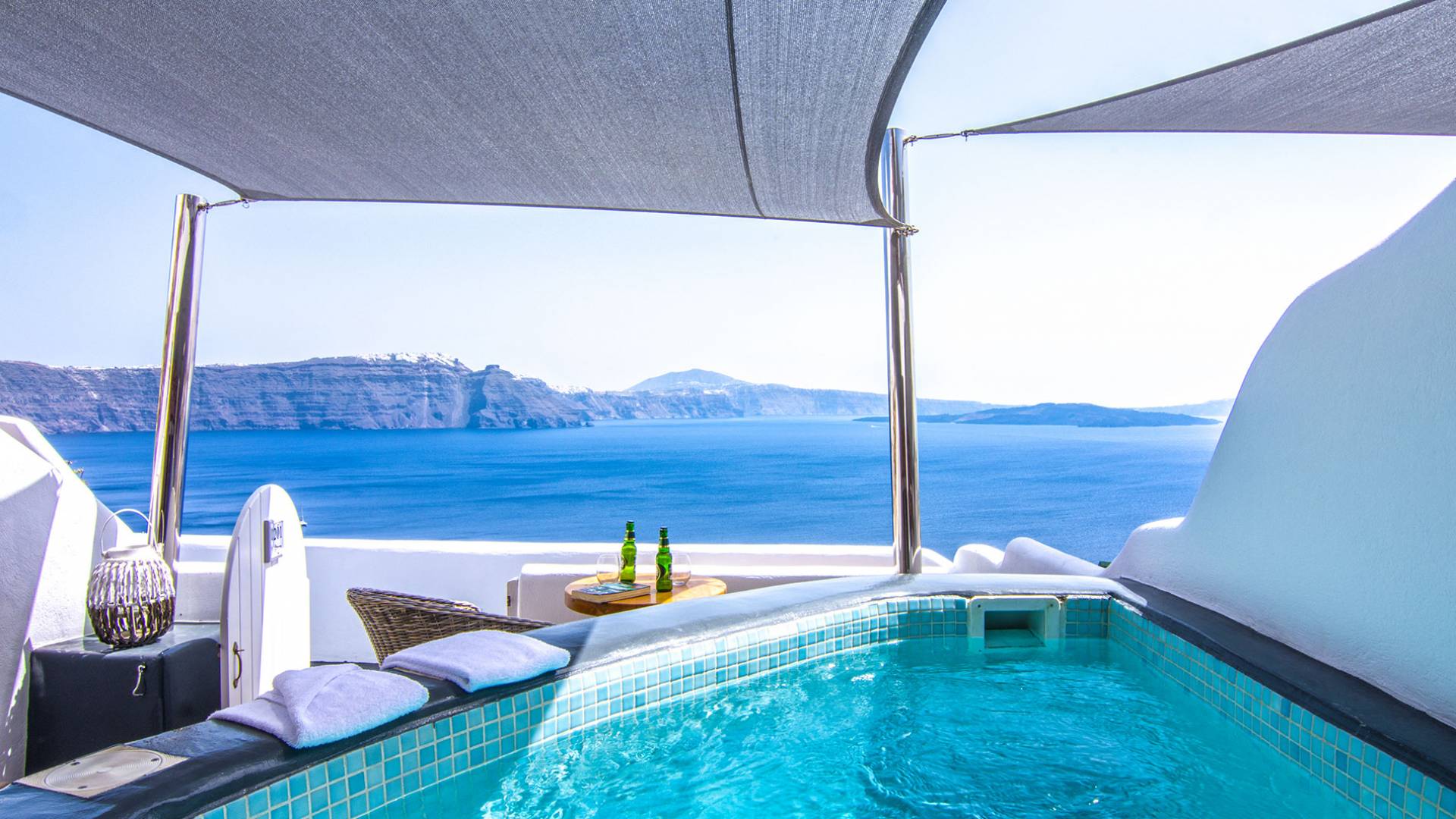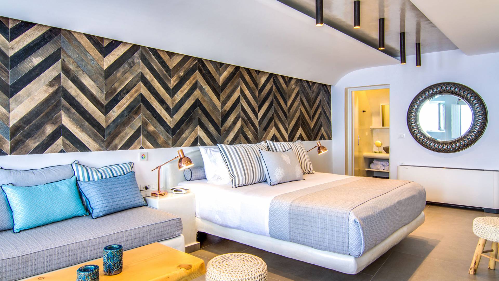 Η ηρεμία επιτυγχάνεται εύκολα εδώ. Η απλότητα του σχεδιαστή και οι σύγχρονες ανέσεις σε ένα συγκλονιστικό περιβάλλον δημιουργούν το ιδανικό περιβάλλον για να απολαύσετε πολύτιμες στιγμές χαλάρωσης. Η σουίτα περιλαμβάνει κρεβάτι king-size με επώνυμα λευκά είδη, σαλόνι με όμορφο χτιστό καναπέ. Το μπάνιο είναι χτισμένο με παραδοσιακό τρόπο και διακοσμημένο με εντυπωσιακά, μοναδικά ψηφιδωτά μοτίβα και οι επισκέπτες μπορούν να απολαύσουν ένα ντους ψιλής βροχής με πολυτελή προϊόντα περιποίησης. Για απόλυτη αναζωογόνηση και για άμεση ευεξία, οι επισκέπτες μπορούν να απολαύσουν την εκπληκτική θέα από το εξωτερικό κατάστρωμα που προσφέρει ο εντυπωσιακός βράχος Caldera-meets-sea.