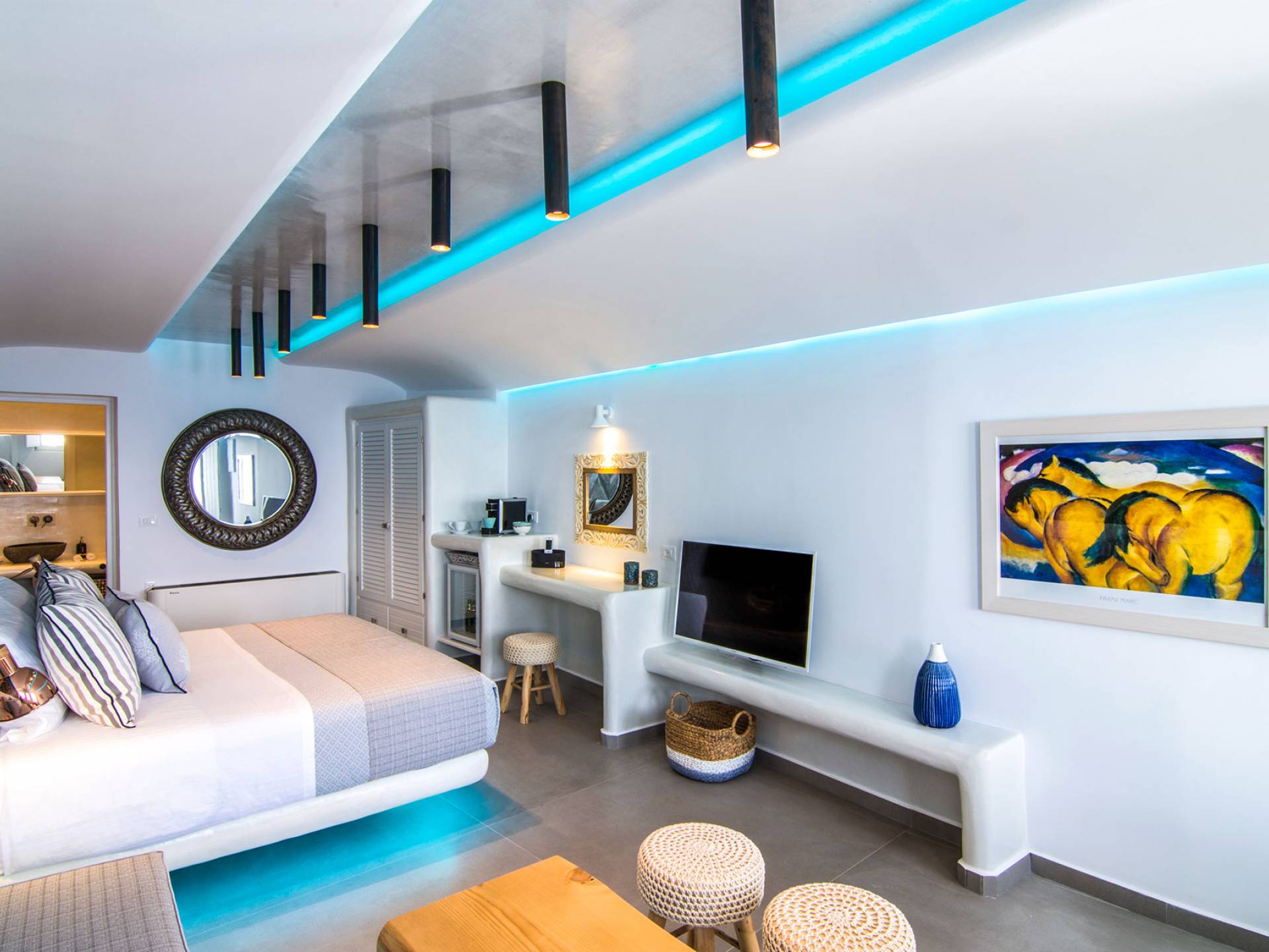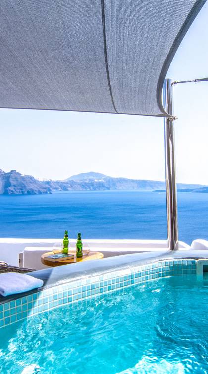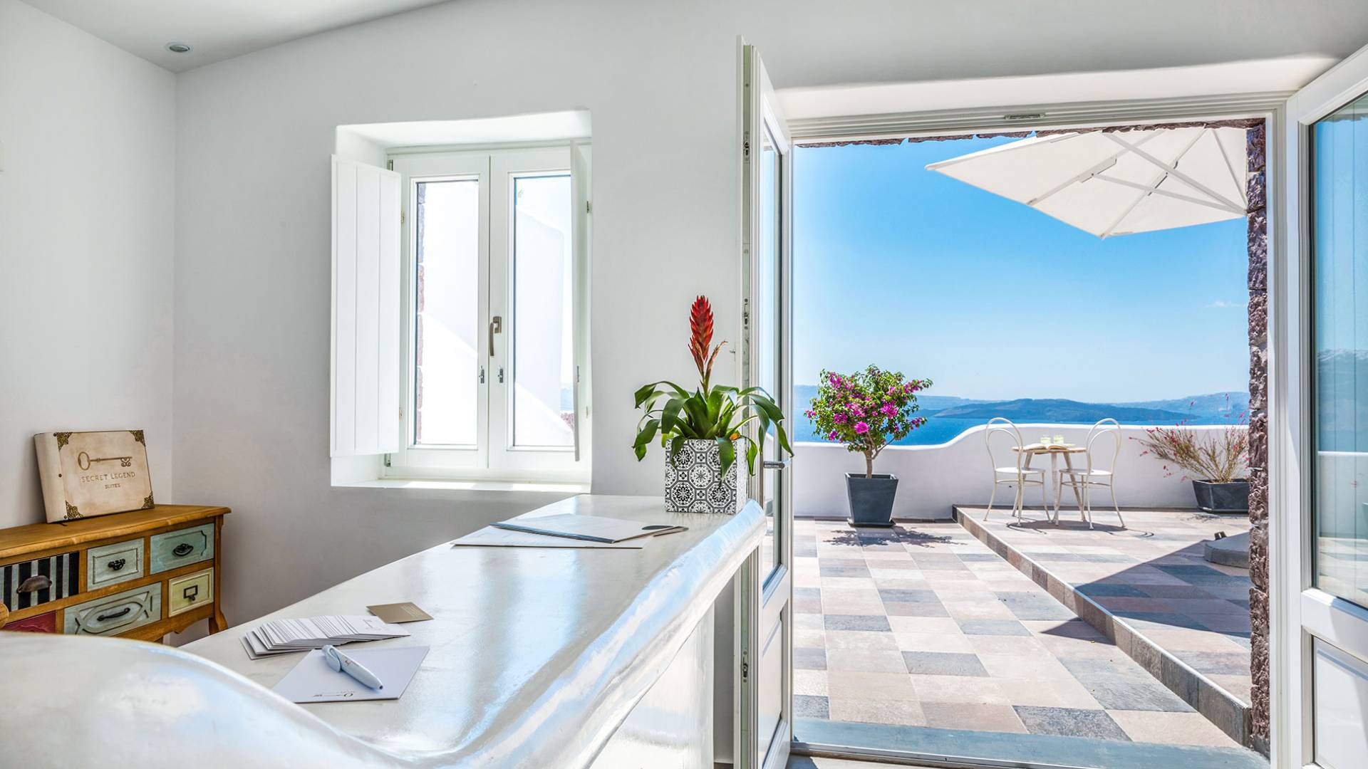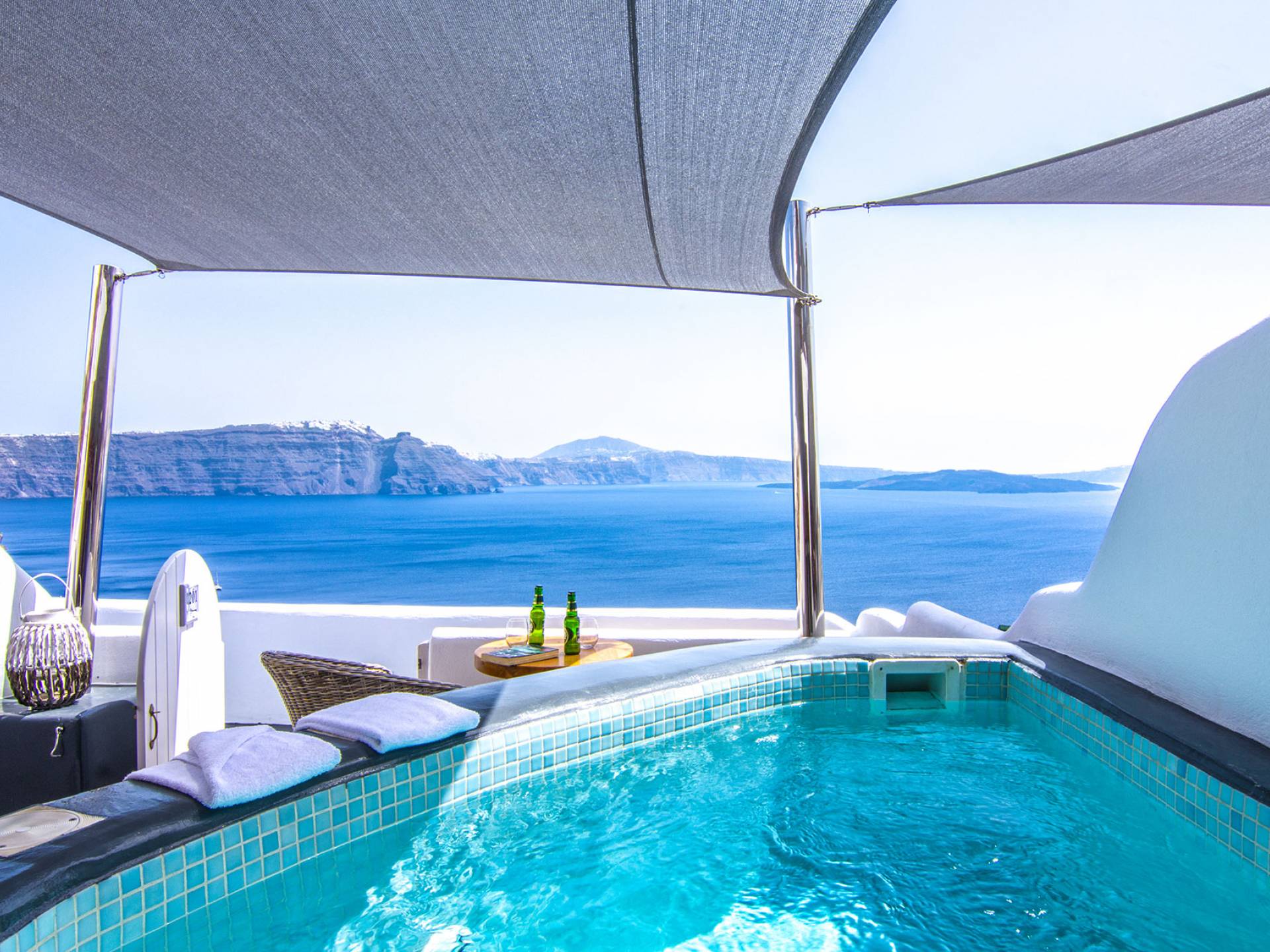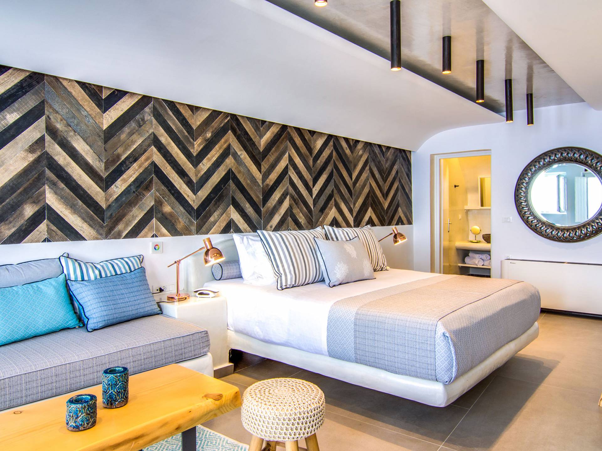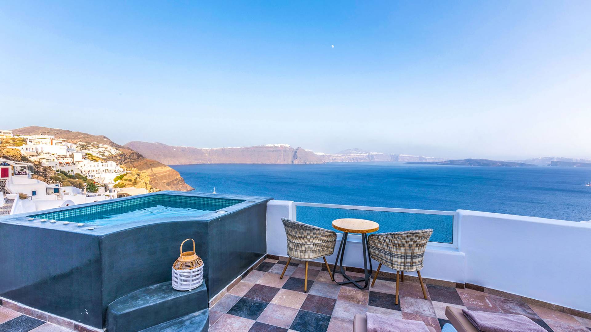 Η ηρεμία επιτυγχάνεται εύκολα εδώ. Η απλότητα του σχεδιαστή και οι σύγχρονες ανέσεις σε ένα συγκλονιστικό περιβάλλον δημιουργούν το ιδανικό περιβάλλον για να απολαύσετε πολύτιμες στιγμές χαλάρωσης. Η σουίτα περιλαμβάνει κρεβάτι king-size με επώνυμα λευκά είδη, σαλόνι με όμορφο χτιστό καναπέ. Το μπάνιο είναι χτισμένο με παραδοσιακό τρόπο και διακοσμημένο με εντυπωσιακά, μοναδικά ψηφιδωτά μοτίβα και οι επισκέπτες μπορούν να απολαύσουν ένα ντους ψιλής βροχής με πολυτελή προϊόντα περιποίησης. Για απόλυτη αναζωογόνηση και για άμεση ευεξία, οι επισκέπτες μπορούν να απολαύσουν την εκπληκτική θέα από το εξωτερικό κατάστρωμα που προσφέρει ο εντυπωσιακός βράχος Caldera-meets-sea.