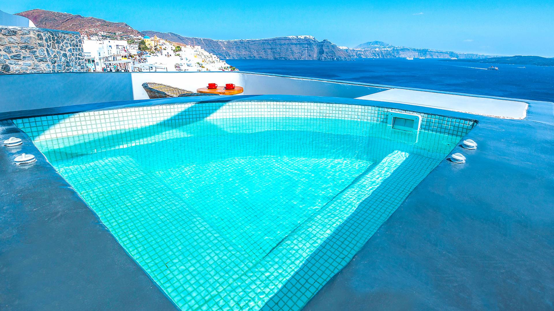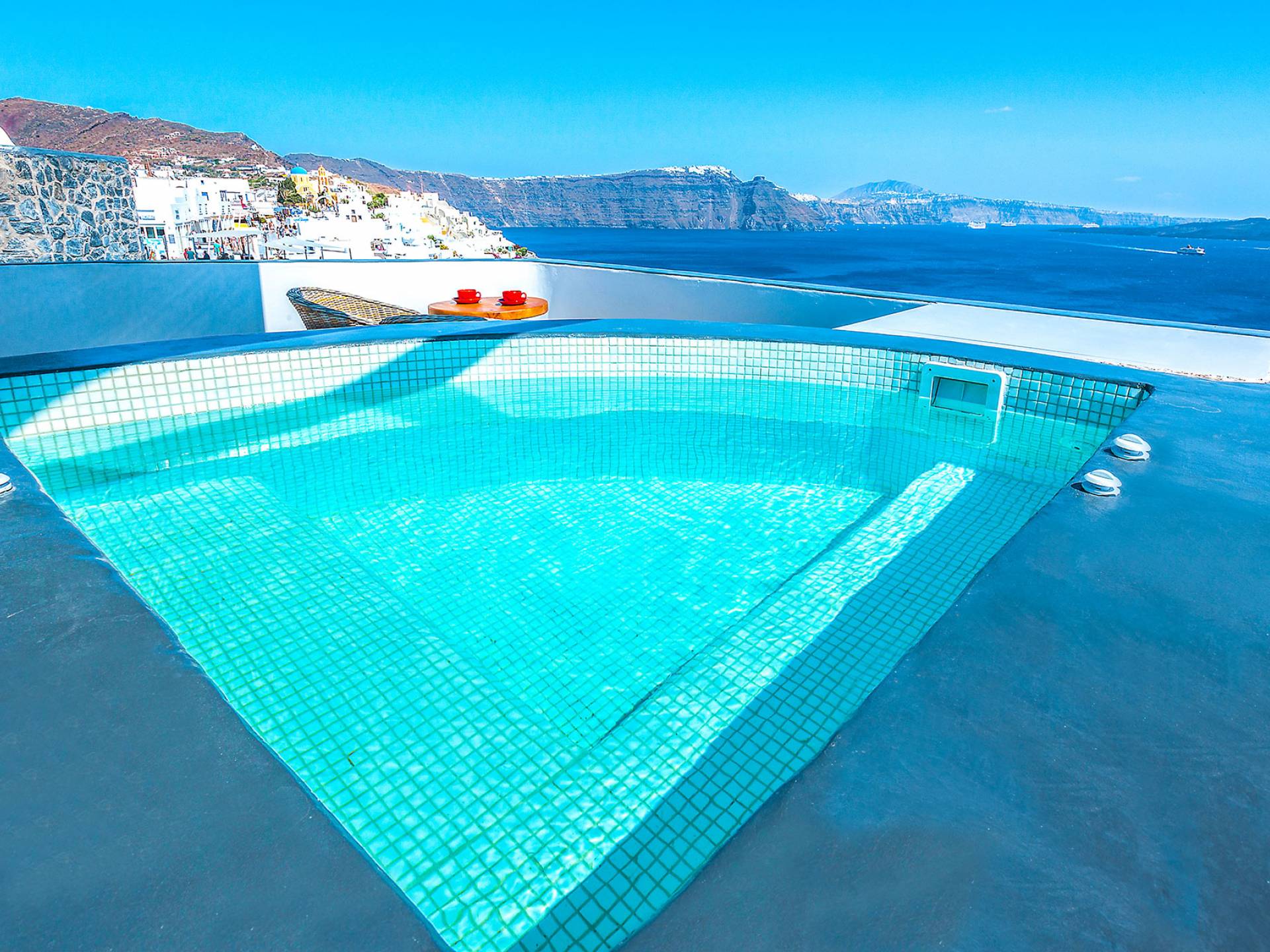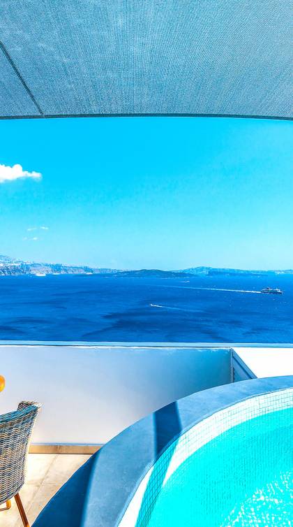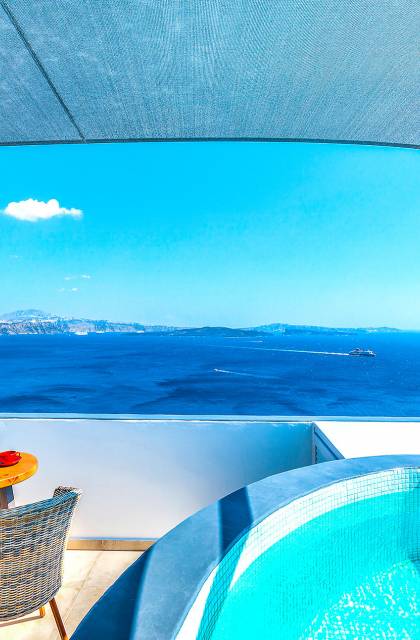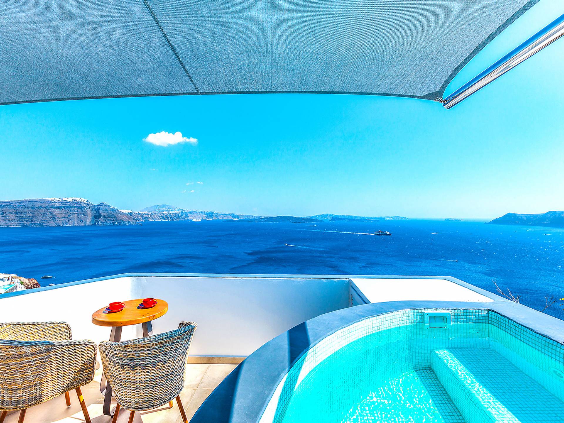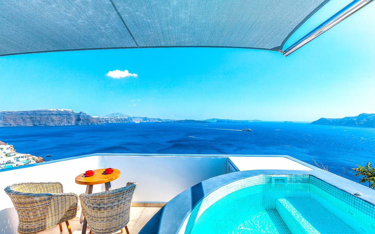 Διαθέτοντας ένα υπερυψωμένο κρεβάτι king size από επώνυμα λευκά είδη και την υπογραφή μας, πάντα άνετο στρώμα "Secret", η σουίτα διαθέτει επίσης lounge για μεγαλύτερη άνεση και όμορφο, παραδοσιακό χτιστό μπάνιο με περίπλοκα μωσαϊκά πλακάκια και πολυτελή προϊόντα περιποίησης . Το να αδράξετε τη μέρα σας έρχεται εύκολα εδώ, καθώς οι επισκέπτες απολαμβάνουν ένα δωρεάν πρωινό στην ιδιωτικότητα αυτής της σουίτας ή στο μπαλκόνι τους, απολαμβάνοντας τις φρέσκες γεύσεις ενός πλούσιου γεύματος και απολαμβάνοντας την τραγανότητα ενός Σαντορινιακού πρωινού.