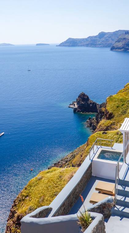 Η Οία είναι το πιο διάσημο χωριό της Σαντορίνης, 11 χιλιόμετρα από τα Φηρά, στο βόρειο τμήμα του νησιού. Παγκόσμια φημισμένη για το μαγευτικό ηλιοβασίλεμα της, αξίζει τον τίτλο του πιο όμορφου χωριού της Σαντορίνης. Βρίσκεται στην κορυφή ενός γκρεμού και ανοίγει σε εκπληκτική θέα στο ηφαίστειο της Παλαιάς και της Νέας Καμένης και του νησιού της Θηρασίας. Ο παραδοσιακός χαρακτήρας του με τα ασβεστωμένα σπίτια, τα λιθόστρωτα δρομάκια και τις μπλε θολωτές εκκλησίες δημιουργούν ένα καταπληκτικό πλαίσιο. Στην Οία, θα βρείτε μια ποικιλία ανέσεων, από εστιατόρια έως καφετέριες και καταστήματα, με την πιο πολυσύχναστη περιοχή να είναι ο κεντρικός πεζόδρομος. Τα αξιοθέατα στην Οία περιλαμβάνουν το Ναυτικό Μουσείο, ερείπια ενός βενετσιάνικου φρουρίου και γκαλερί τέχνης. Από το μικρό λιμάνι της Οίας Αμμούδι, τα μικρά σκάφη σας μεταφέρουν στο νησί της Θηρασιάς.