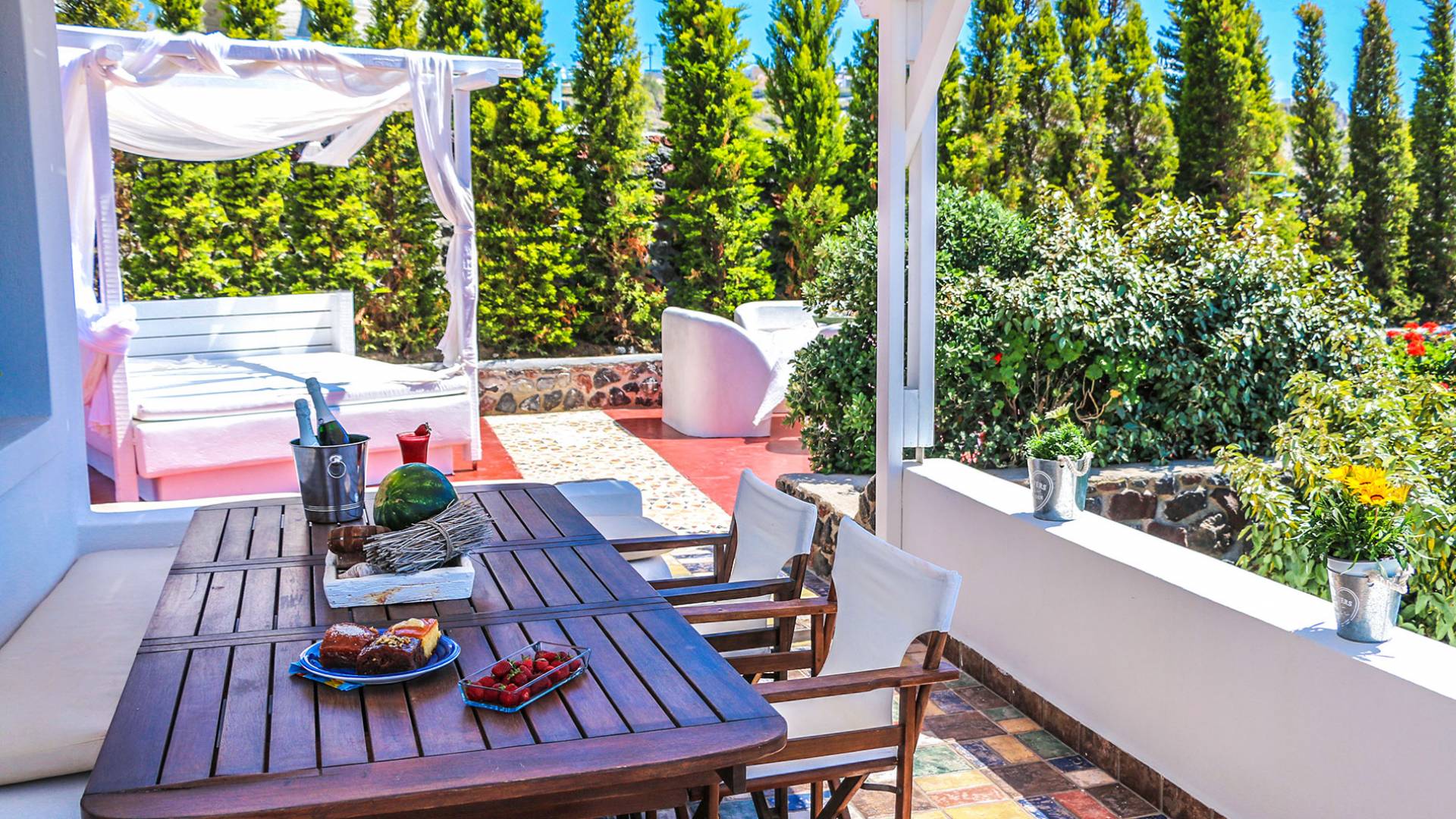 Είναι μόλις 400μ. από το χωριό της Οίας, αλλά αρκετά μακριά από τον «πολιτισμό» για να είστε ήρεμοι και ταυτόχρονα ήσυχοι. Ο κόλπος του Αμμούδι βρίσκεται σε κοντινή απόσταση με τα πόδια, καθώς και η παραλία Κάθαρος. Από τον κόλπο του Αμμούδι μπορείτε να κολυμπήσετε στο νησί του Αγίου Νικολάου και να νοικιάσετε φουσκωτό σκάφος ή να οργανώσετε μια ιστιοπλοϊκή περιήγηση, να κάνετε ένα ταξίδι στο ηφαίστειο και τη Θηρασιά ή ακριβώς γύρω από την Καλντέρα. Αυτή η κομψή κατοικία συνιστάται ιδιαίτερα και διαθέτει άρτια εξοπλισμένα καταλύματα. Είναι φτιαγμένο με υψηλές προδιαγραφές και είναι παραδοσιακά σχεδιασμένο, με μεγάλη προσοχή στη λεπτομέρεια. Η χρήση της παραδοσιακής πέτρας και μερικά από τα καλύτερα υλικά έχουν συμπεριληφθεί σε όλο το σχεδιασμό και έχουν χρησιμοποιηθεί σε αρμονία με το περιβάλλον! Ο εκτεταμένος κήπος της ιδιοκτησίας με διάφορα είδη λουλουδιών και θάμνων έχει σχεδιαστεί ειδικά για να διατηρεί τις υψηλές προδιαγραφές.