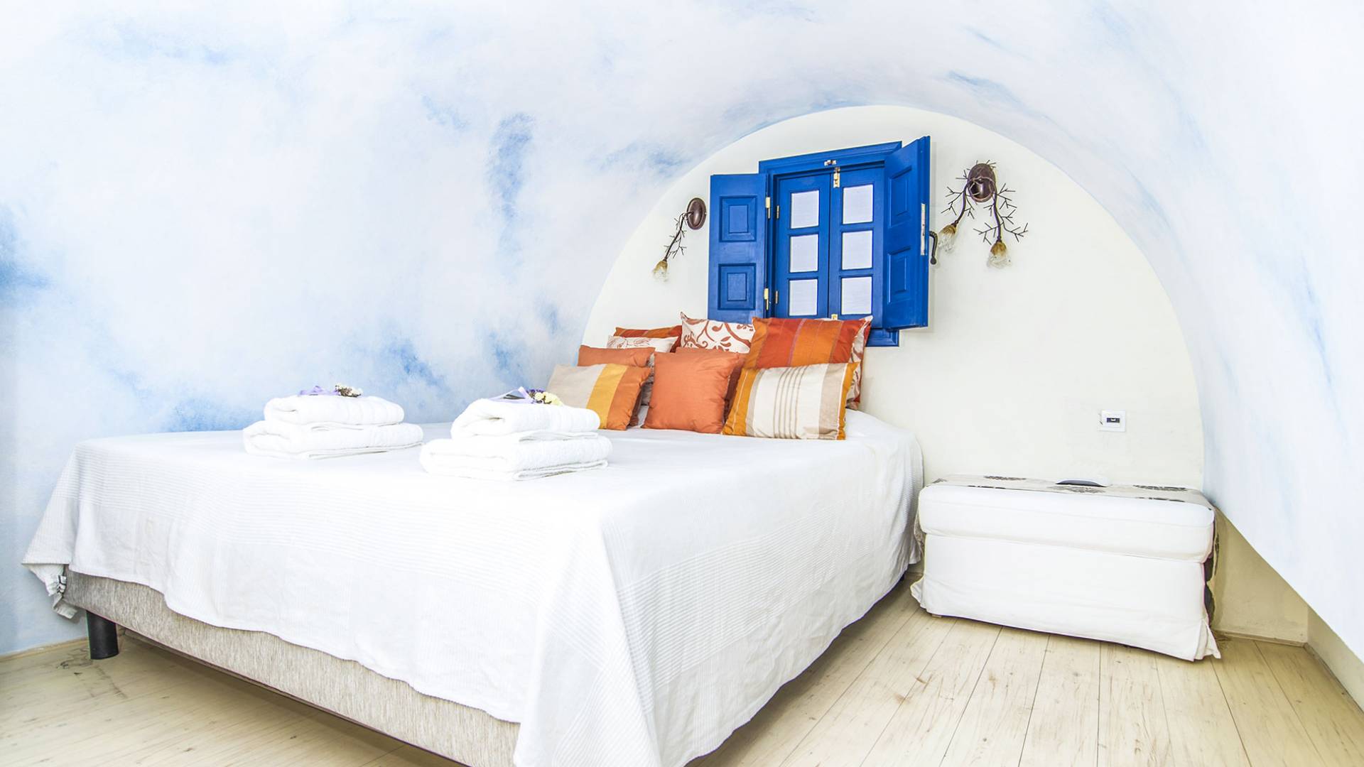 Στο εσωτερικό υπάρχουν 3 υπνοδωμάτια (στο κάτω επίπεδο ένα με διπλό κρεβάτι king size, ένα με 2 μονά κρεβάτια και στο επάνω επίπεδο σοφίτας ένα με king size κρεβάτι, το οποίο είναι ξεχωριστό από τα άλλα, με δικό του μπάνιο και σαλόνι ). Επιπλέον, στο χαμηλότερο επίπεδο υπάρχει ένας καναπές, ο οποίος μετατρέπεται εύκολα σε διπλό κρεβάτι queen. Όλα τα υπνοδωμάτια διαθέτουν ντουλάπες και κλιματισμό. Σας παρέχουμε φιλικά προς το περιβάλλον στρώματα & επάνω κλινοσκεπάσματα, καθώς και πουπουλένια μαξιλάρια. Επίσης, σε περίπτωση που χρειαστείτε, υπάρχει βρεφική κούνια και ένα επιπλέον μονό πτυσσόμενο κρεβάτι για κατασκήνωση.