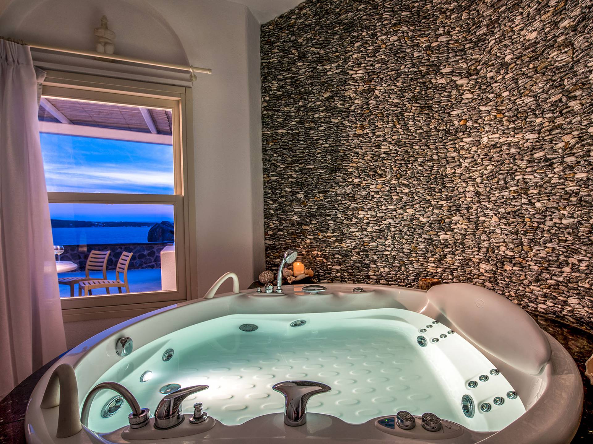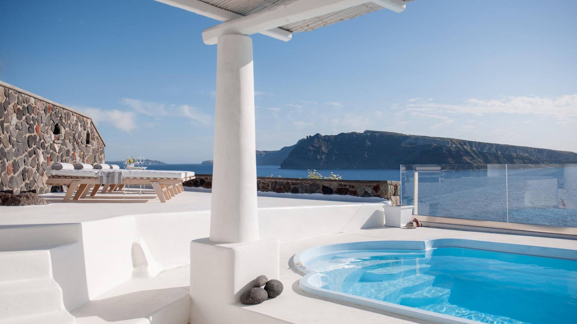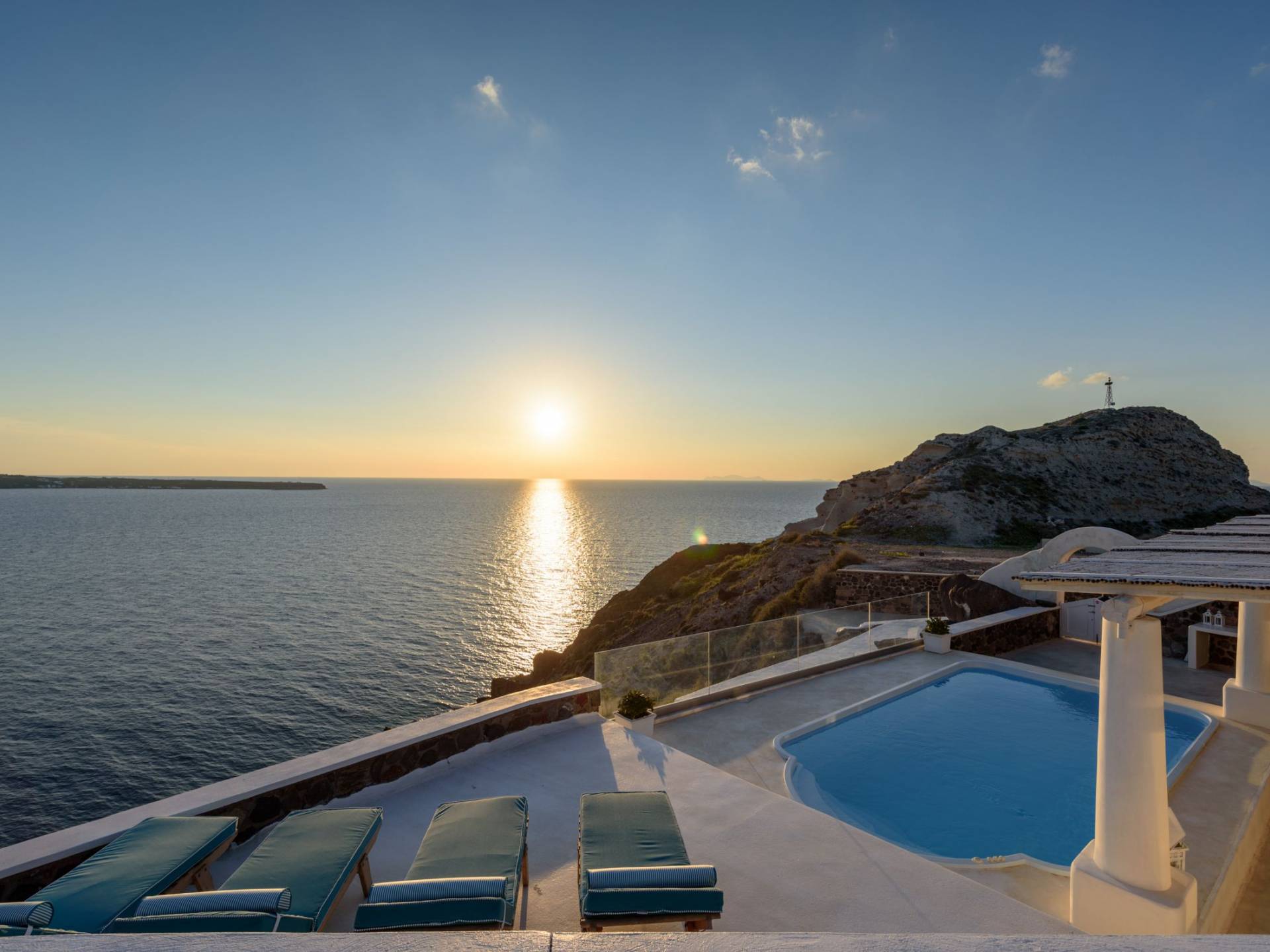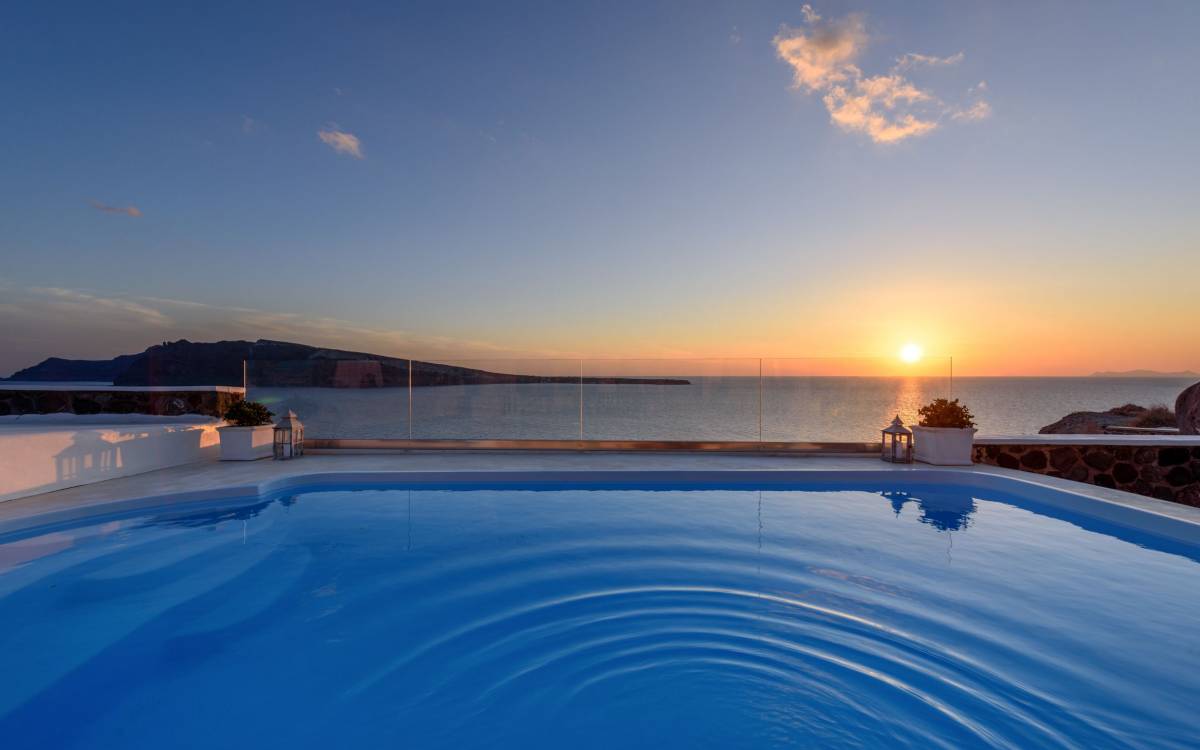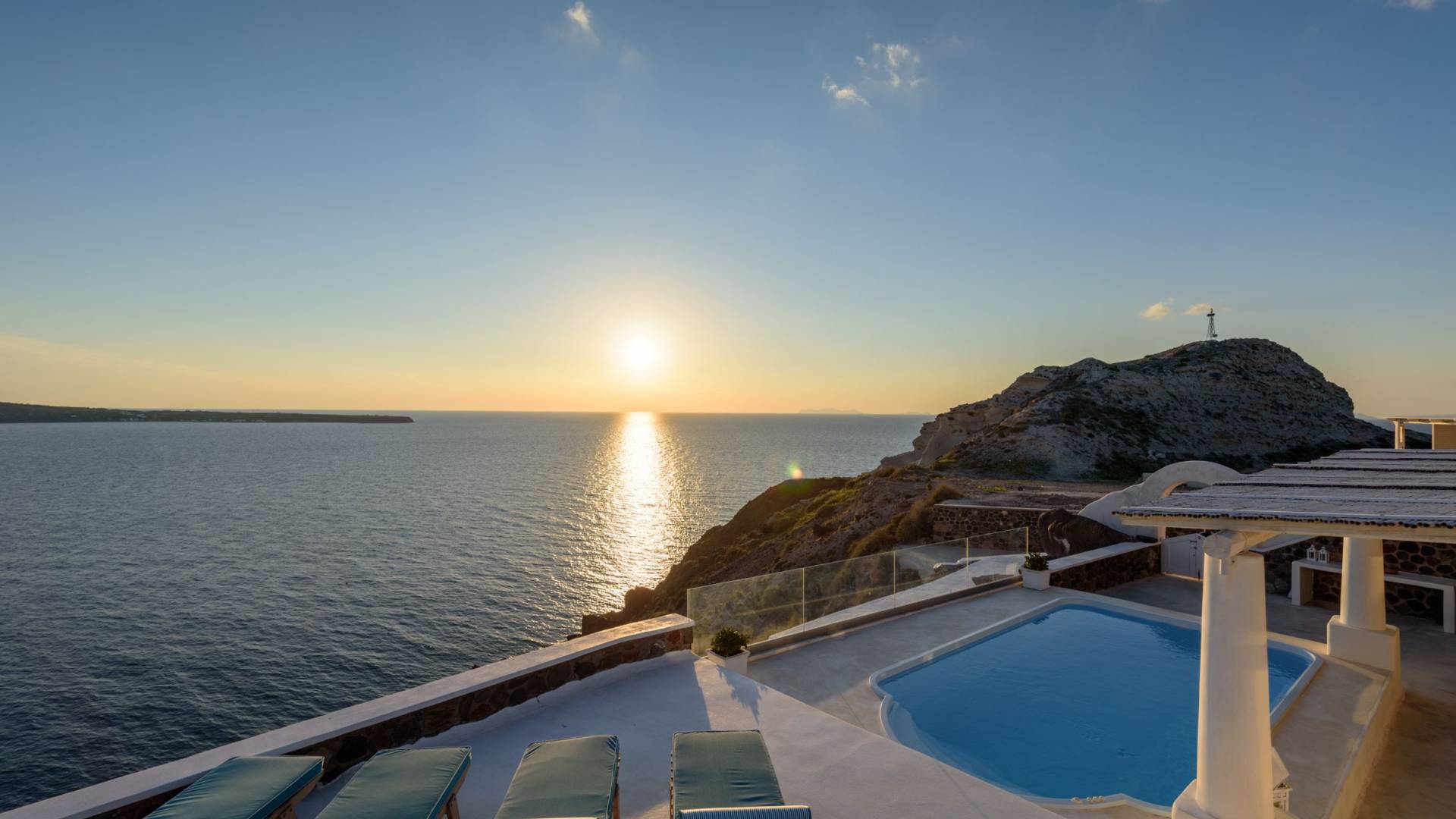 Επιπλέον, μπορείτε να απολαύσετε την όμορφη θέα στη θάλασσα από κάτω, από κάθε σημείο του εσωτερικού. Η γύρω αυλή, ακριβώς πάνω από τον γκρεμό της καλντέρας, με την ιδιωτική πισίνα, προσφέρει πολυτέλεια και άνεση.