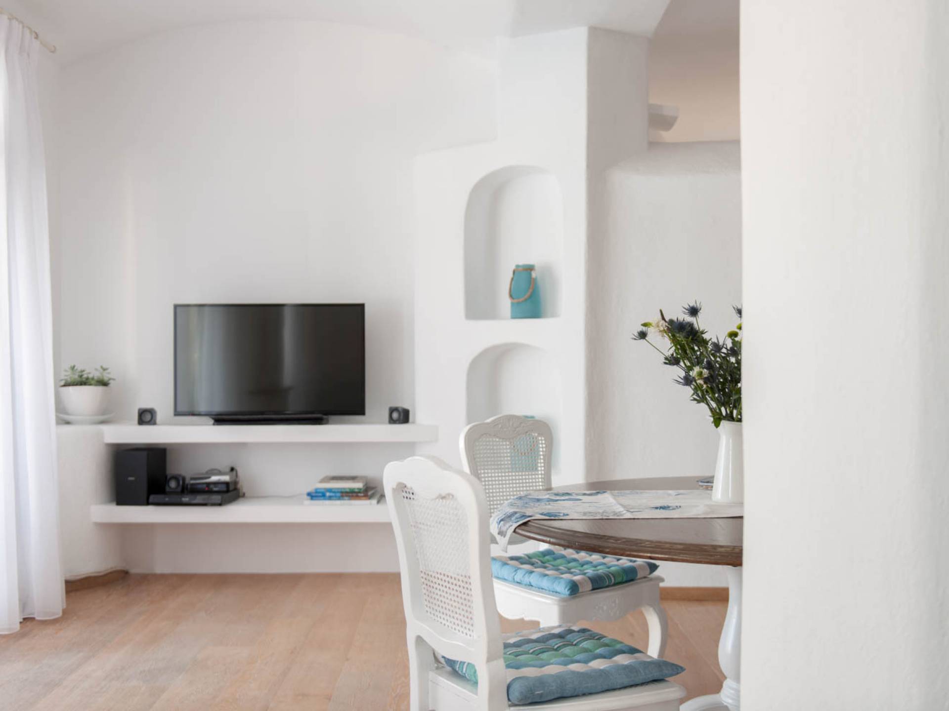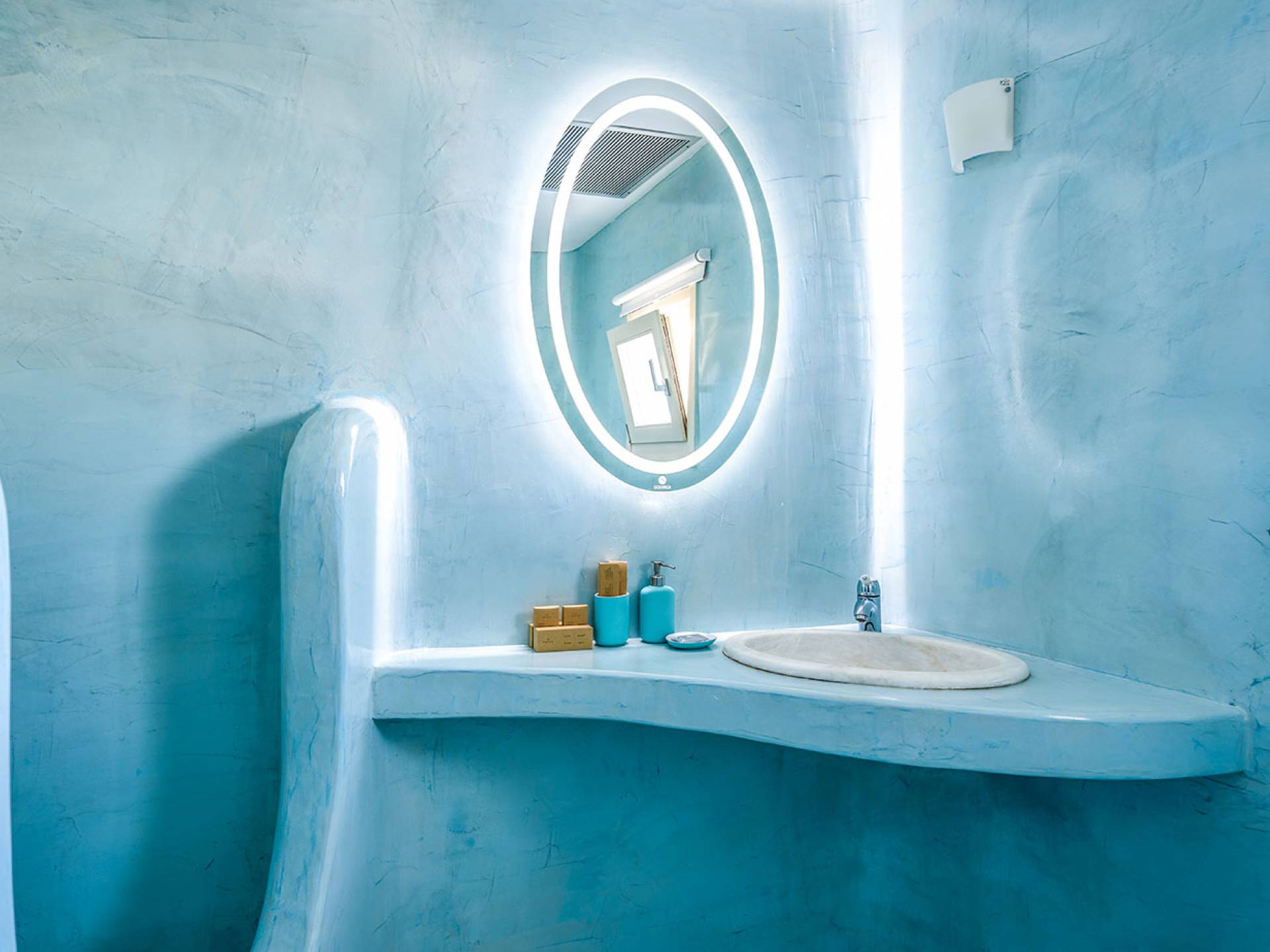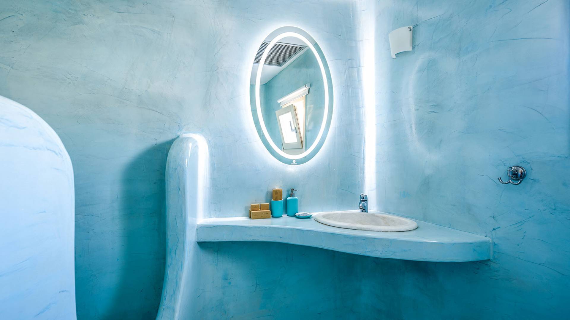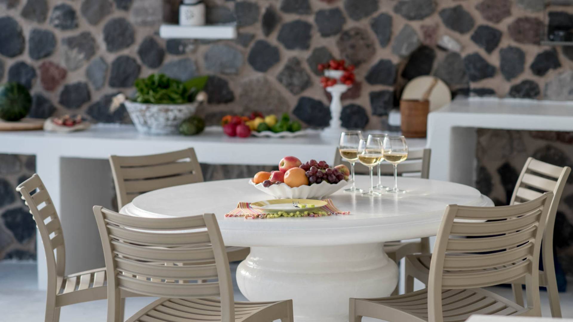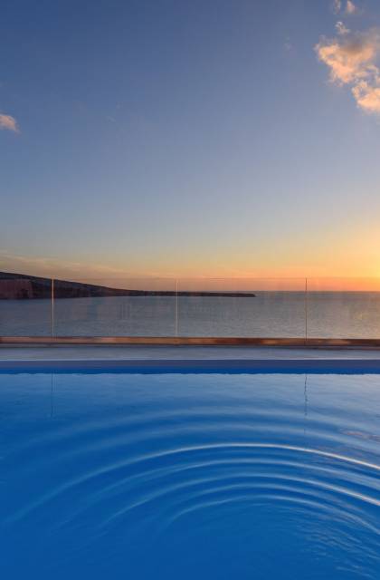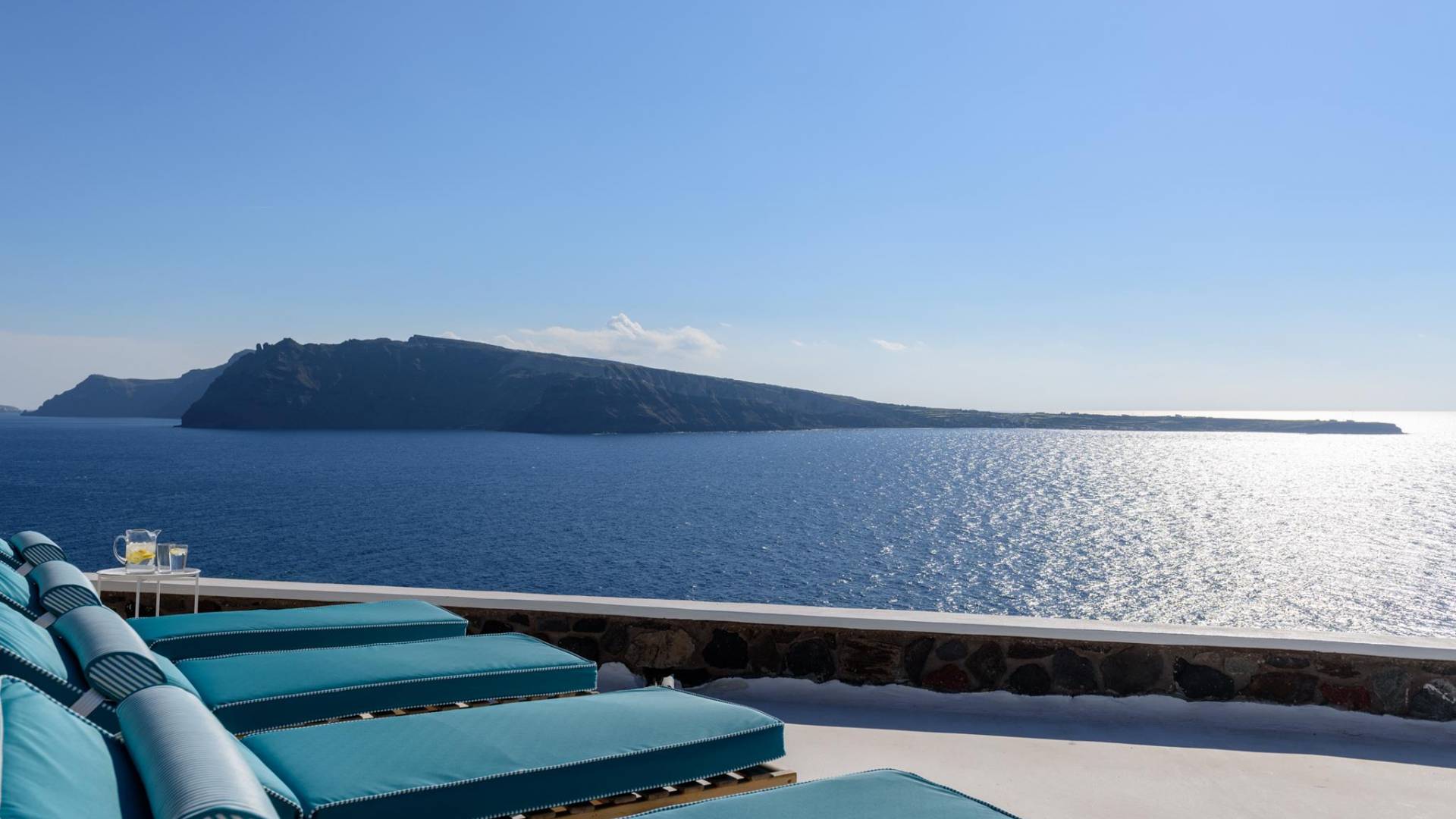 Επιπλέον, μπορείτε να απολαύσετε την όμορφη θέα στη θάλασσα από κάτω, από κάθε σημείο του εσωτερικού. Η γύρω αυλή, ακριβώς πάνω από τον γκρεμό της καλντέρας, με την ιδιωτική πισίνα, προσφέρει πολυτέλεια και άνεση.