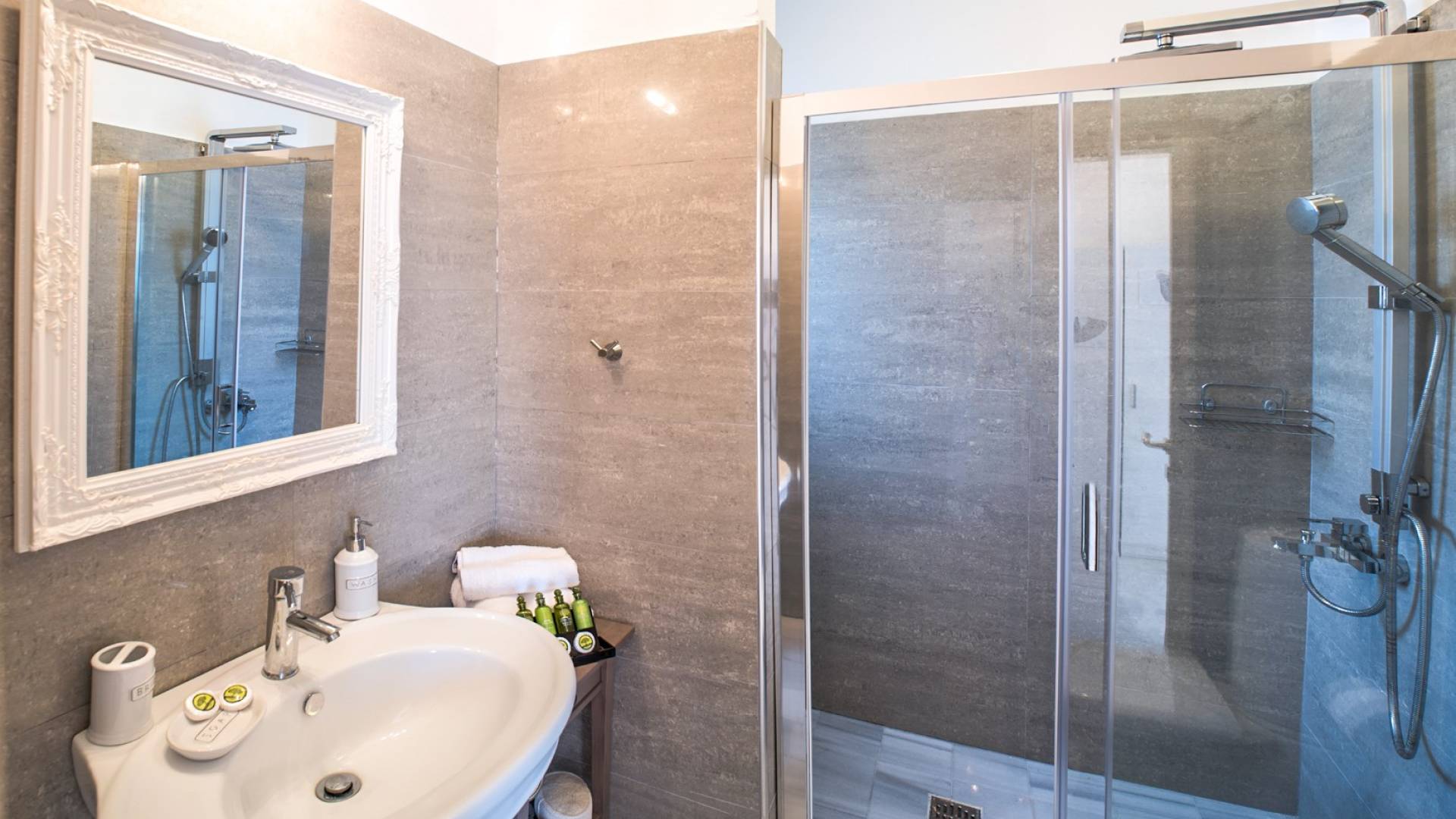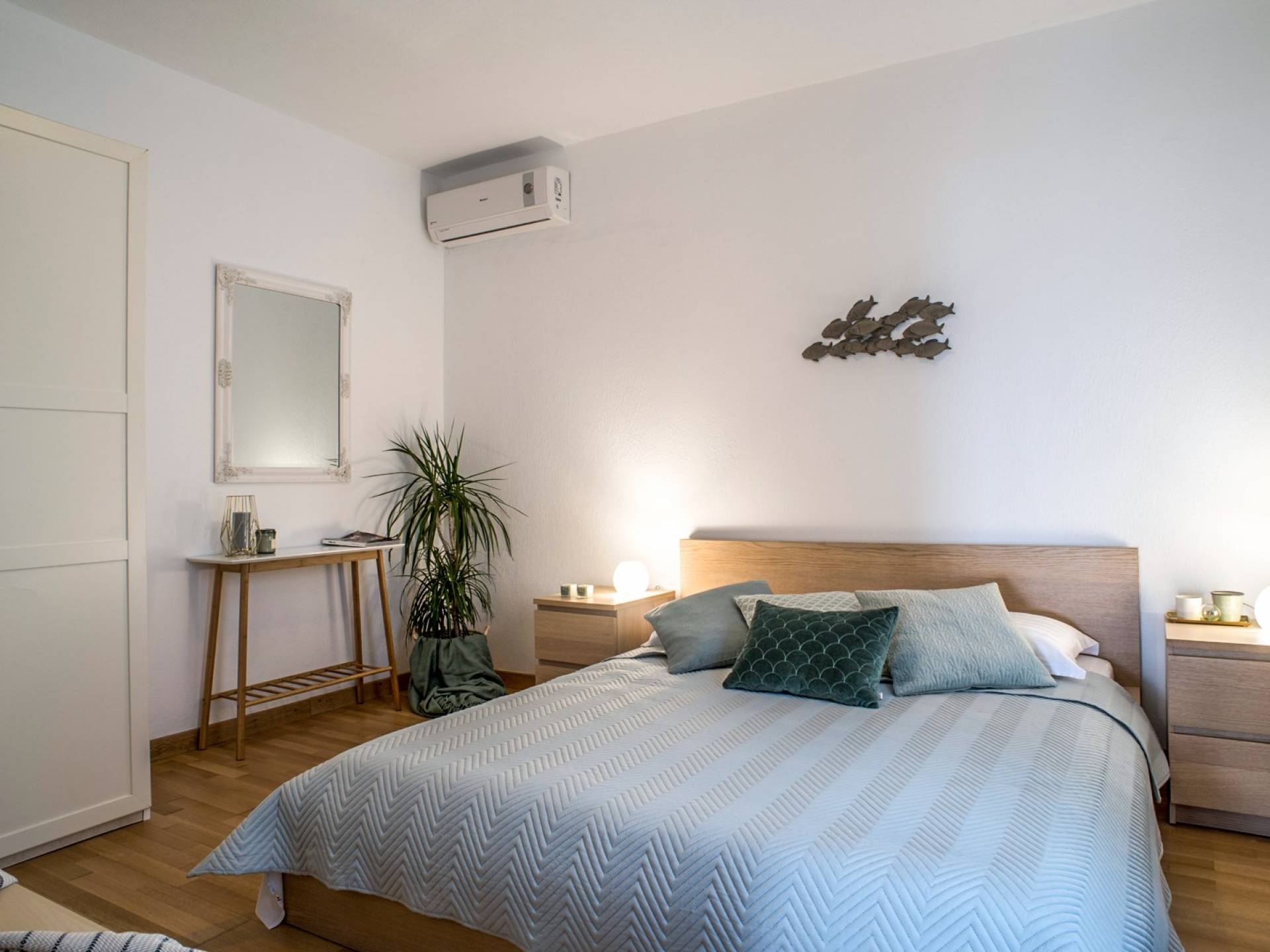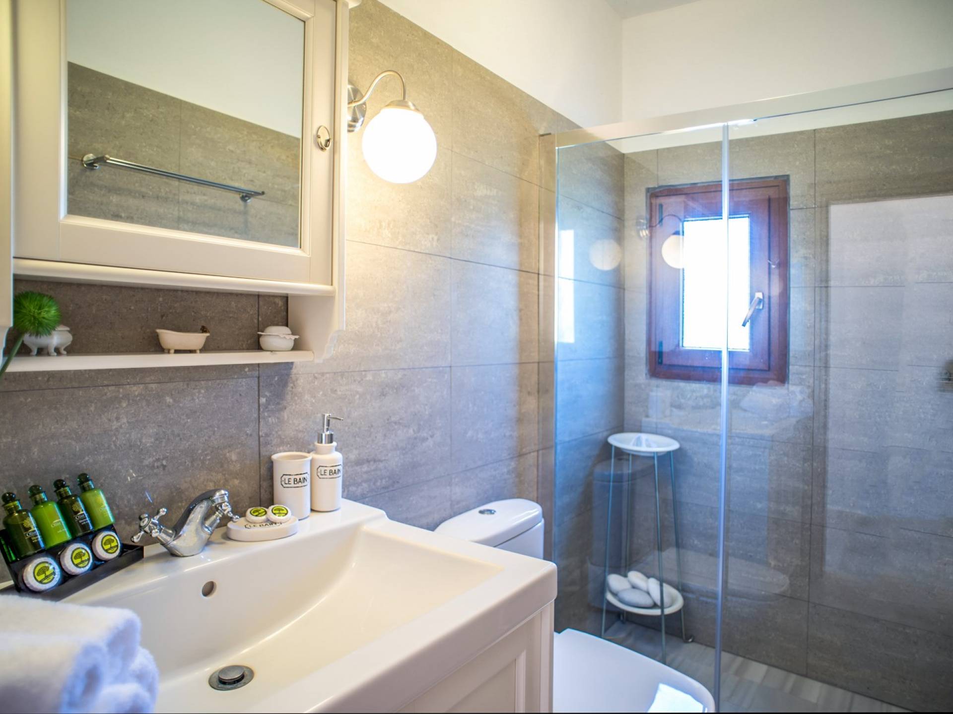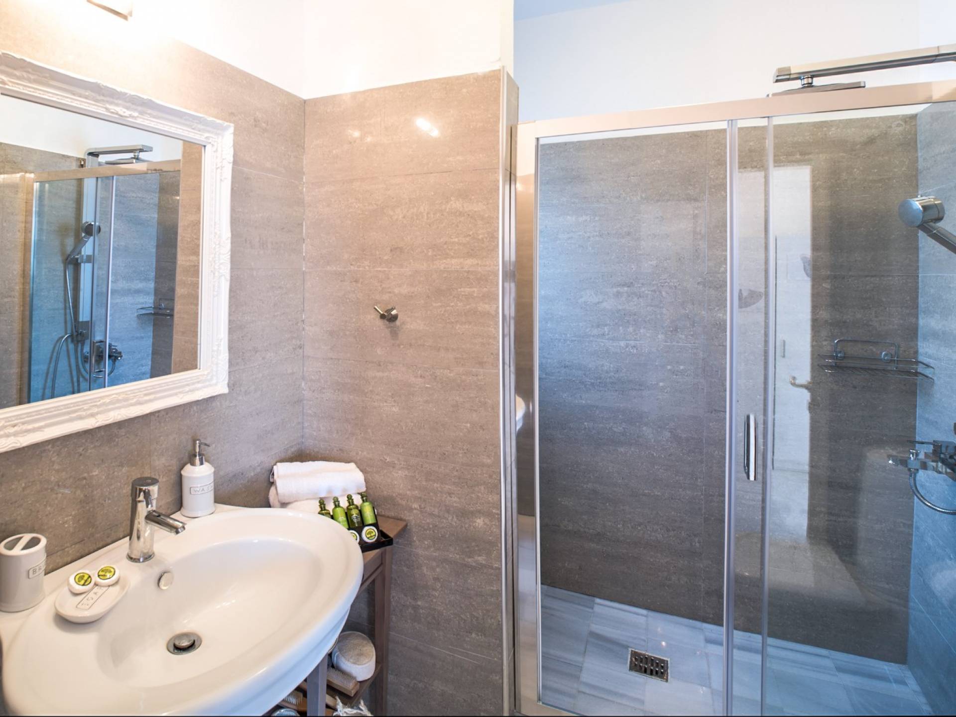 Διαμέρισμα 1: σε στιλ διαμερίσματος, με σαλόνι (καναπές-κρεβάτι για 2 άτομα), μοντέρνα μικρή κουζίνα (με ψυγείο, καφετιέρα Nespresso και φούρνο μικροκυμάτων), διπλό κρεβάτι, μπάνιο, θυρίδα ασφαλείας, προϊόντα μπάνιου, κλιματισμός, στερεοφωνικό HI-FI, Flat Smart TV. Εμβαδό δωματίου 65 τ.μ.