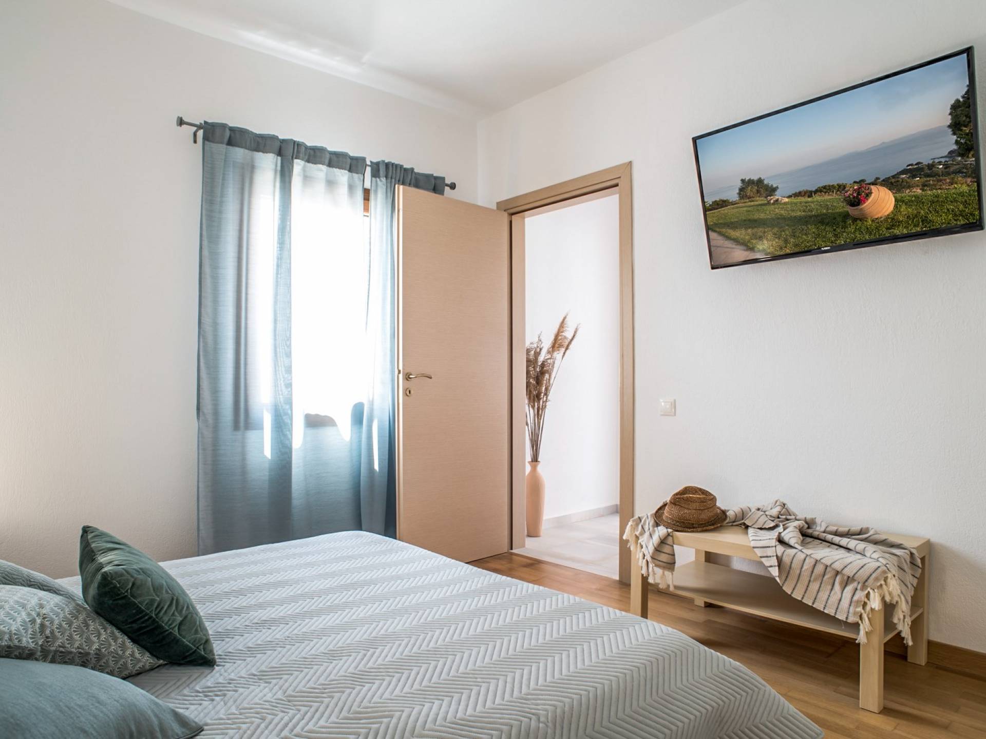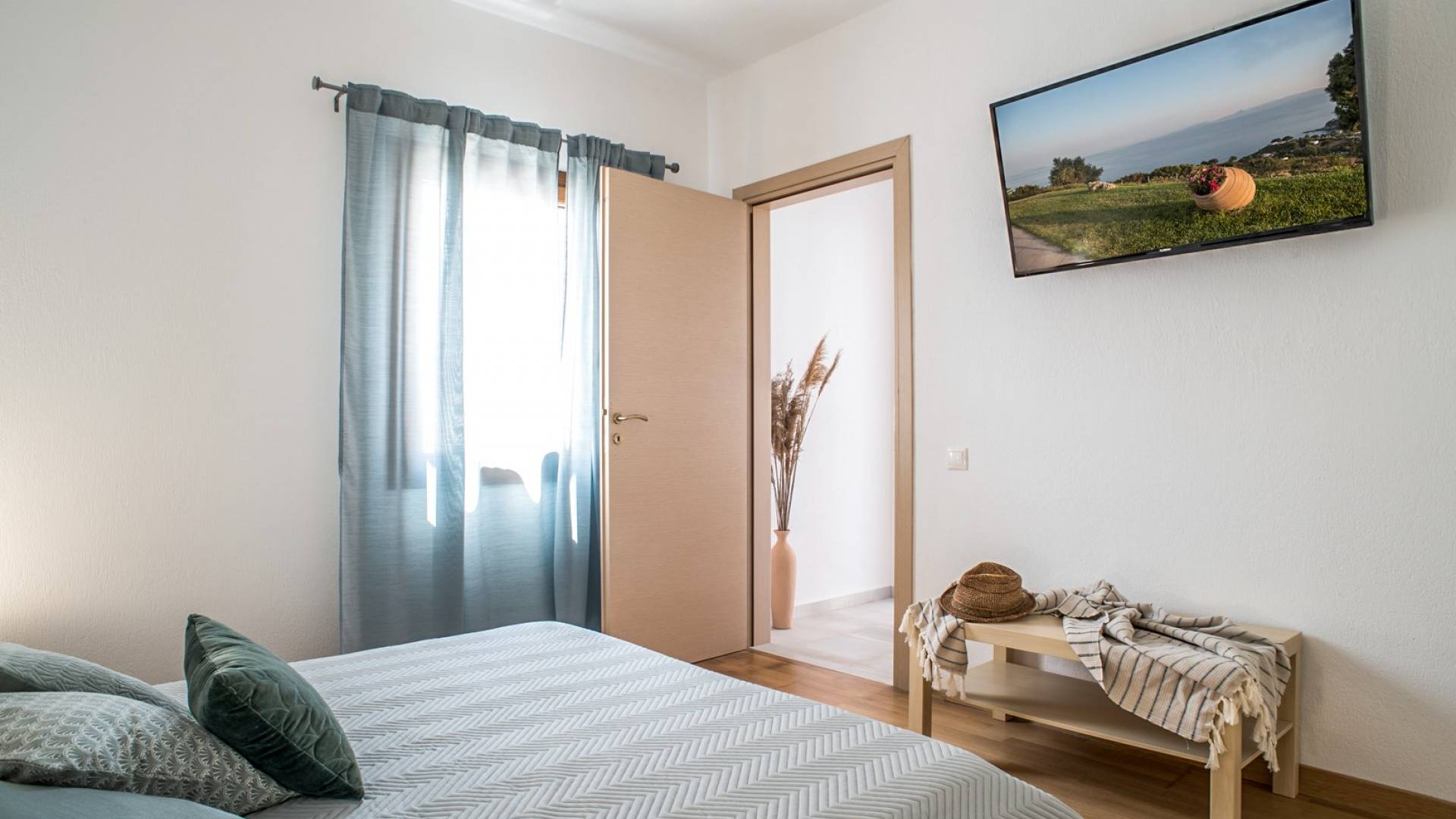 Διαμέρισμα 2: στιλ στούντιο με μίνι ψυγείο, διπλό κρεβάτι, μπάνιο, κλιματισμό, θυρίδα ασφαλείας, προϊόντα μπάνιου, στερεοφωνικό HI-FI, Flat Smart TV. Εμβαδό δωματίου 20 τ.μ.