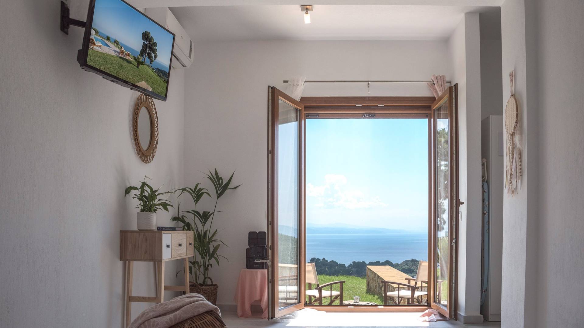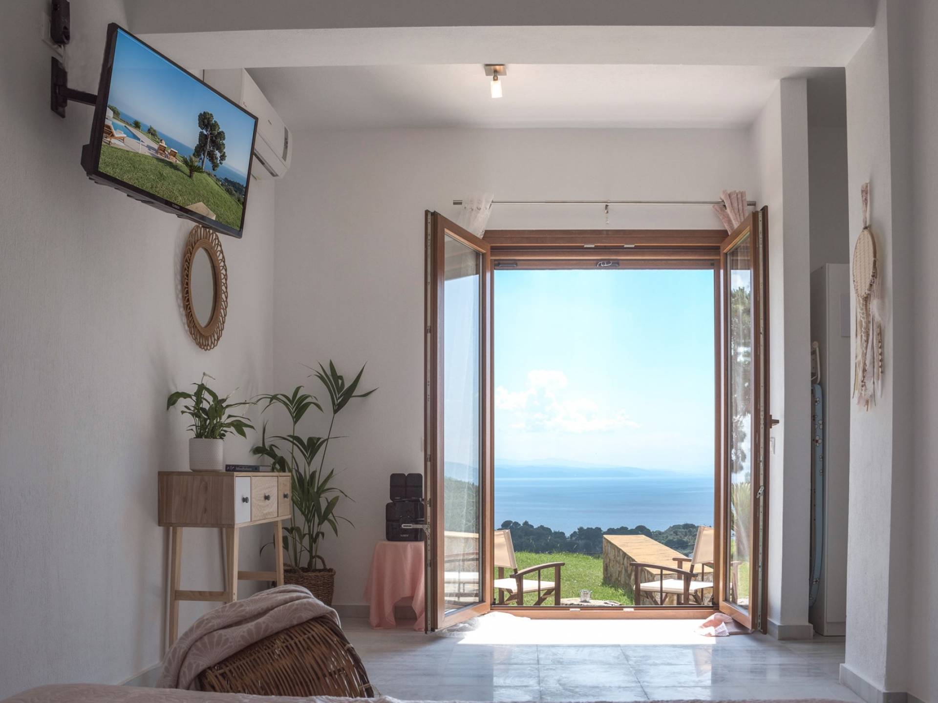 Διαμέρισμα 3: στυλ στούντιο με μίνι ψυγείο, διπλό κρεβάτι, μπάνιο, θυρίδα ασφαλείας, προϊόντα μπάνιου, στερεοφωνικό HI-FI, Flat Smart TV, ιδιωτικό υπαίθριο καθιστικό. Εμβαδό δωματίου 35 τ.μ.
