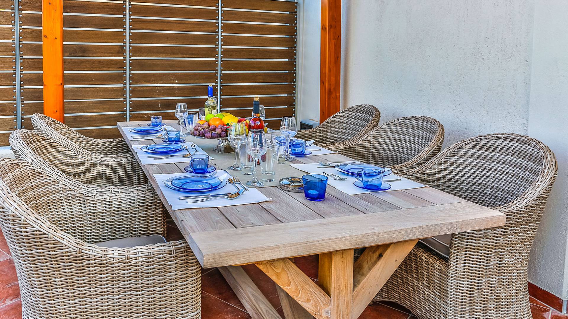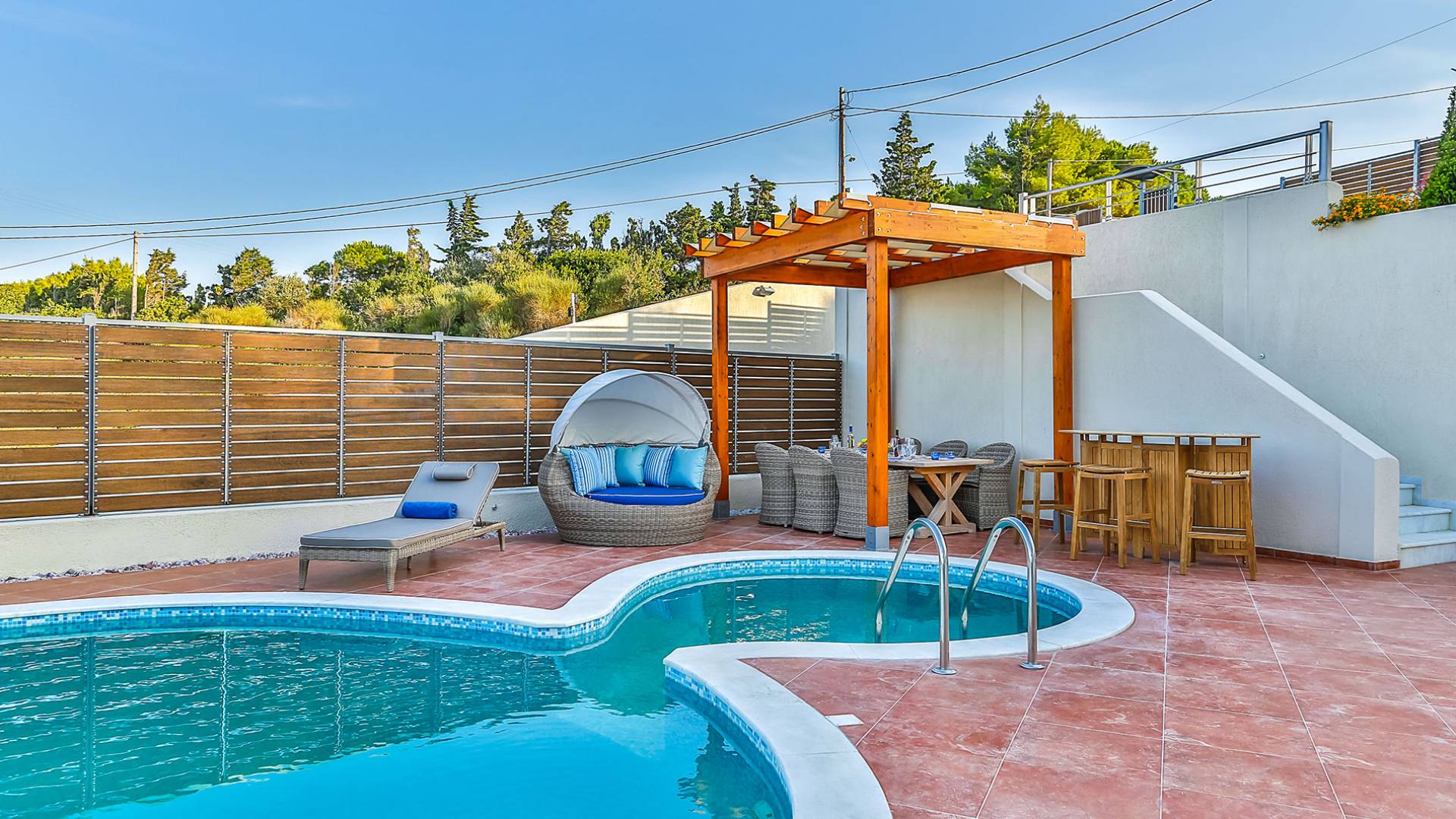 Κάθε βίλα έχει τη δική της ιδιωτική πισίνα, που συμπληρώνεται από τους σύγχρονους εξωτερικούς χώρους καθιστικού και τραπεζαρίας, όλοι με ξύλινες πέργκολες που δίνουν σκιά. Κάθε βίλα διαθέτει μπάρμπεκιου και μπαρ, δημιουργώντας την τέλεια ατμόσφαιρα για άνετες οικογενειακές συναντήσεις ή αξέχαστες νύχτες κάτω από τον έναστρο ουρανό.