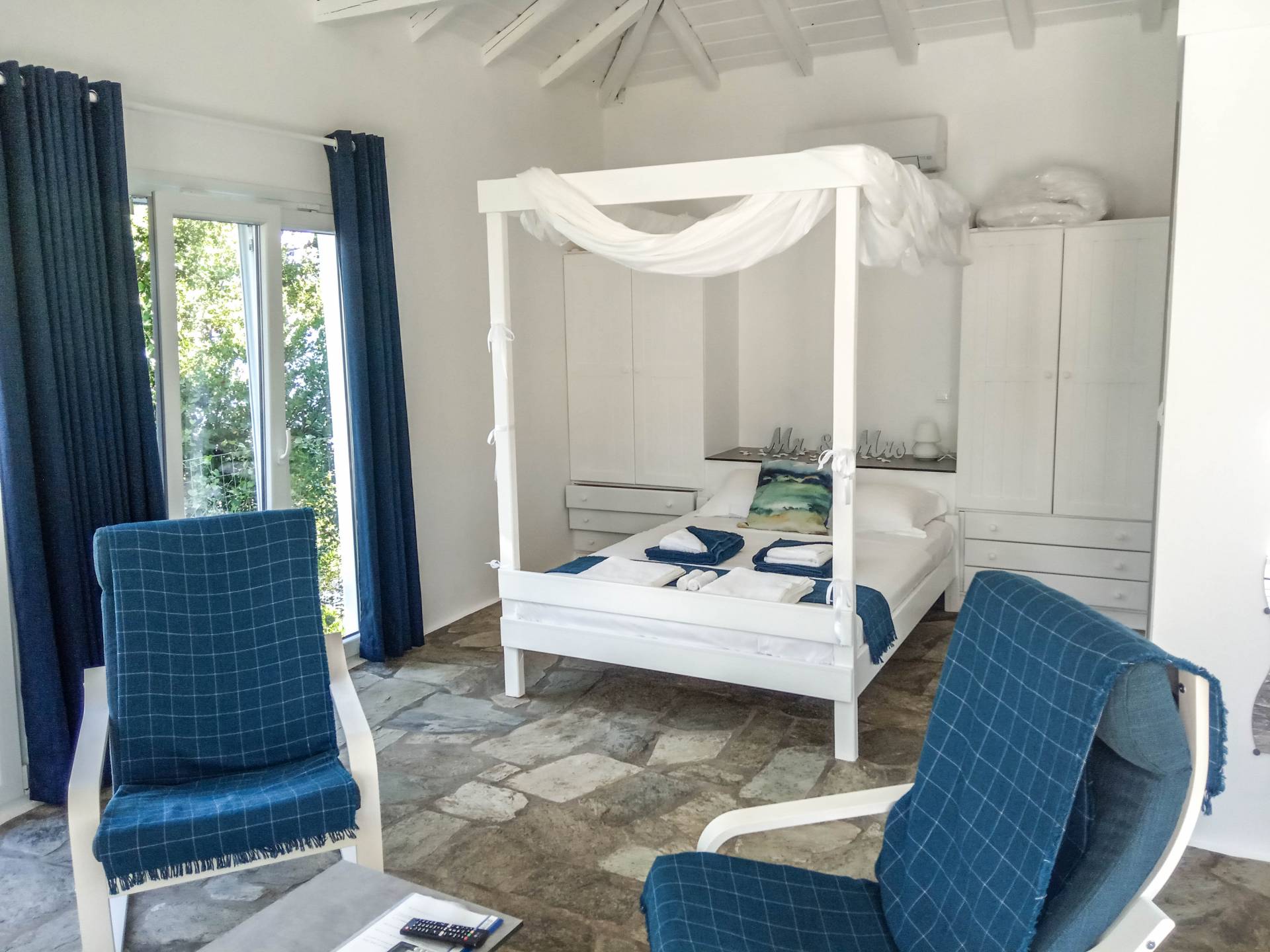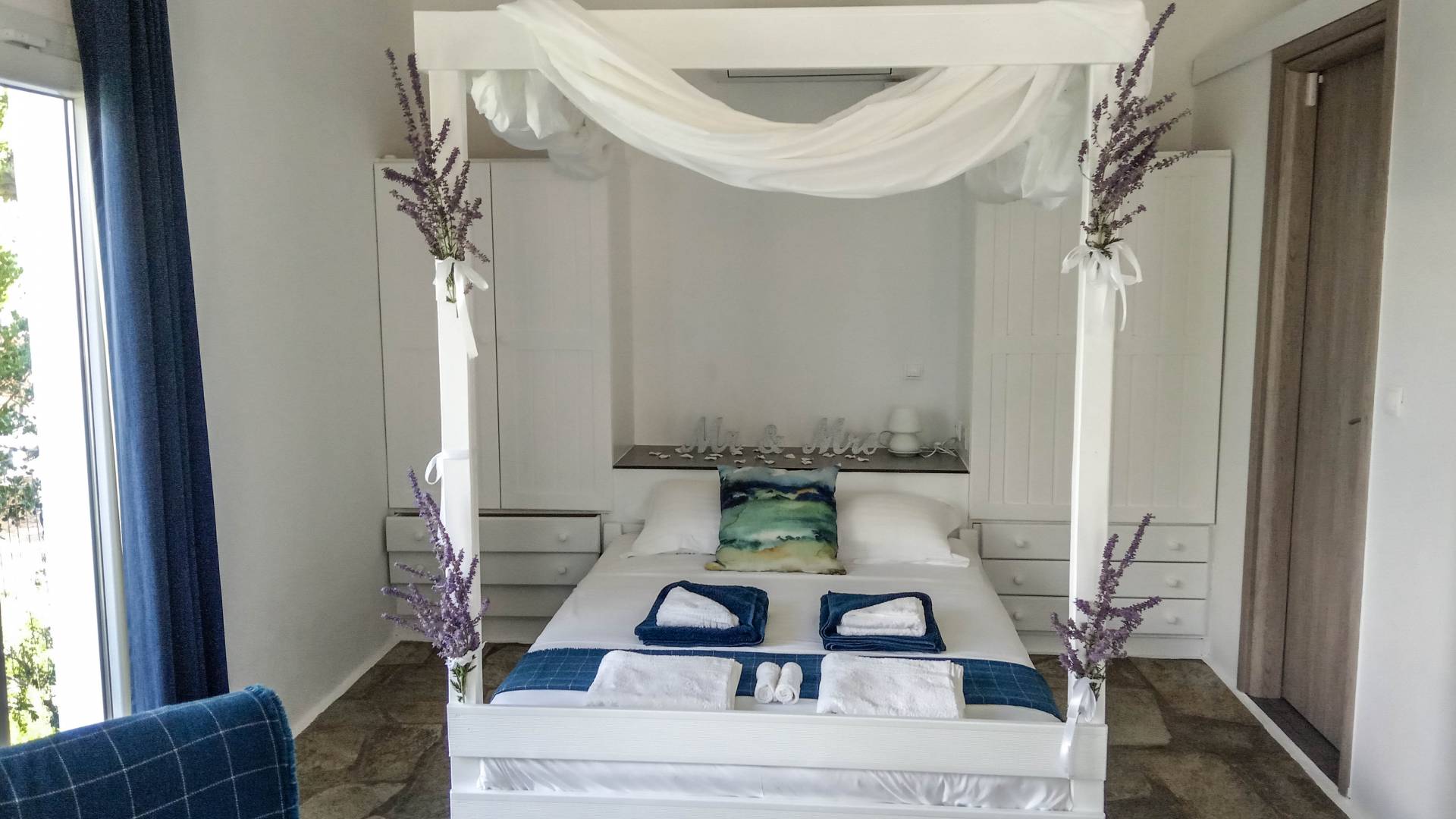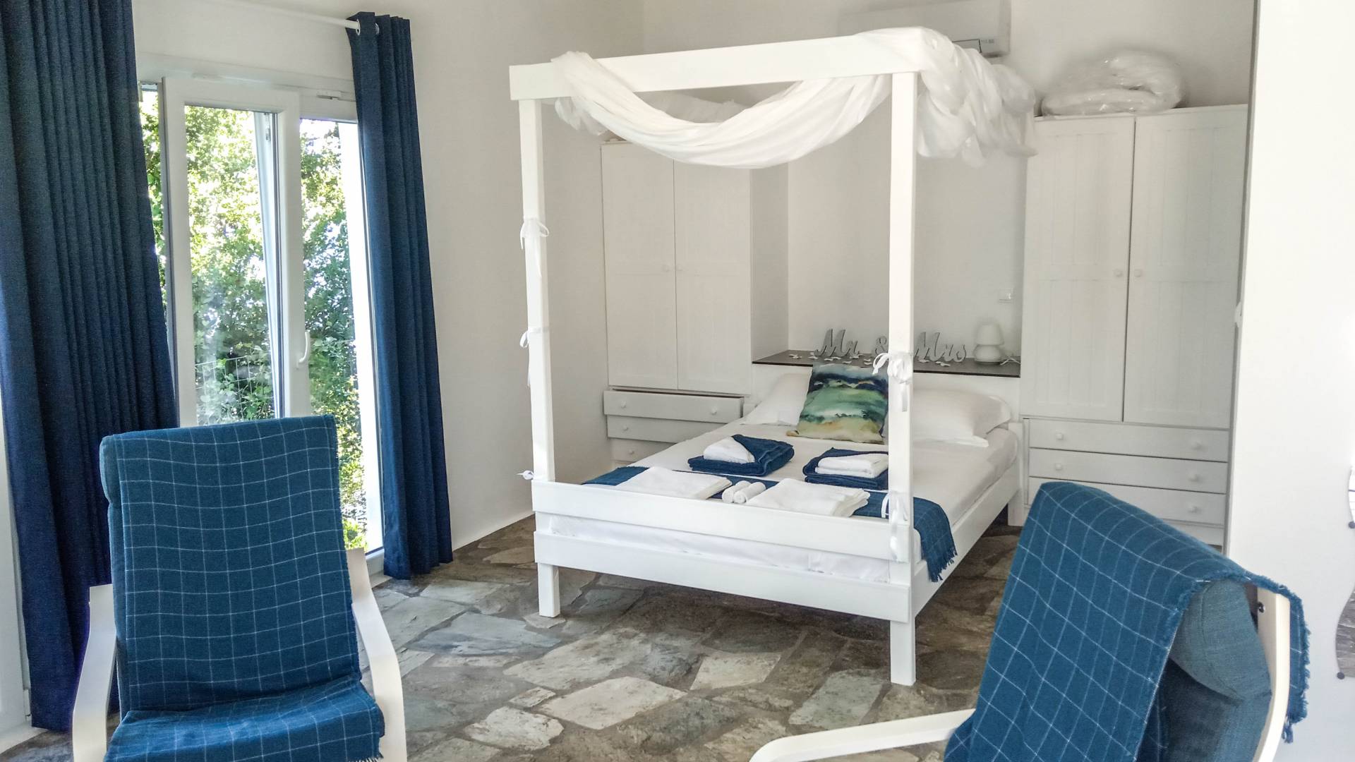 Έξω υπάρχει ένα Boat House / Honeymoon Σουίτα που βρίσκεται στην κάτω βεράντα του κήπου δίπλα στο Αιγαίο Πέλαγος και την ιδιωτική προβλήτα. Αυτή είναι μια αυτόνομη μονάδα, που διαθέτει διπλό κρεβάτι με ουρανό, θολωτά δοκάρια στην οροφή και ιδιωτικό μπάνιο με ντους.