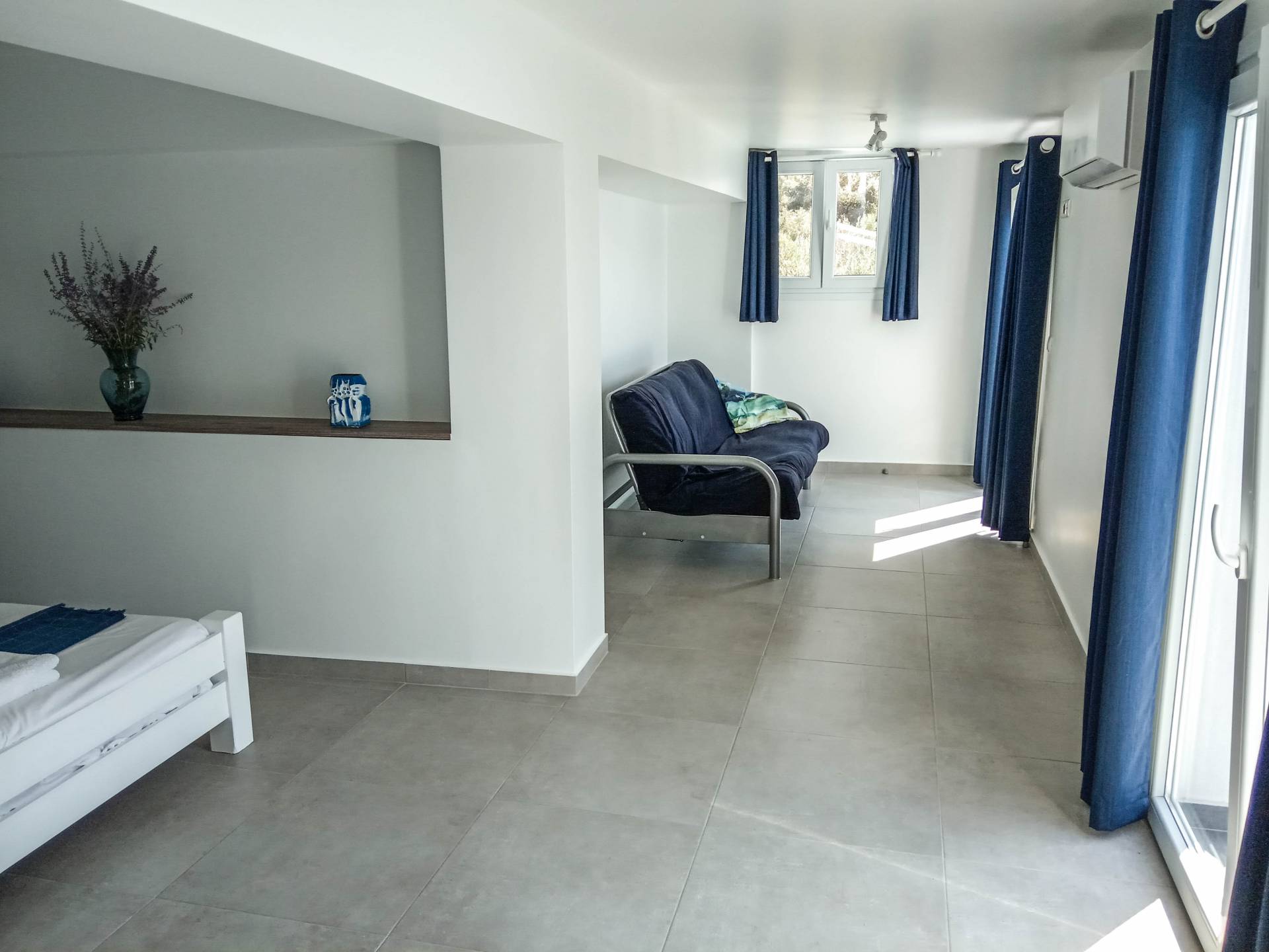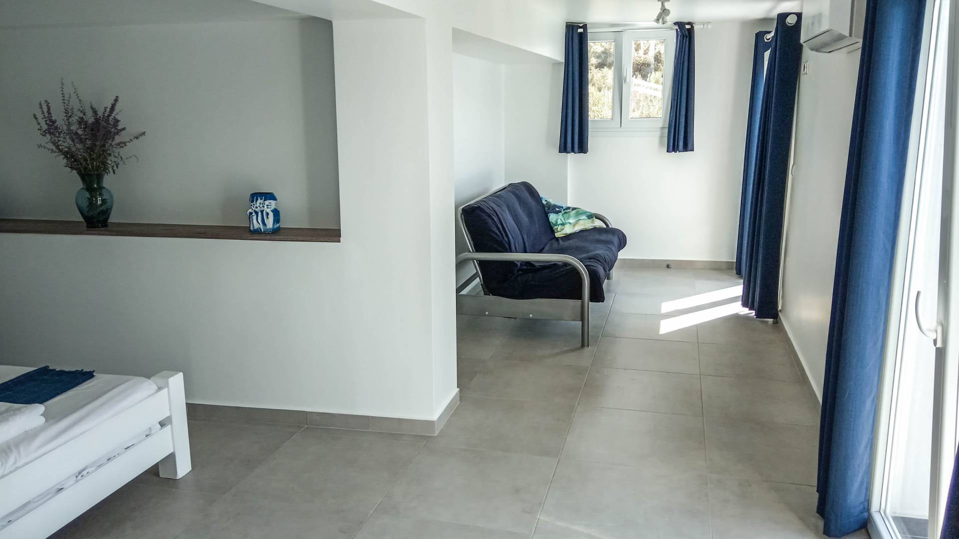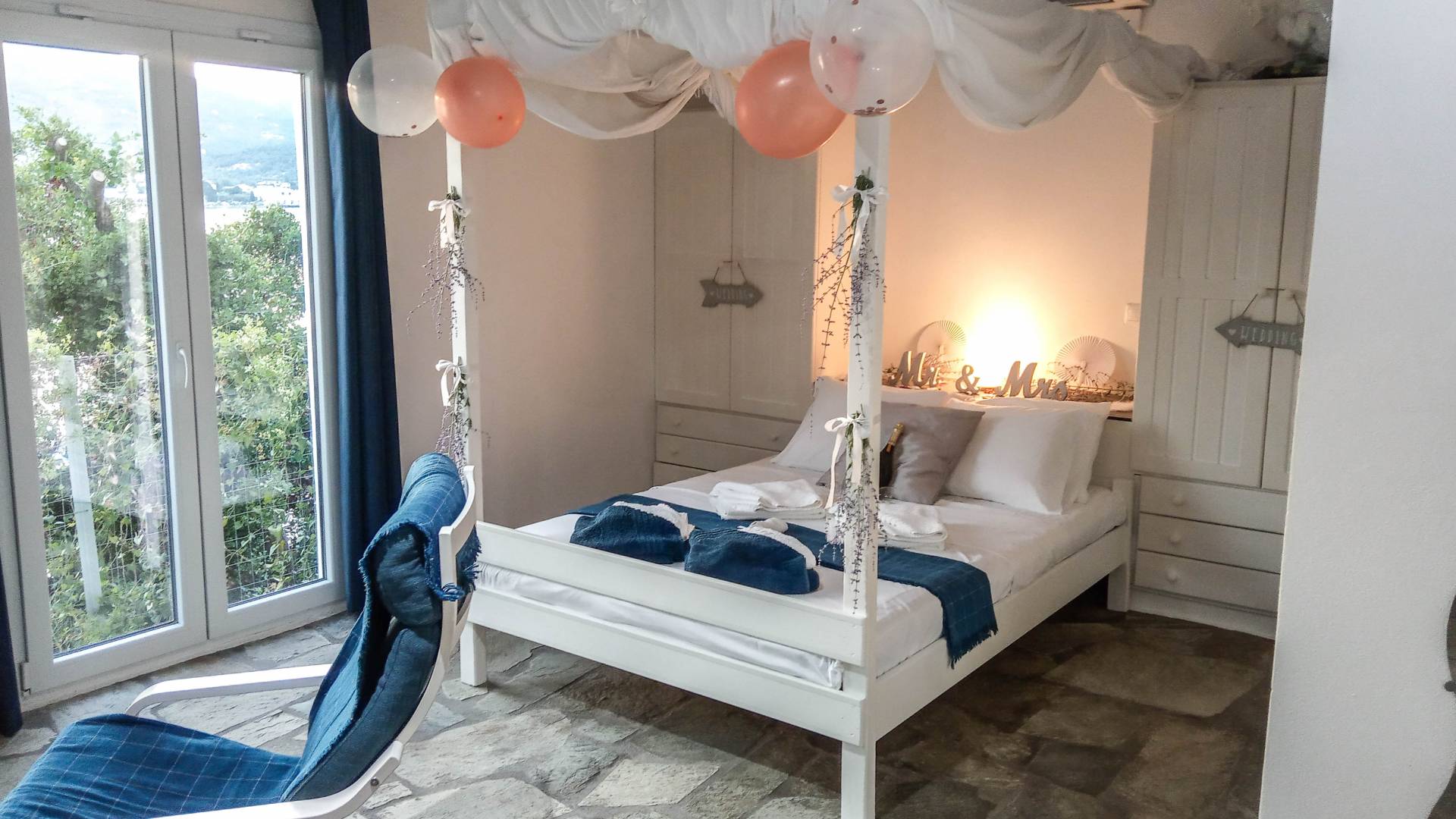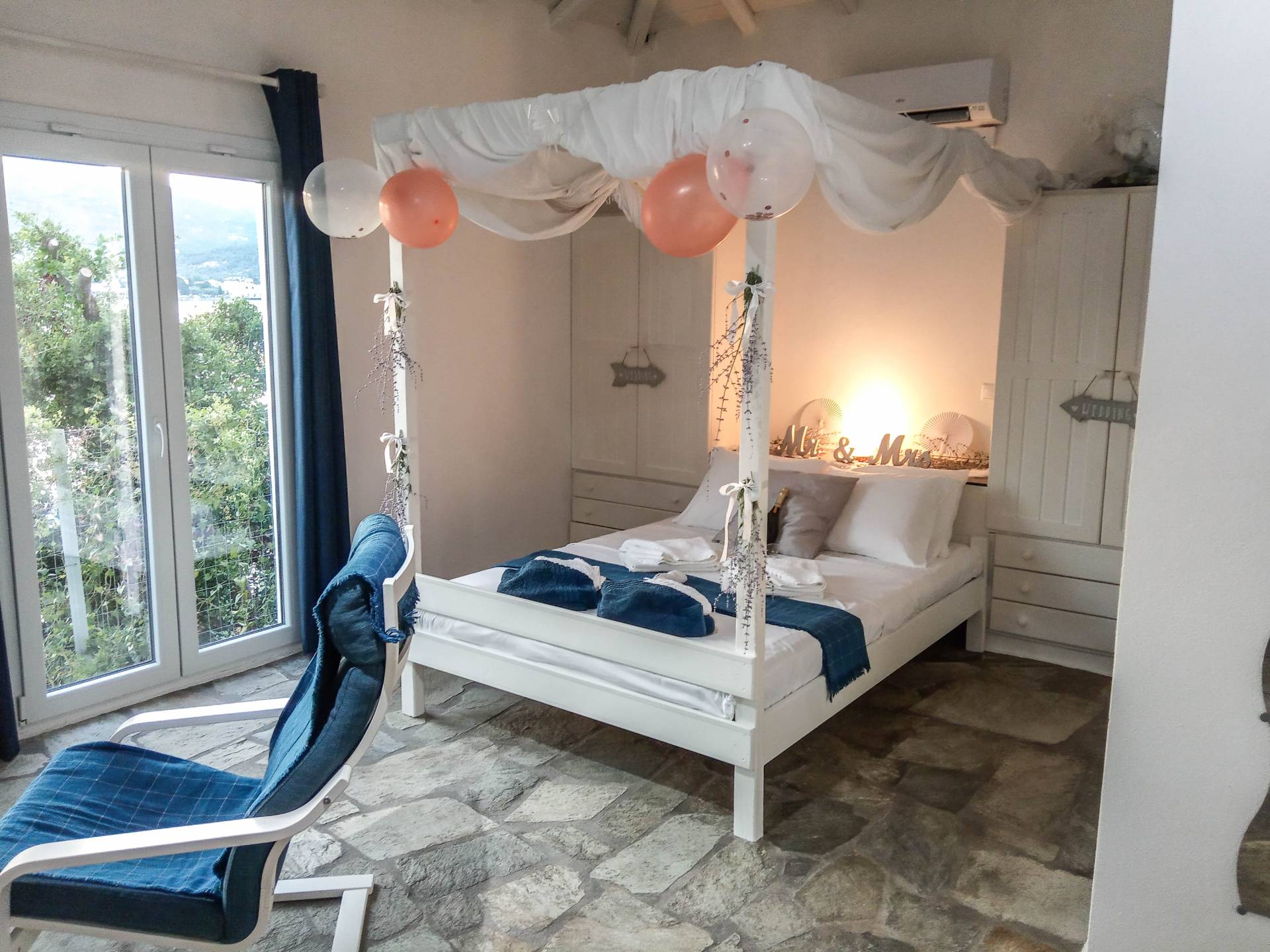 Έξω υπάρχει ένα Boat House / Honeymoon Σουίτα που βρίσκεται στην κάτω βεράντα του κήπου δίπλα στο Αιγαίο Πέλαγος και την ιδιωτική προβλήτα. Αυτή είναι μια αυτόνομη μονάδα, που διαθέτει διπλό κρεβάτι με ουρανό, θολωτά δοκάρια στην οροφή και ιδιωτικό μπάνιο με ντους.