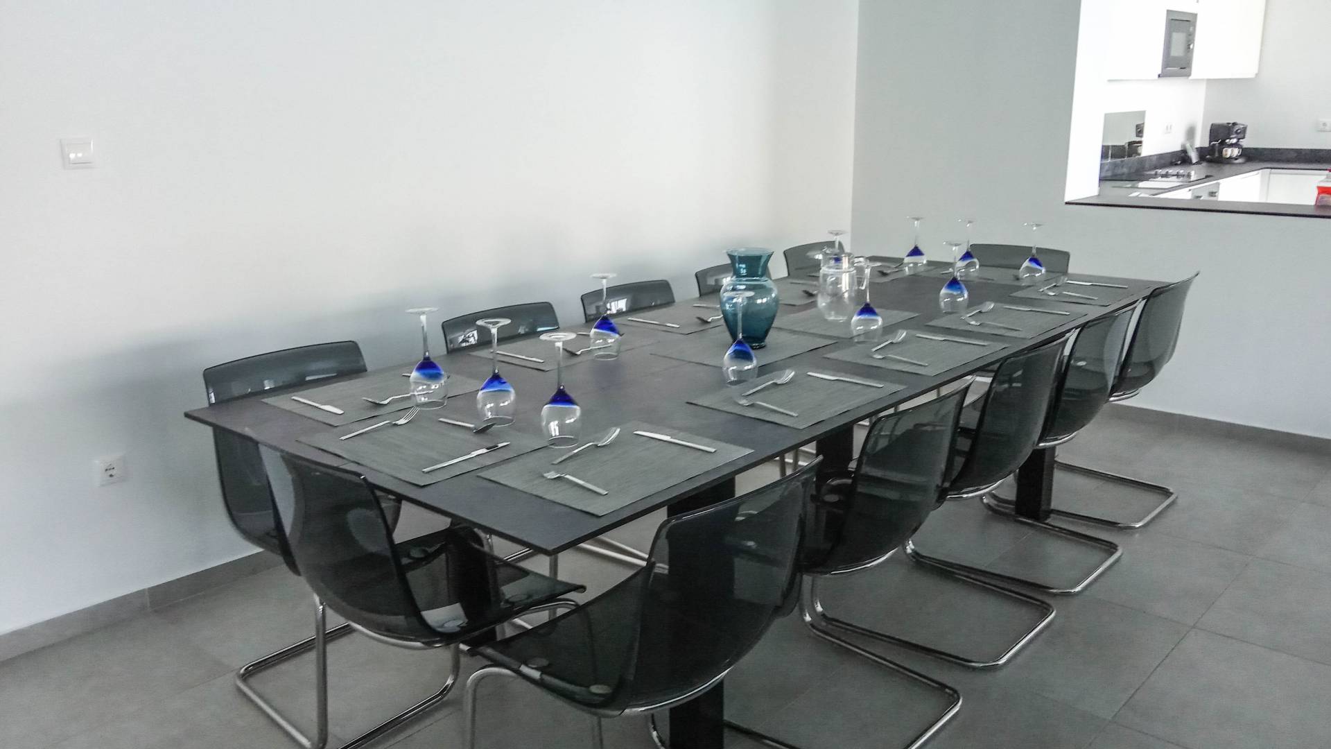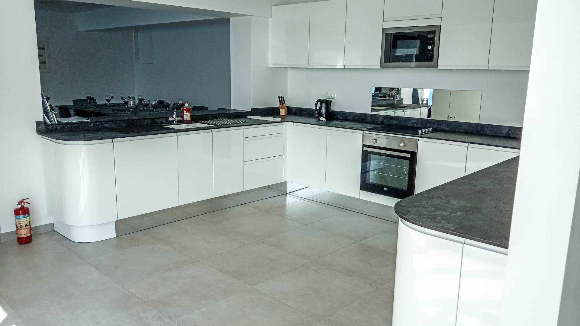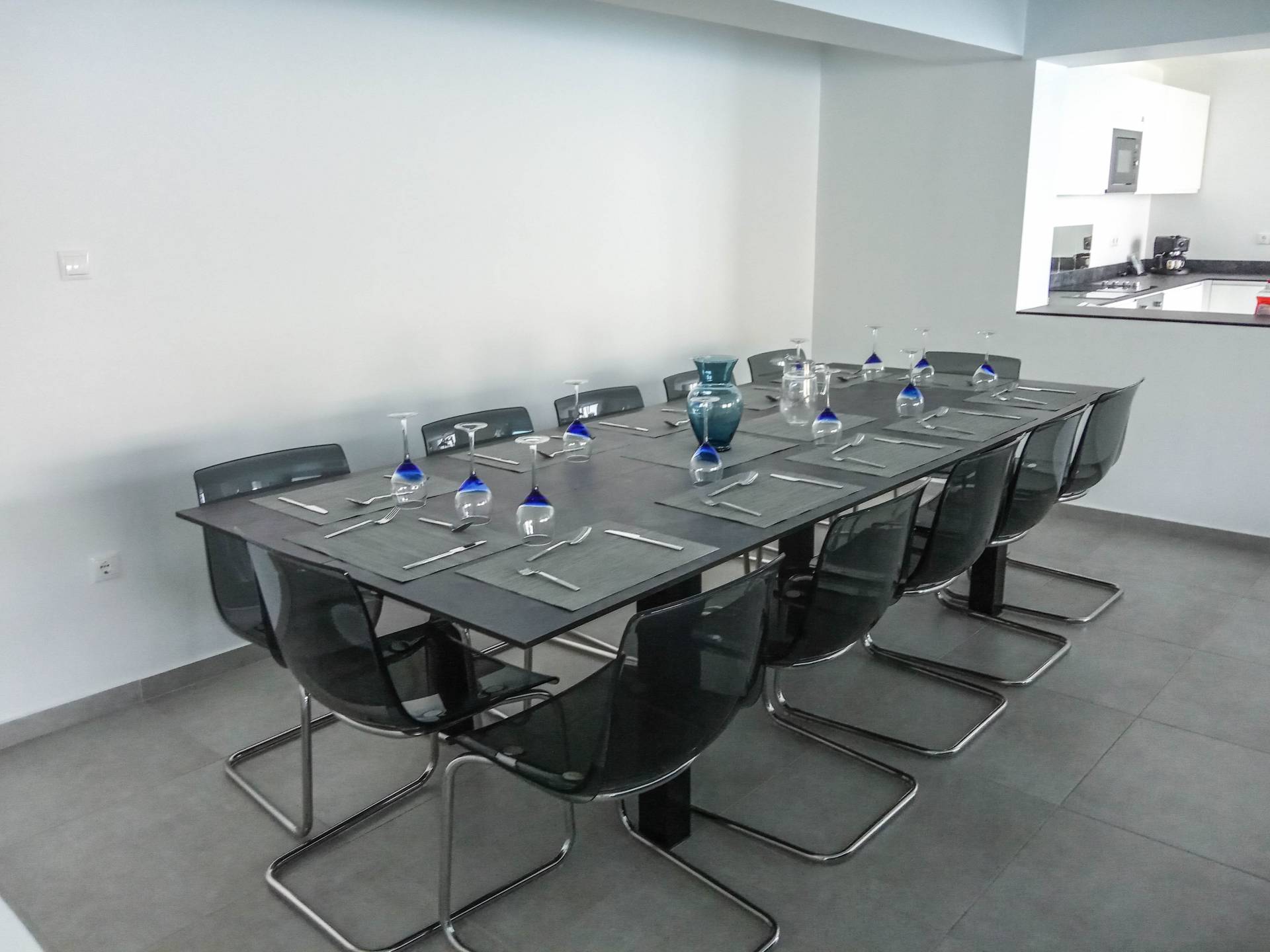 Στο ισόγειο, θα βρείτε μια κουζίνα που είναι σε μεγάλο βαθμό μοντέρνα και μινιμαλιστική, εξοπλισμένη με συμπαγείς πάγκους 12 mm τελευταίας τεχνολογίας και γυαλιστερά λευκά ντουλάπια. Οι συσκευές περιλαμβάνουν 2 ψυγεία Whirlpool, καταψύκτη υδρομασάζ, πλυντήριο πιάτων υδρομασάζ, φούρνο μικροκυμάτων AEG, κεραμικές εστίες Beko και φούρνο. Η τραπεζαρία βρίσκεται δίπλα στην κουζίνα και έχει μια μεγάλη τραπεζαρία που μπορεί να φιλοξενήσει 12 άτομα. Το σαλόνι είναι ανοιχτό, υπάρχουν 2 μεγάλοι μοντέρνοι καναπέδες και αναπαυτικές καρέκλες στο σαλόνι, για να χαλαρώσετε και να προσέχετε στον κόλπο προς την πόλη της Σκιάθου. Υπάρχει μια μεγάλη Smart TV 49 ιντσών και πυρκαγιά για το χειμώνα. Το υπνοδωμάτιο #5 είναι μια άλλη σουίτα που περιλαμβάνει κρεβάτι king size, ένα μεγάλο ιδιωτικό μπάνιο και έναν επιπλέον διπλό καναπέ-κρεβάτι ή χώρο γραφείου και το υπνοδωμάτιο #6 είναι ένα διπλό, με ιδιωτικό μπάνιο, ντους, ντουλάπες κ.λπ.