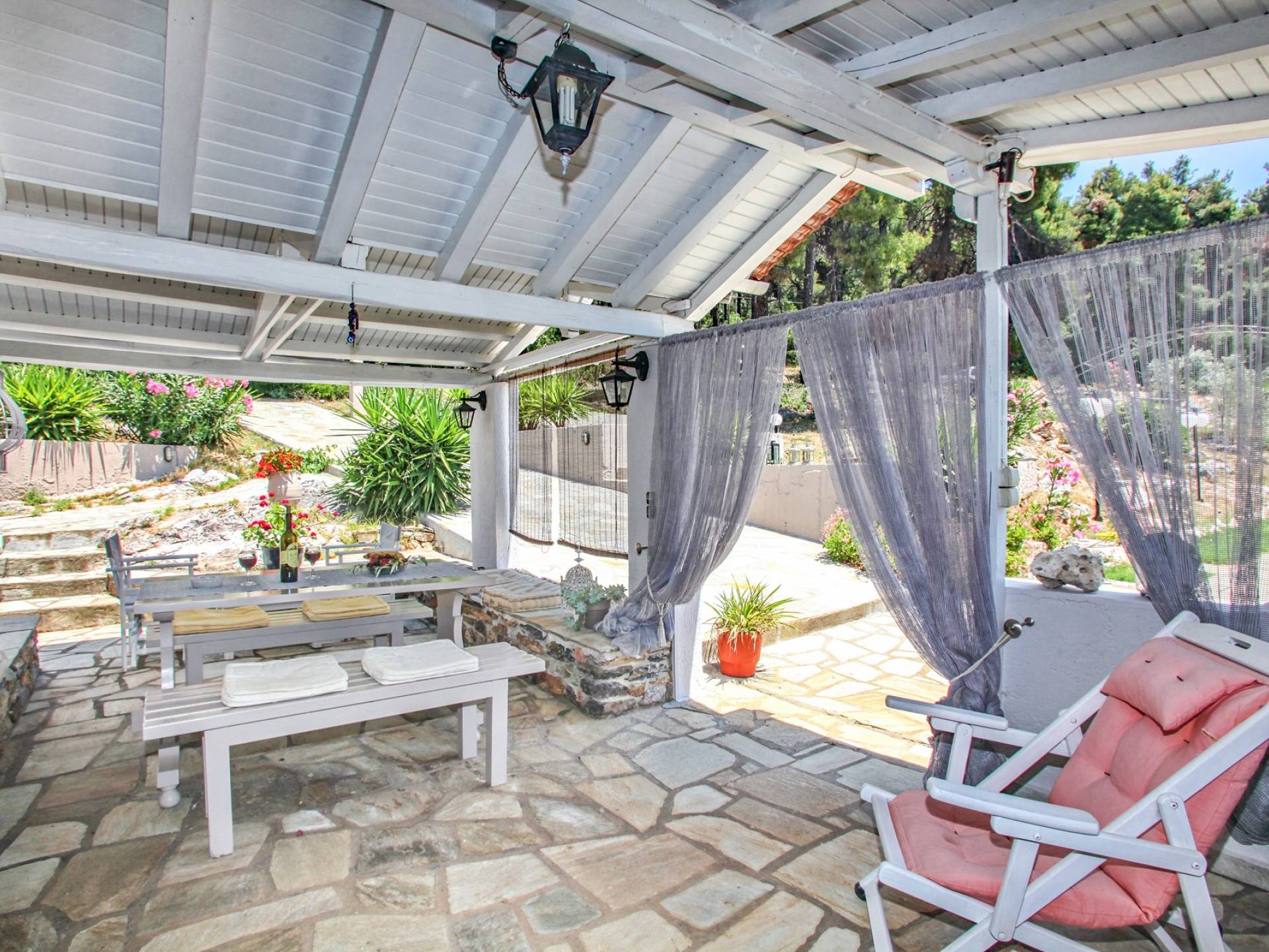 Το εσωτερικό της Villa Kardous Pine Tree Skopelos έχει διακοσμηθεί με γούστο και προσφέρει δύο υπνοδωμάτια – ένα με διπλά κρεβάτια και ένα με κρεβάτι king-size – κουζίνα, σαλόνι και ένα μπάνιο. Το ανάκλιντρο στο σαλόνι μπορεί να χρησιμοποιηθεί και ως άνετο κρεβάτι. Με την απρόσκοπτη ροή μεταξύ εσωτερικών και εξωτερικών χώρων και φωλιασμένη ανάμεσα σε βότανα, λουλούδια και θάμνους, αυτή η βίλα θα σας επιτρέψει να ζήσετε τον ελληνικό νησιωτικό τρόπο ζωής. Απολαύστε ένα κοκτέιλ ηλιοβασιλέματος στην ιδιωτική σας πισίνα (8 x 4 μέτρα) ή ετοιμάστε ένα νόστιμο γεύμα μπάρμπεκιου με φρέσκο ψάρι... Η «Pine Tree Villa» προσφέρει πολλές δυνατότητες.