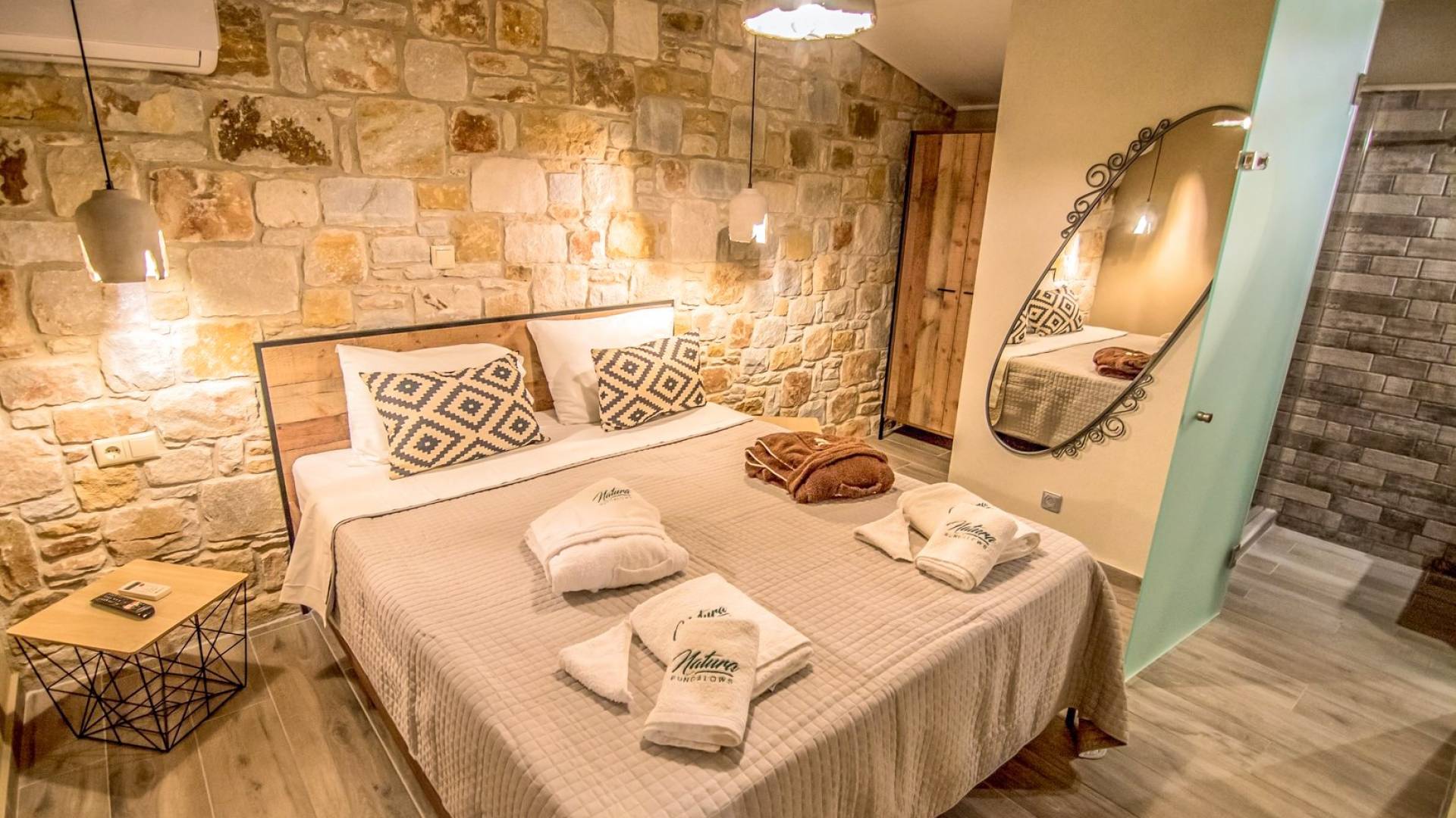 Το Natura Bungalows Thassos περιβάλλεται από ανθισμένη φύση και προσφέρει ένα αναζωογονητικό και γαλήνιο περιβάλλον για τους επισκέπτες. Αυτό το Deluxe Διαμέρισμα είναι ένας ιδανικός προορισμός για όλους, ζευγάρια και οικογένειες, με όλες τις βολικές ανέσεις που παρέχονται. Ο σύγχρονος σχεδιασμός σε συνδυασμό με μια πινελιά πολυτέλειας ικανοποιεί και τους πιο απαιτητικούς