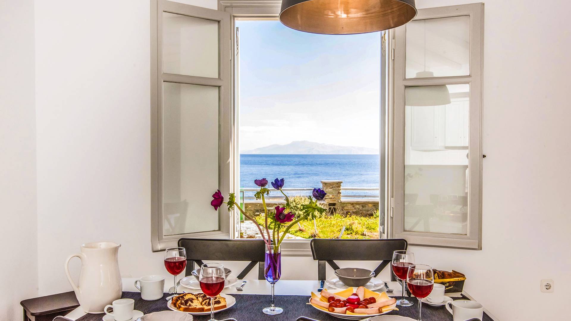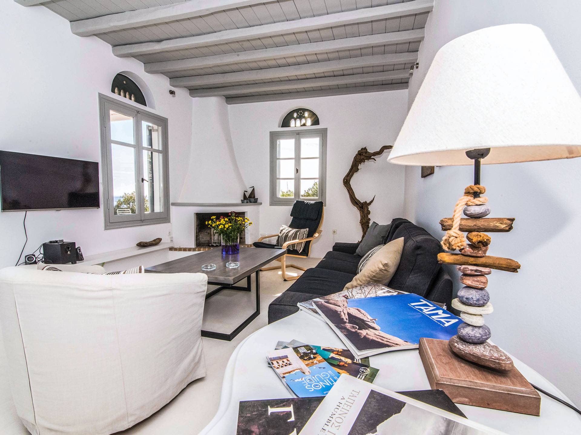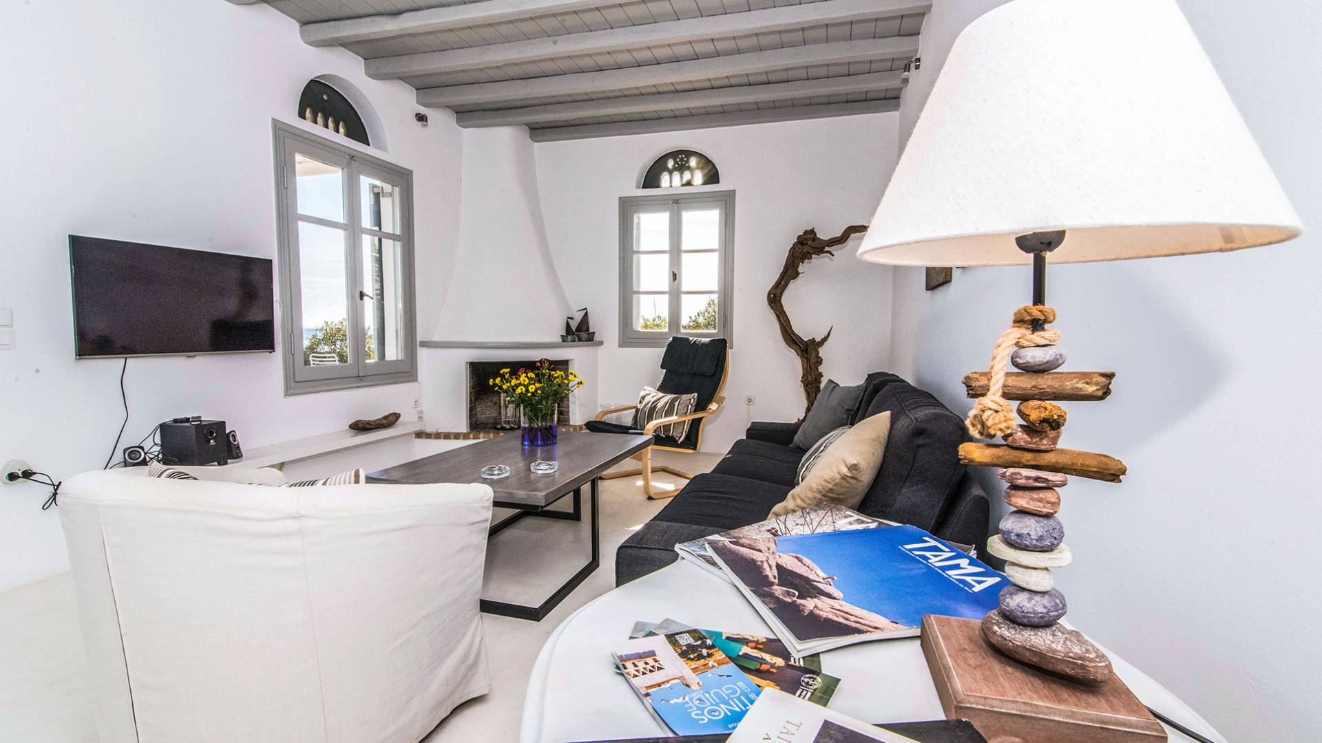 Η βίλα Santamare διαθέτει 3 υπνοδωμάτια με διπλά κρεβάτια και 3 ιδιωτικά μπάνια. Στο ευρύχωρο σαλόνι, υπάρχει πλήρως εξοπλισμένη κουζίνα, τραπεζαρία, τζάκι, τηλεόραση επίπεδης οθόνης, επιτραπέζια παιχνίδια και μεγάλα παράθυρα για να απολαύσετε τη μοναδική θέα στη θάλασσα. Μπορείτε πραγματικά να νιώσετε σαν το σπίτι σας και να αδειάσετε το μυαλό σας από τις ανησυχίες και τα δεινά της καθημερινότητας. Έξω θα βρείτε 2 βεράντες. Το ένα έχει θέα στον μαγευτικό φωτισμένο βραχόκηπο και την απαράμιλλη ομορφιά της θάλασσας, ενώ από το άλλο έχετε την ευκαιρία να χαλαρώσετε στην πισίνα, απολαμβάνοντας το ποτό σας στον πλακόστρωτο γύρω χώρο. Το μόνο σας δίλημμα, μόλις φτάσετε στη βίλα Santamare, θα είναι: «Πώς ακριβώς θα γευτώ αυτή τη μαγευτική θέα στο Αιγαίο; Κάτω από τον αναζωογονητικό ήλιο δίπλα στην πισίνα.