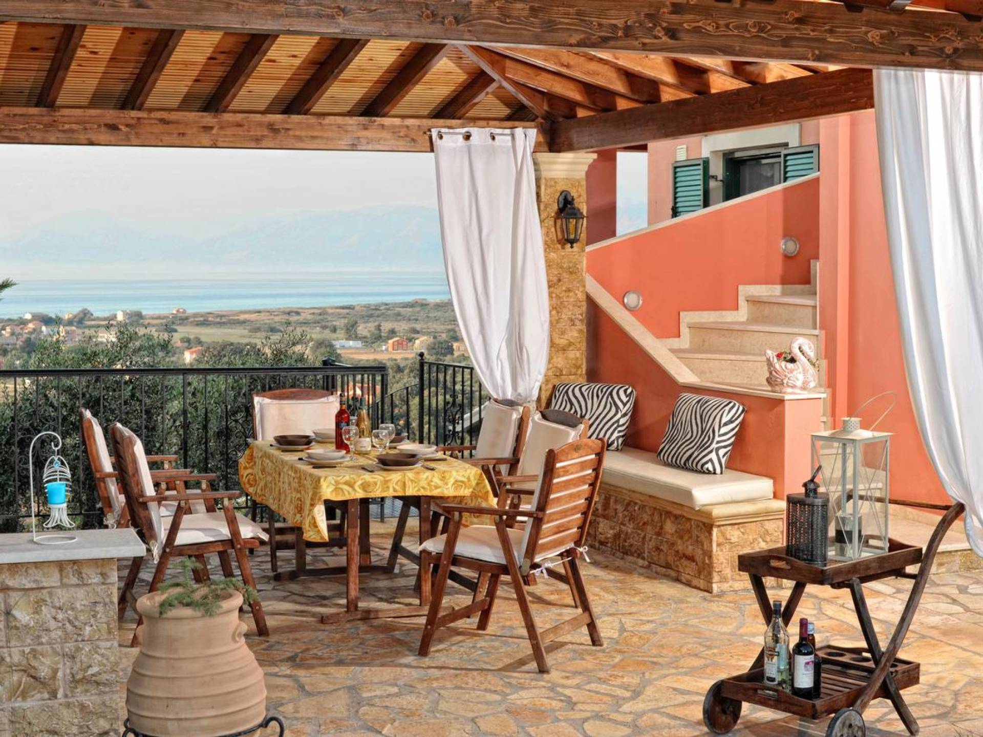 Το πρώτο ακίνητο είναι μια μεζονέτα που μπορεί να φιλοξενήσει έως και 6 άτομα. Ενώ το δεύτερο ακίνητο είναι ένα ανεξάρτητο πλήρως εξοπλισμένο διαμέρισμα που μπορεί να φιλοξενήσει έως 4 άτομα. Με 3 χώρους καθιστικού, 2 πλήρως εξοπλισμένες κουζίνες, 5 υπνοδωμάτια, 3 μπάνια και με πολλά υπέροχα μπαλκόνια και βεράντες που προσφέρουν υπέροχη θέα προς τη βορειοανατολική ακτή της Κέρκυρας, οι μέρες σας εδώ στο Villa Mare E Monti είναι πιθανό να περάσετε αγναντεύοντας με δέος για αυτή τη μαγευτική θέα.