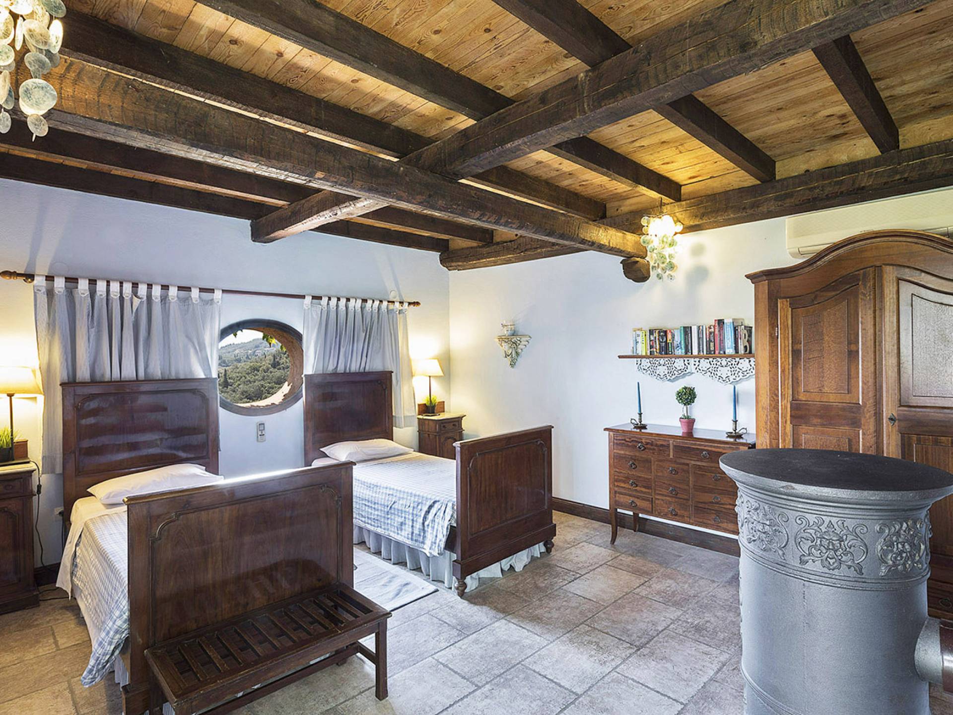 Η Villa Manavra Corfu διαθέτει 3 υπνοδωμάτια και μπορεί να φιλοξενήσει 6 άτομα. Στο ισόγειο, υπάρχει το πρώτο υπνοδωμάτιο με δύο μονά κρεβάτια, ένα μπάνιο με νιπτήρα, τουαλέτα και ντους. Το δεύτερο υπνοδωμάτιο βρίσκεται επίσης στο ισόγειο και διαθέτει επίσης δύο μονά κρεβάτια, ένα μπάνιο με νιπτήρα, τουαλέτα και μπάνιο. Το κύριο υπνοδωμάτιο με διπλό κρεβάτι βρίσκεται στον πρώτο όροφο και έχει δικό του μπάνιο με νιπτήρα, τουαλέτα και μπανιέρα.