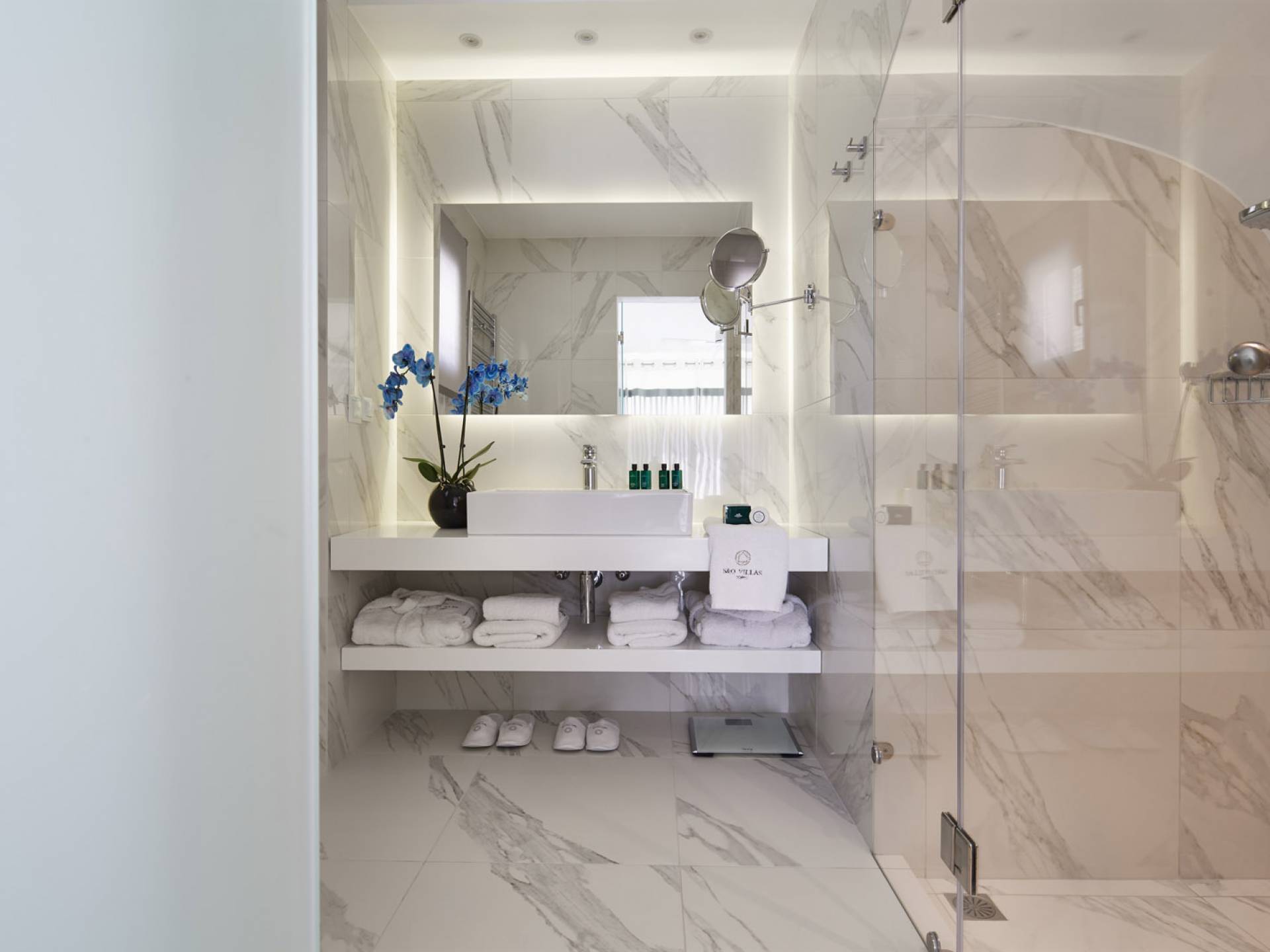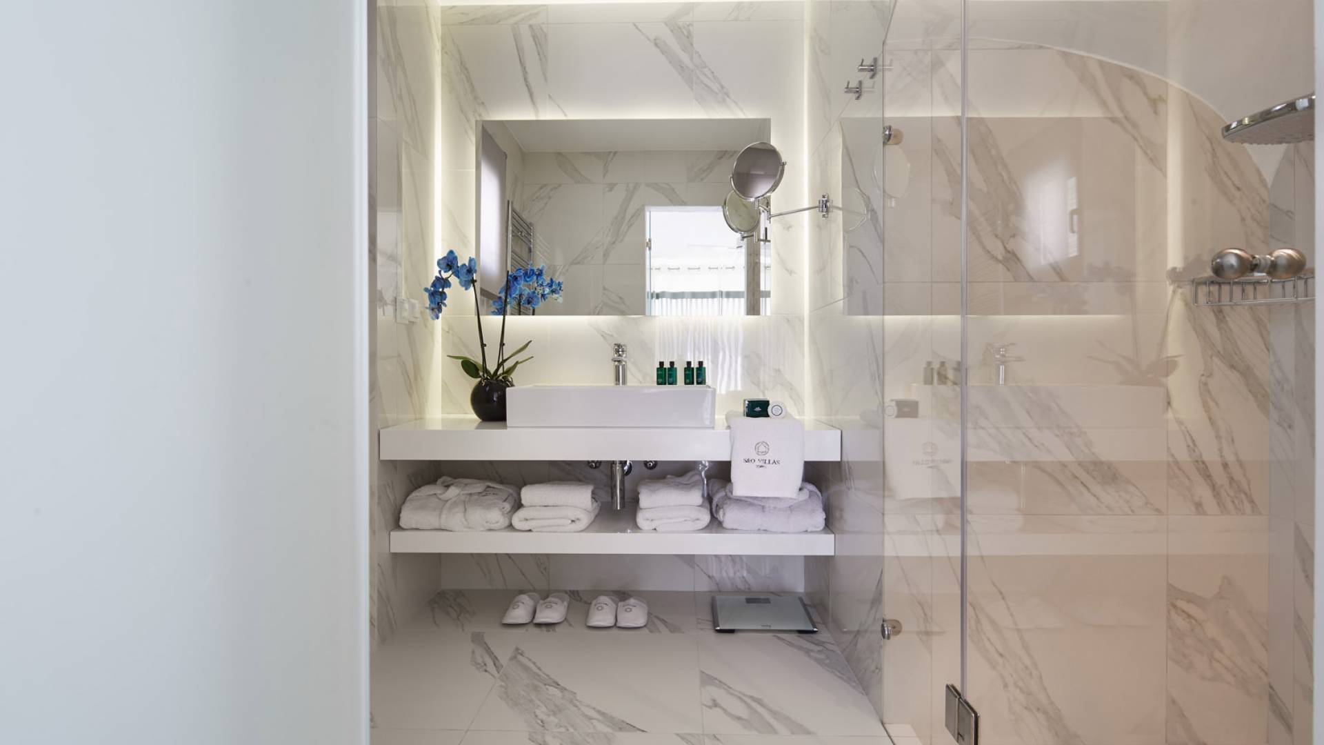 Δύο ακόμη υπνοδωμάτια, ένα διπλό και ένα διπλό, με ιδιωτικό μπάνιο και ιδιωτικό μπαλκόνι βρίσκονται στο δεύτερο επίπεδο. Ένα ιδιωτικό υπαίθριο τζακούζι βρίσκεται στο μπαλκόνι του κυρίως υπνοδωματίου. Υπάρχουν τηλεοράσεις επίπεδης οθόνης και κλιματισμός σε κάθε δωμάτιο, με δορυφορικά κανάλια και DVD player, απευθείας τηλεφωνική γραμμή, ηλεκτρονική θυρίδα ασφαλείας και δωρεάν Wi-Fi.