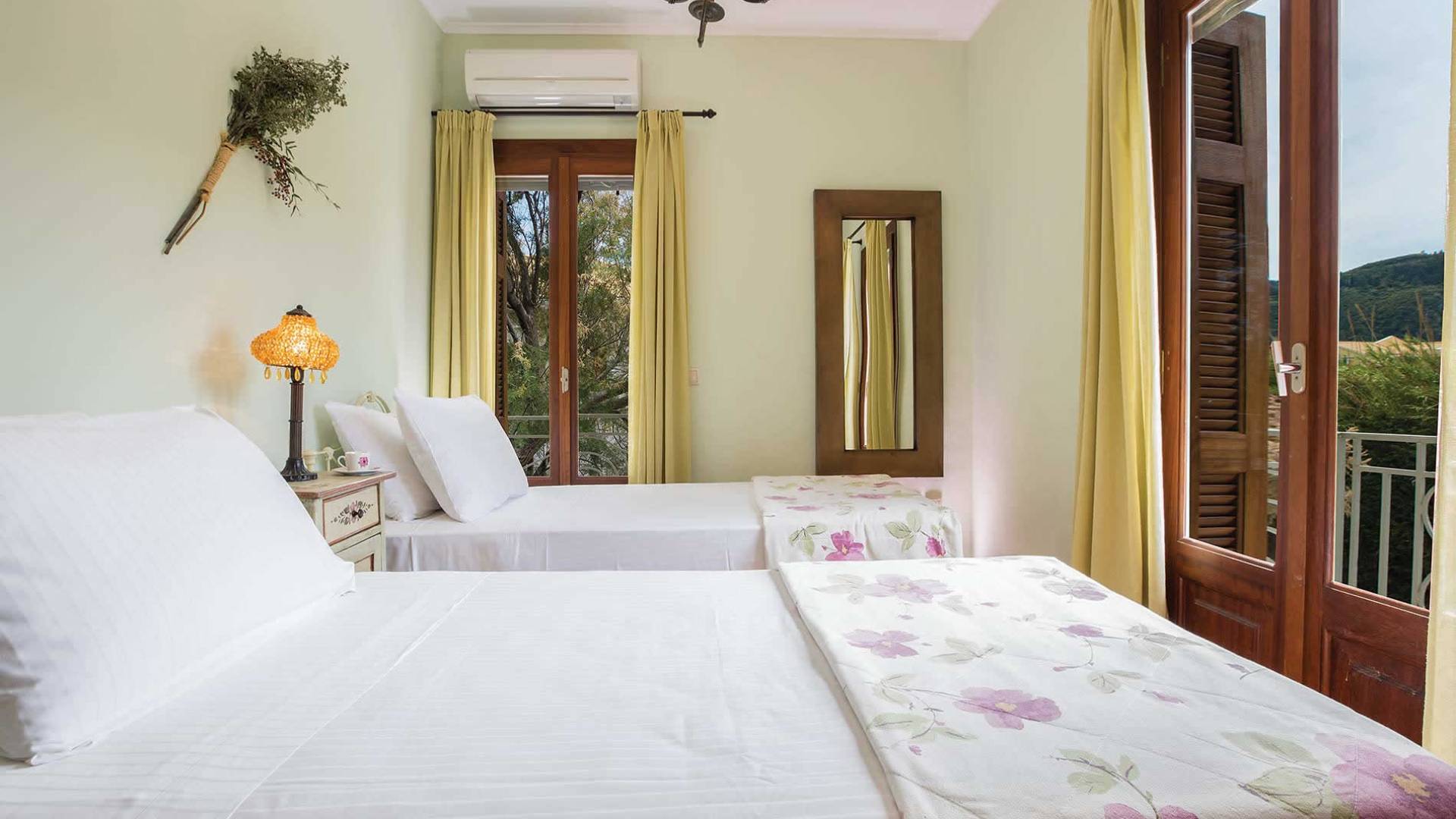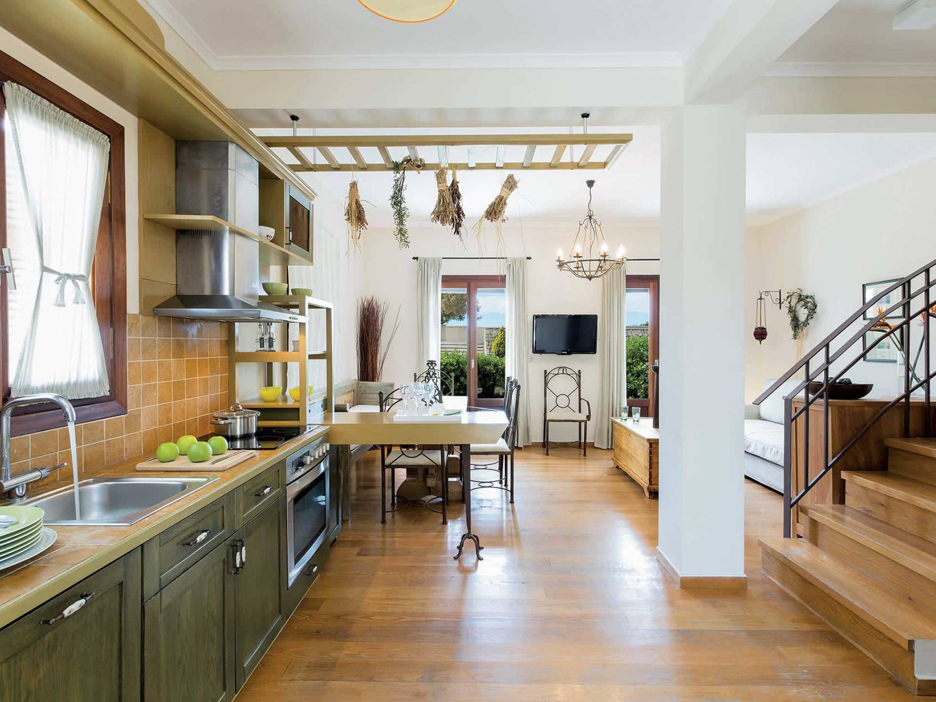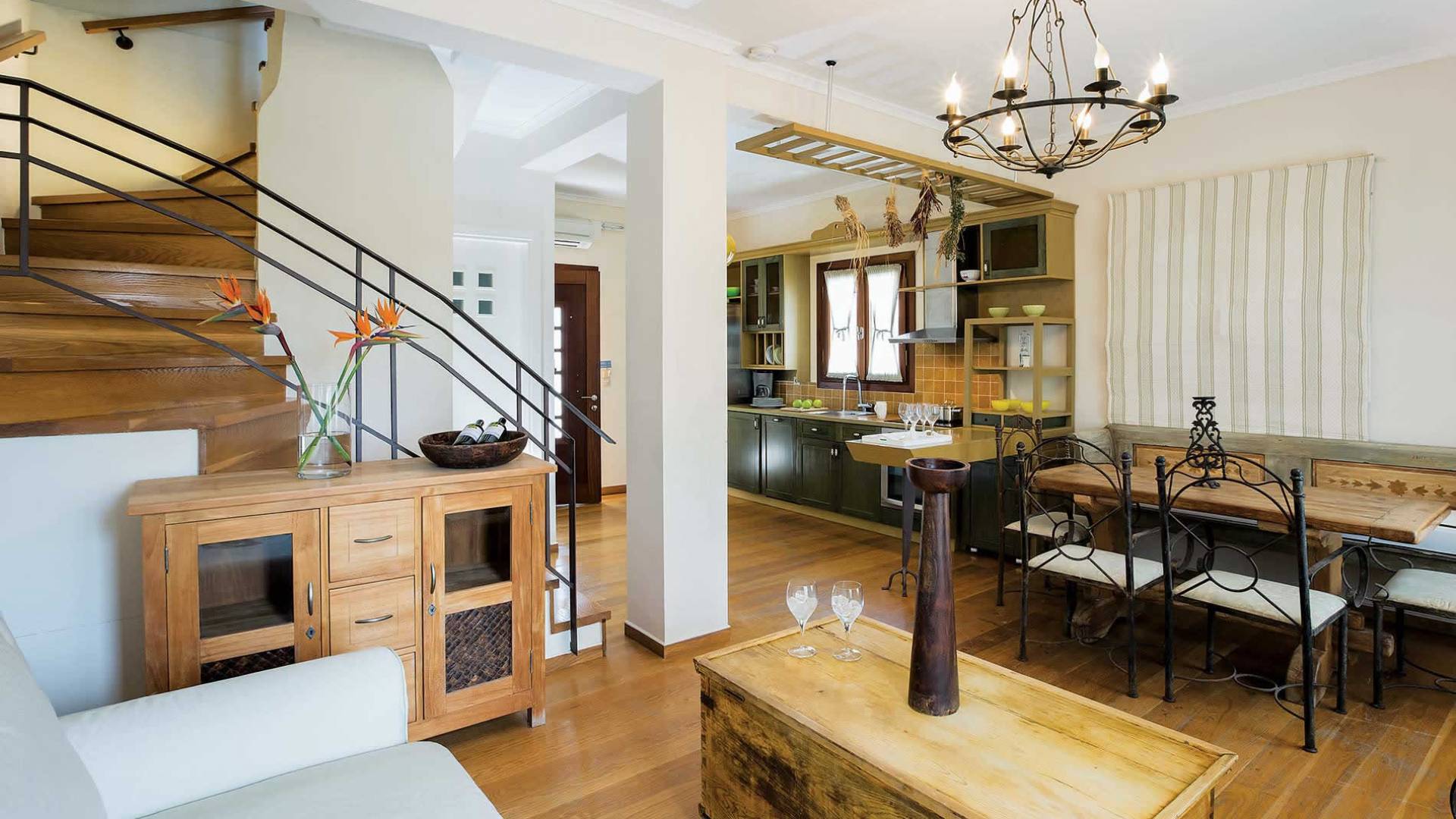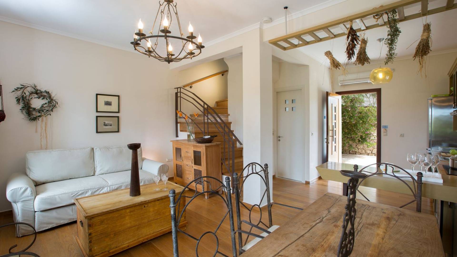 Ένα επιπλέον πτυσσόμενο κρεβάτι για ένα πέμπτο άτομο μπορεί να προστεθεί στο σαλόνι εάν απαιτείται. Όλα τα υπνοδωμάτια είναι μεγάλα σε μέγεθος, διαθέτουν μπαλκόνι και προσφέρουν εκπληκτική θέα στην ανοιχτή θάλασσα. Υπάρχουν δύο μπάνια, το ένα είναι στον επάνω όροφο και το άλλο στον κάτω όροφο. Δρύινα δάπεδα σε όλο το σπίτι και μαρμάρινα μπάνια προσθέτουν μια νότα πολυτέλειας. Τα σπίτια είναι κλιματιζόμενα και θερμαινόμενα σε όλους τους χώρους.