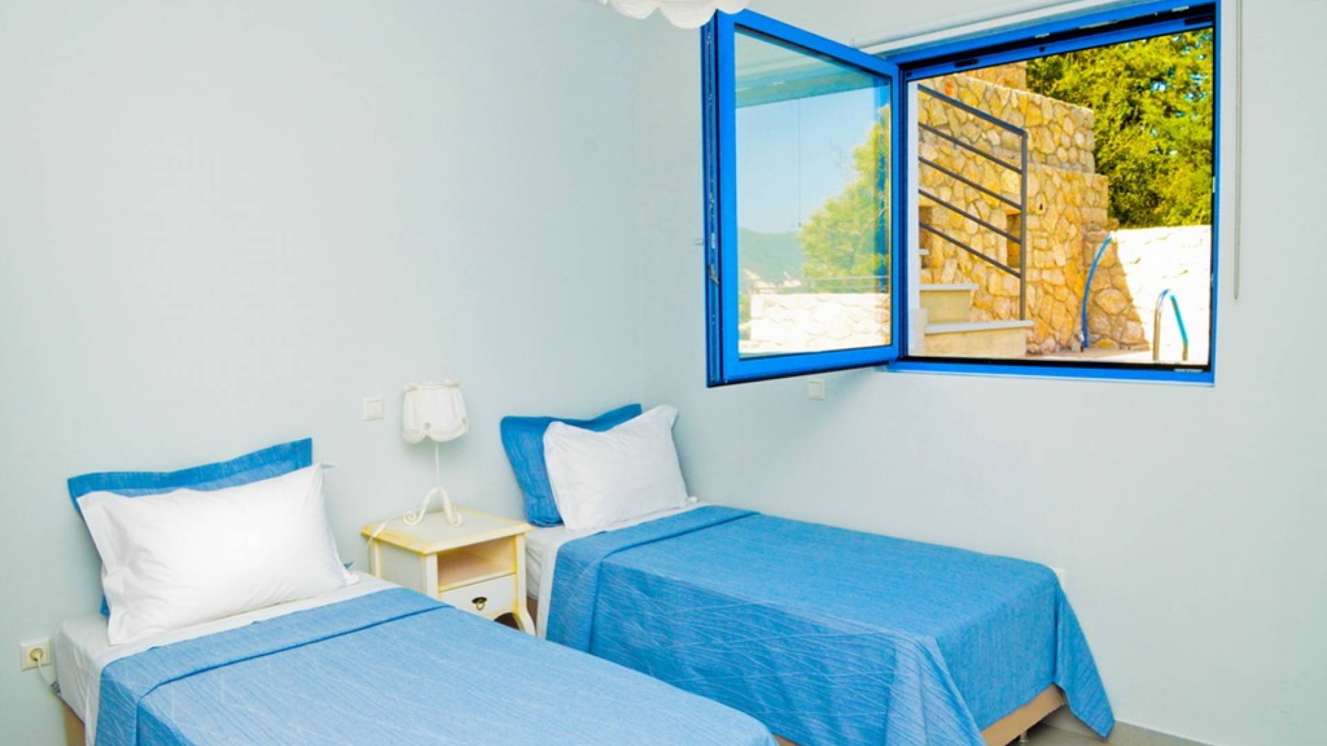 Στο ισόγειο της Villa 3 στο Katerina's Village Lefkada υπάρχουν δύο υπνοδωμάτια: το ένα με διπλό κρεβάτι, ενώ το δεύτερο έχει δύο μονά κρεβάτια και αρκετό χώρο για ένα επιπλέον κρεβάτι ή/και βρεφική κούνια (κατόπιν αιτήματος). Και τα δύο υπνοδωμάτια διαθέτουν ευρύχωρες ντουλάπες, ενώ στον επάνω όροφο υπάρχει ξεχωριστό μπάνιο με άνετο ντους.