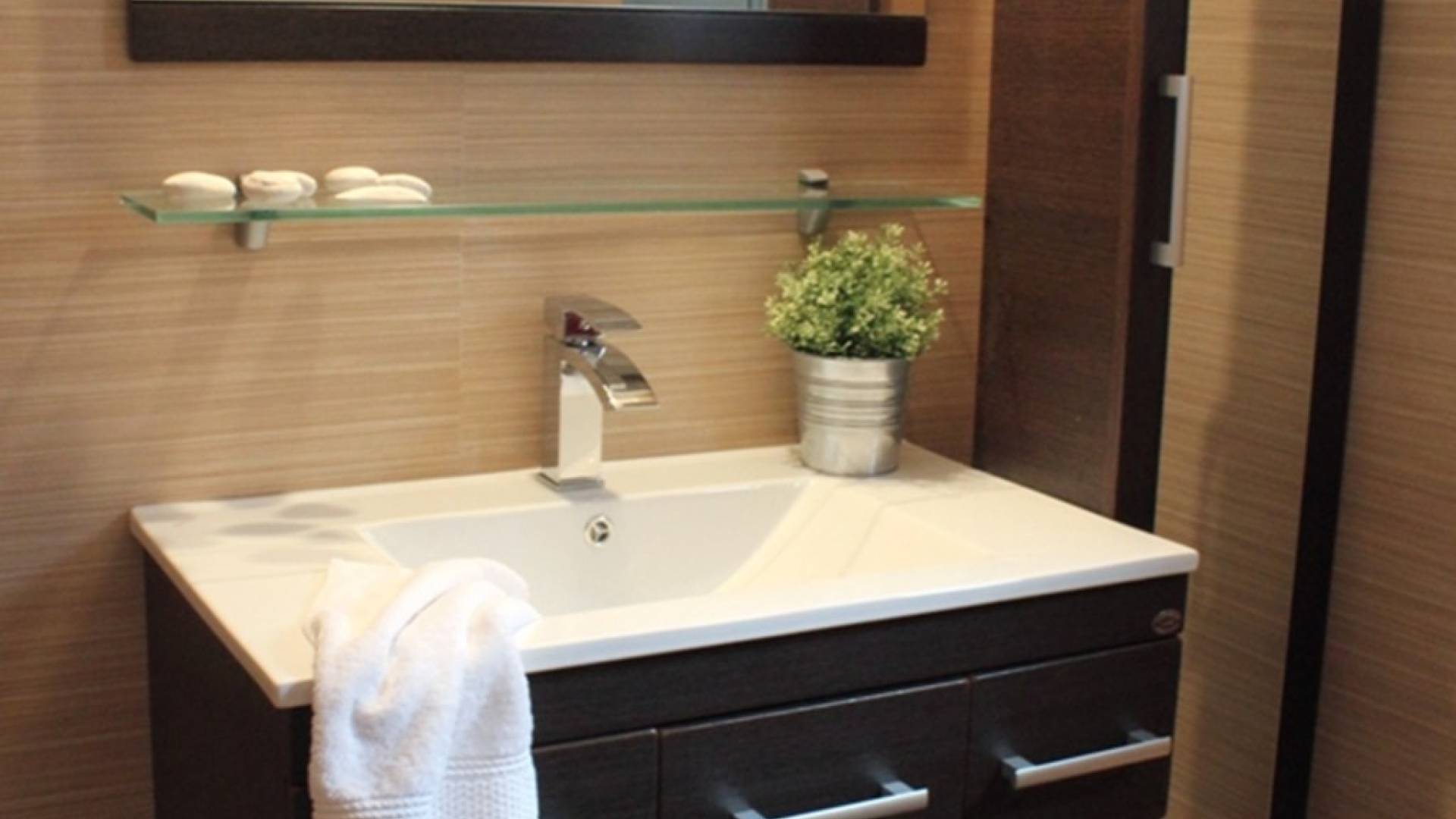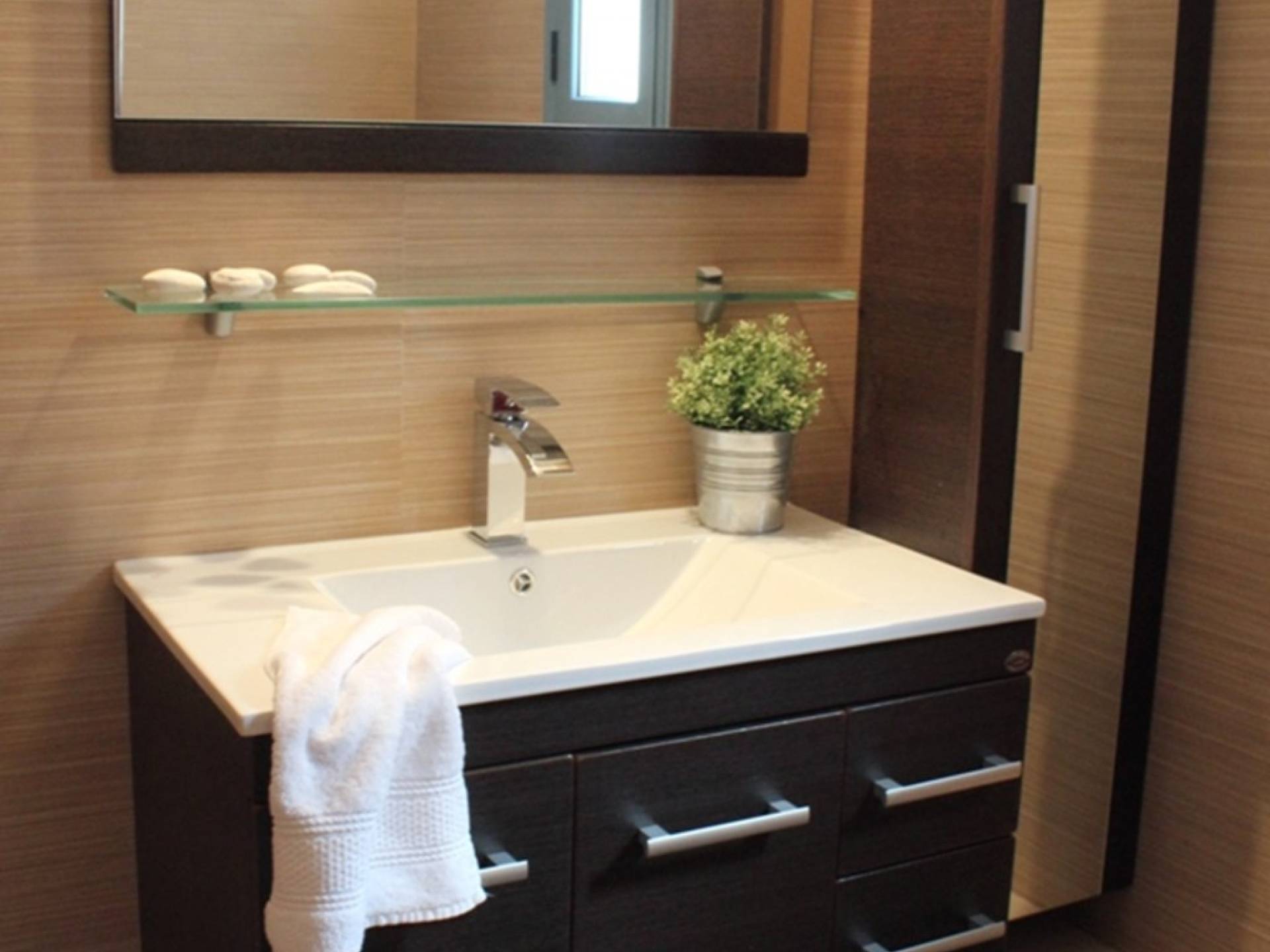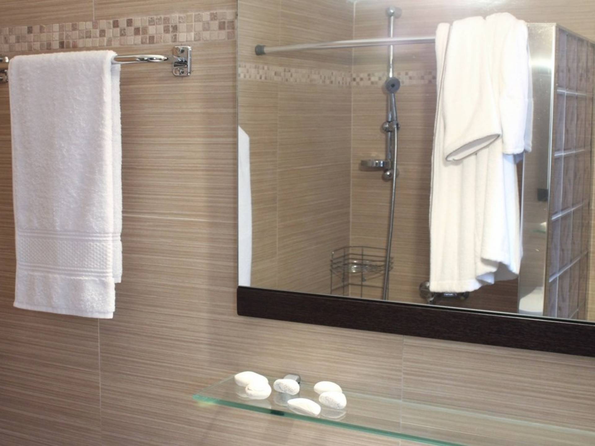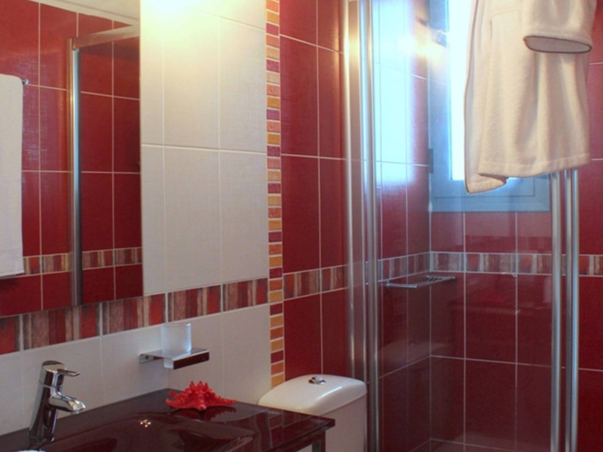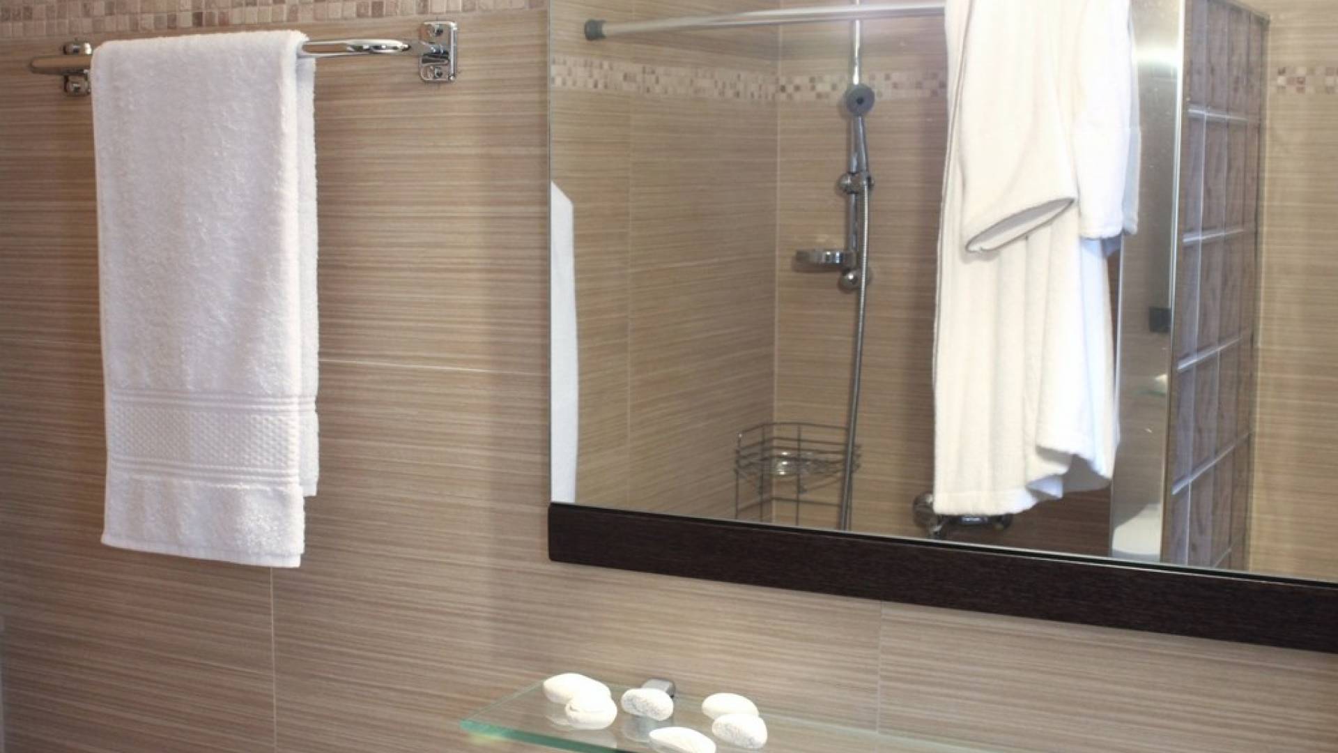 Στο χαμηλότερο επίπεδο, υπάρχουν δύο χώροι, ένα master υπνοδωμάτιο με king-size κρεβάτι και ένα επιπλέον ευρύχωρο υπνοδωμάτιο (σουίτα) με ένα king-size κρεβάτι και ένα καθιστικό, μπορεί να φιλοξενήσει έως 3 άτομα. Υπάρχουν δύο ξεχωριστά ιδιωτικά μπάνια – WC και δωμάτιο πλυντηρίου και στεγνωτηρίου για τις ανάγκες των επισκεπτών. Στον εξωτερικό χώρο υπάρχουν δύο καθιστικά για όλη την ημέρα.