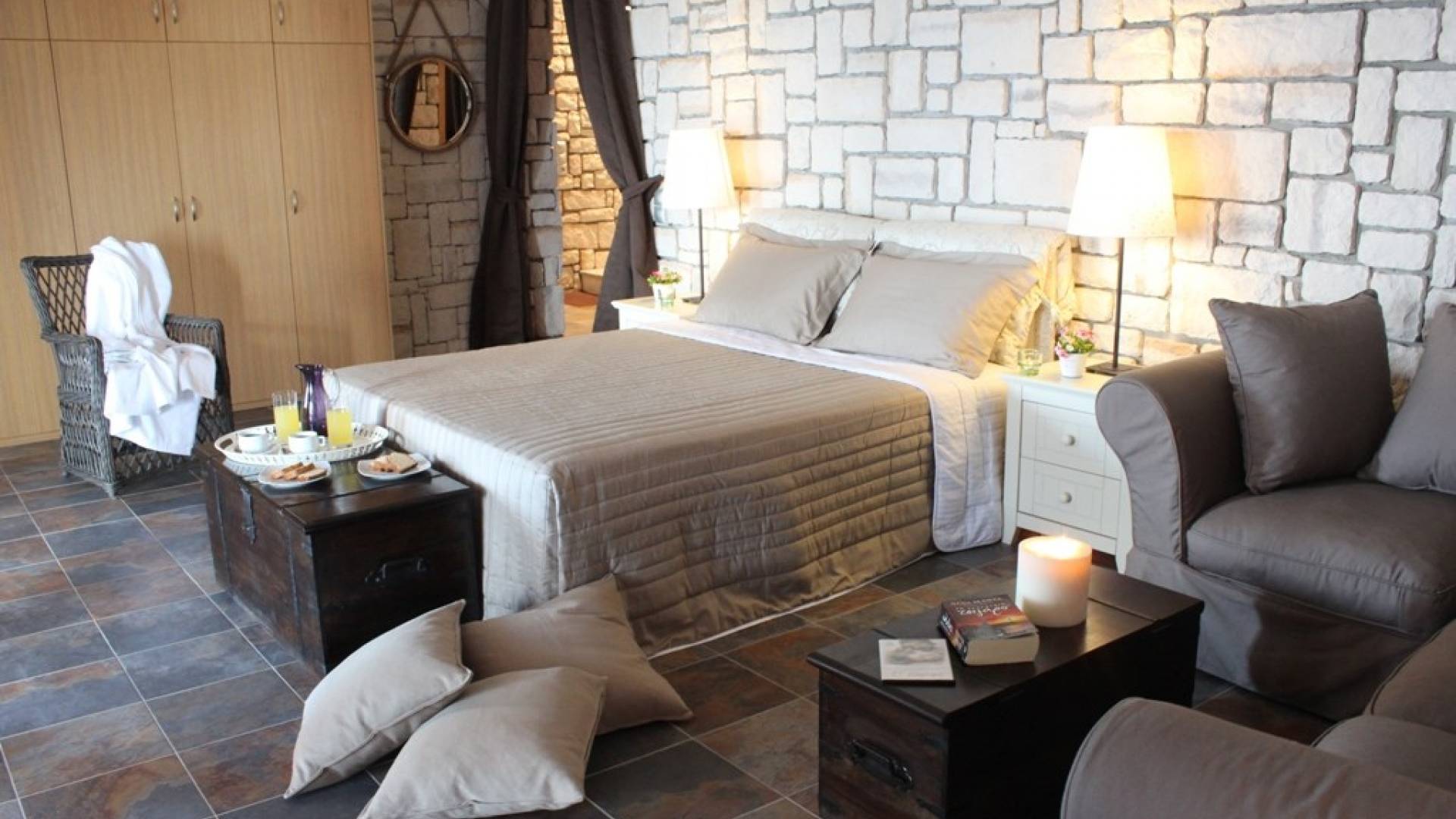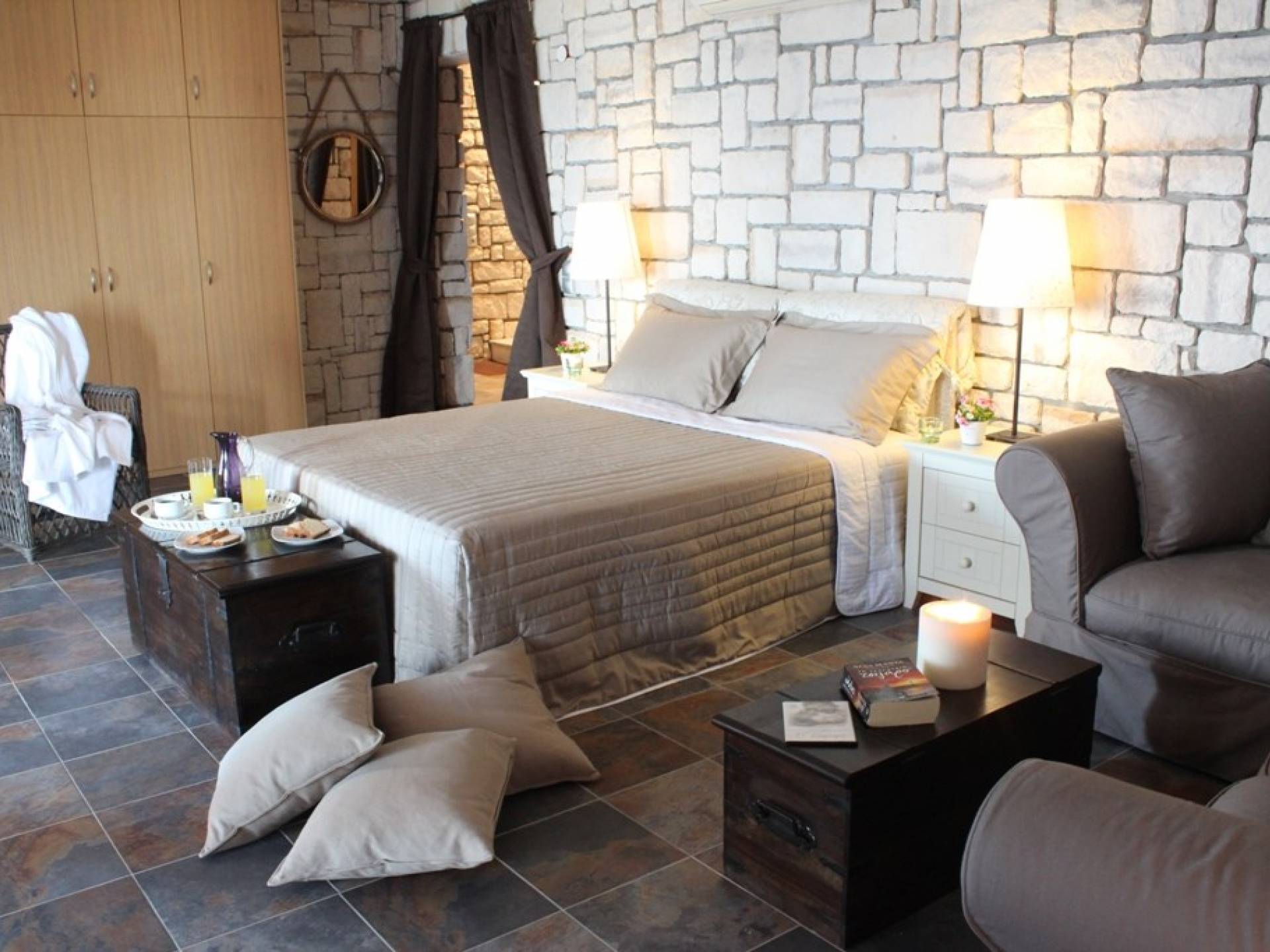 Διαθέτει τζάκι, καθιστικό, χώρο για πρωινό και μεσημεριανό γεύμα και μια άνετη, πολυτελή ιδιωτική κουζίνα. Η κουζίνα είναι πλήρως εξοπλισμένη όχι μόνο με όλες τις σύγχρονες ανέσεις αλλά και με εισαγόμενα έπιπλα τελευταίας τεχνολογίας. Στο ίδιο επίπεδο, υπάρχουν δύο ευρύχωρα υπνοδωμάτια με king-size κρεβάτια, ιδιωτικό μπαλκόνι και δύο μεγάλα μπάνια.