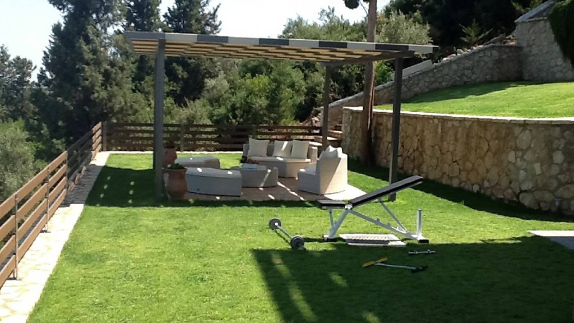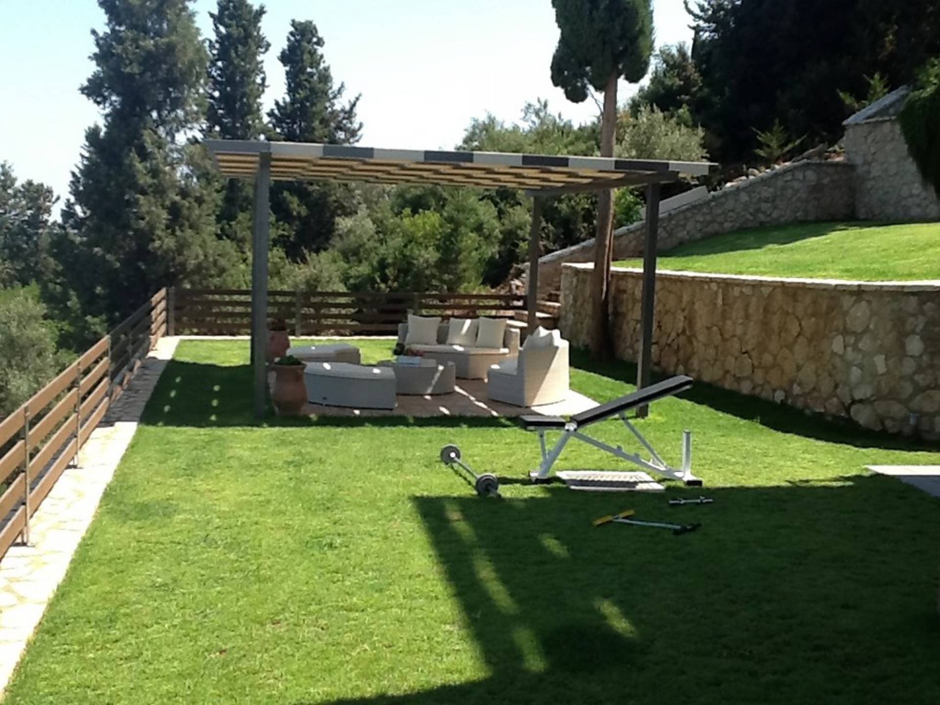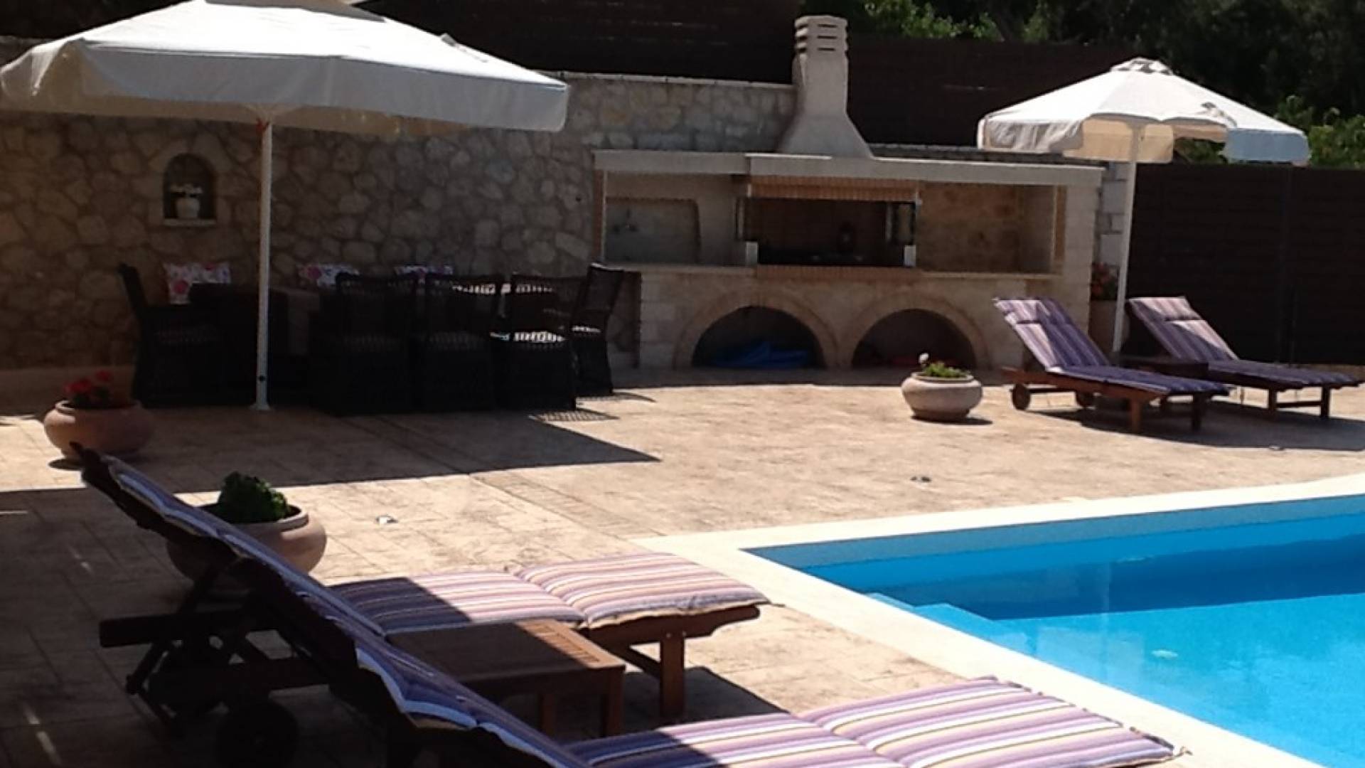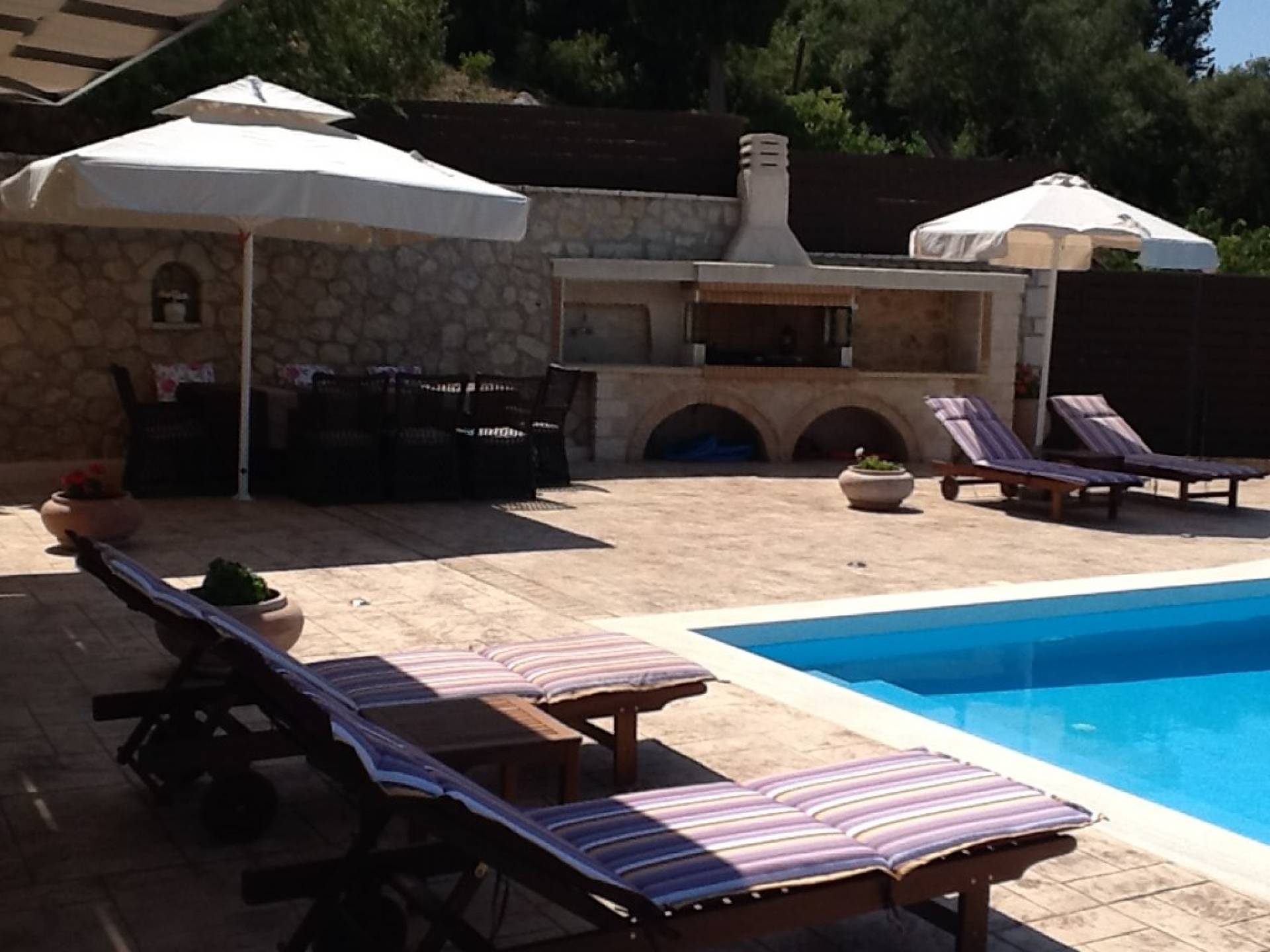 Η πισίνα και ο περιβάλλοντας χώρος με τις ξαπλώστρες σας χαλαρώνουν ενώ το απαλό αεράκι που φυσάει σας αναζωογονεί. Το να ατενίζεις το Ιόνιο με τα πολλά ιστιοπλοϊκά και να ακούς τα τραγούδια των πουλιών είναι μια καταπληκτική εμπειρία! Στο πέτρινο barbeque θα απολαύσετε μοναδικά γκουρμέ πιάτα από ντόπια κρέατα και φρέσκο ψάρι του Ιονίου, που αφθονούν στις ψαροταβέρνες του νησιού.