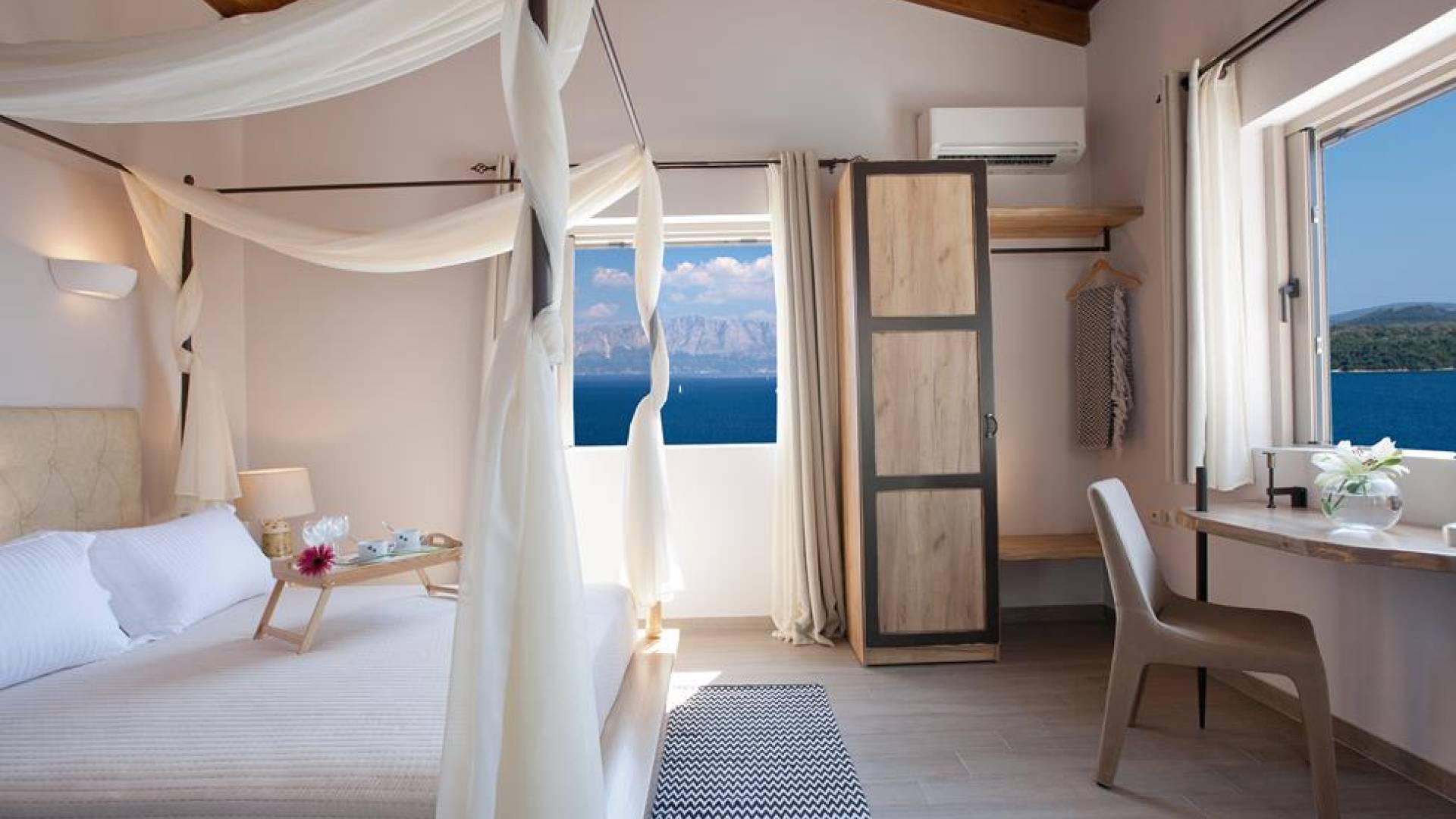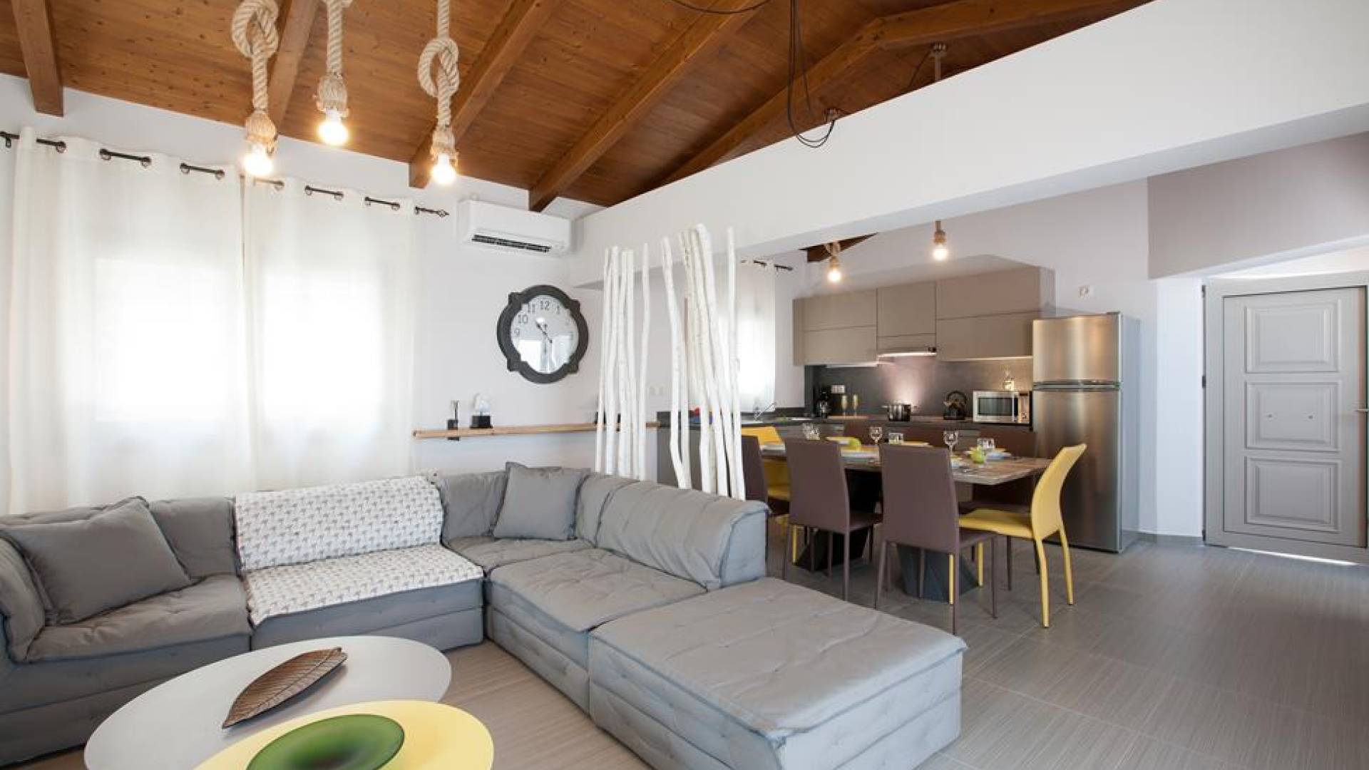 Η κύρια είσοδος οδηγεί κατευθείαν σε ένα άνετο σαλόνι ενιαίας διαρρύθμισης και πλήρως εξοπλισμένη κουζίνα - τραπεζαρία. Ο μεγάλος άνετος γωνιακός καναπές που περιβάλλεται από απαλό vintage φωτισμό κάνει το ιδανικό σημείο για χαλάρωση και απόλαυση της θέα στη θάλασσα. Το κύριο υπνοδωμάτιο είναι επιπλωμένο με ένα μεγάλο διπλό κρεβάτι με ουρανό, διακοσμημένο με φυσική μουσελίνα και τα παράθυρα της κορνίζας επιτρέπουν στο ηλιακό φως και τη θέα στη θάλασσα να ρέουν στο υπνοδωμάτιο. Το δίκλινο υπνοδωμάτιο με μεγάλο διπλό κρεβάτι έχει άμεση πρόσβαση στη βεράντα της πισίνας. Το πολύ ευρύχωρο υπνοδωμάτιο με 2 μονά κρεβάτια διαθέτει δύο μονά κρεβάτια, έναν καναπέ και άνετες τσάντες με φασολάκια, τοποθετημένες γύρω από μια τηλεόραση επίπεδης οθόνης με Playstation.