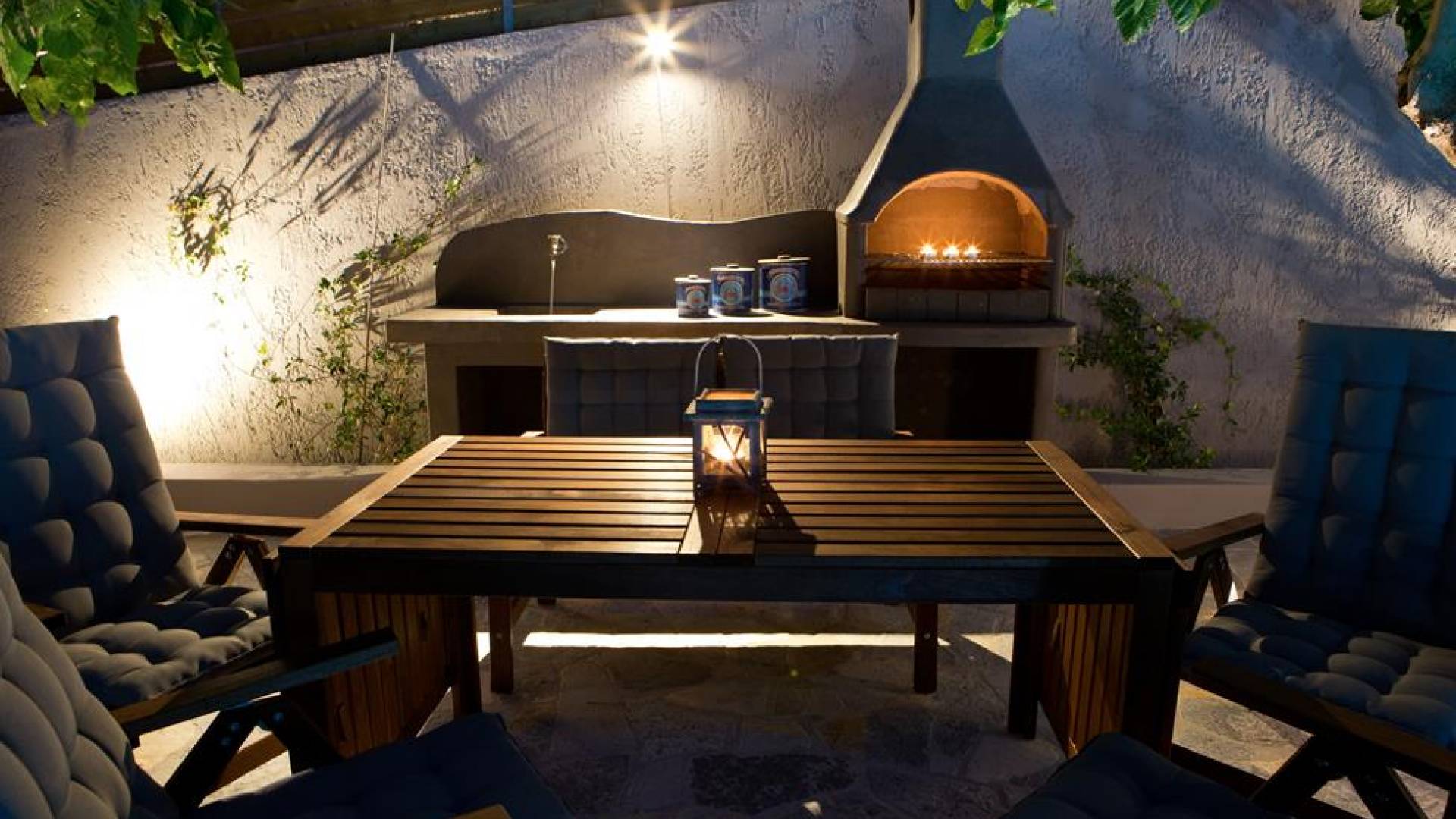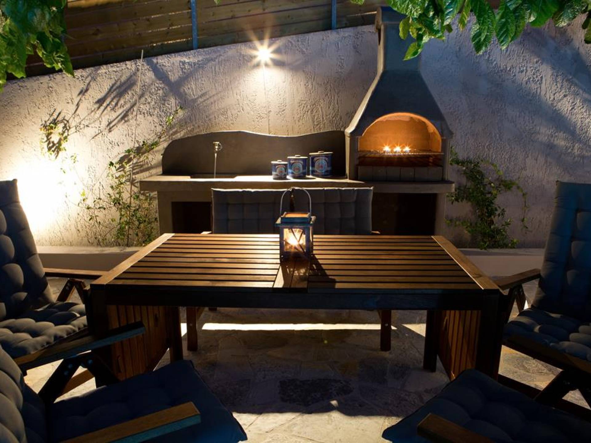 Η ιδιωτική βεράντα της πισίνας έχει σχεδιαστεί με γνώμονα την άνεση και την απόλαυσή σας. Πολλές ξύλινες ξαπλώστρες με χοντρά στρώματα κοσμούν τη βεράντα μαζί με μεγάλα και άνετα μαξιλάρια στα οποία μπορείτε απλώς να βυθιστείτε και να απολαύσετε την ανάγνωση ενός βιβλίου ή την απίστευτη θέα στη θάλασσα. Οι ομπρέλες προσφέρουν σκιά και το υπέροχο χτιστό μπάρμπεκιου και η εξωτερική τραπεζαρία σκιάζεται από ένα ώριμο Linden Tree που το καθιστά ιδανικό για να απολαύσετε πρωινό, μεσημεριανό ή βραδινό.