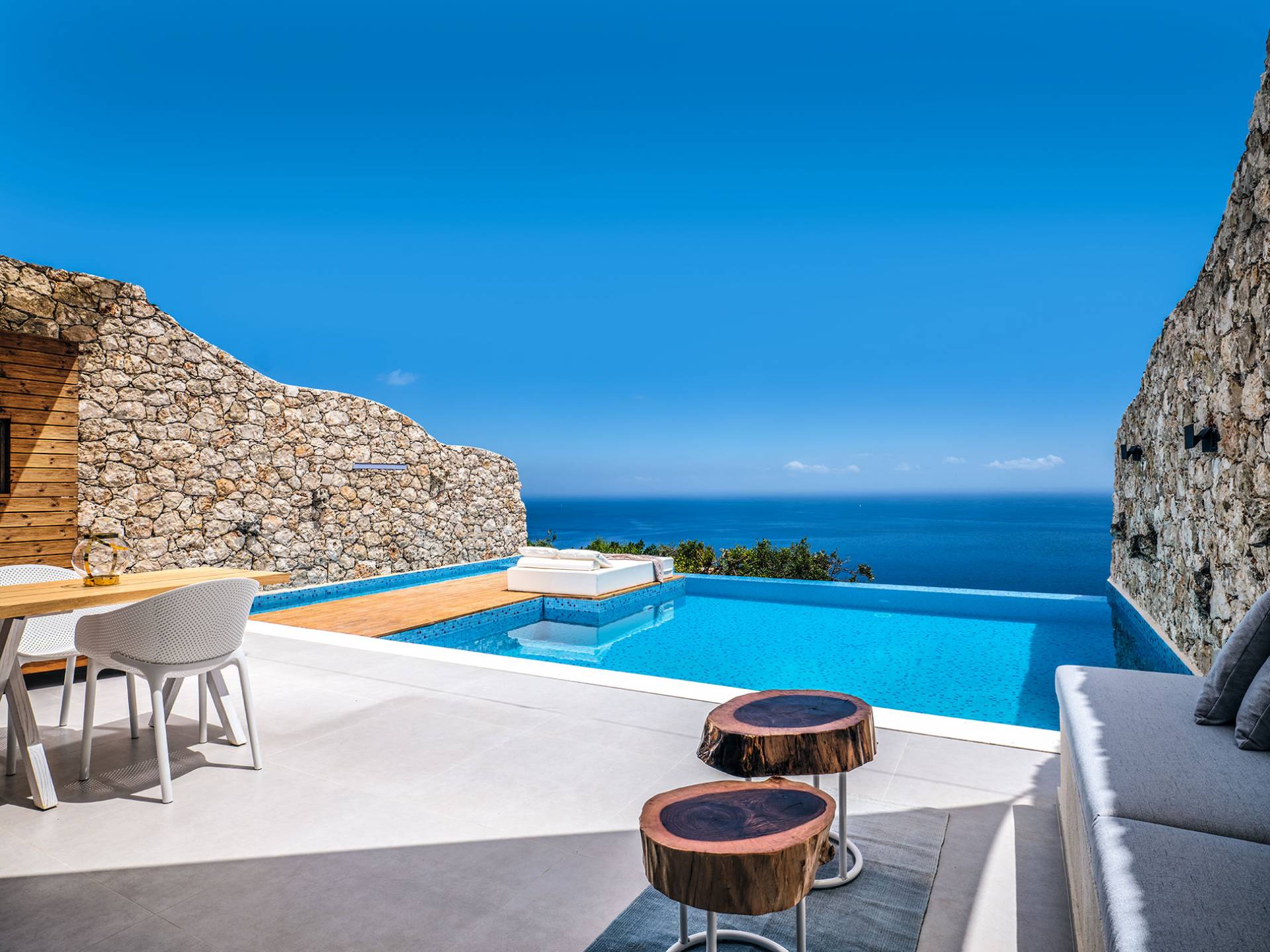 Η Emerald Cave σουίτα είναι χτισμένη στην πλαγιά ενός βράχου και προσφέρει ευρύχωρο σαλόνι με πλήρως εξοπλισμένη κουζίνα, τραπεζαρία, υπνοδωμάτιο ενιαίας διαρρύθμισης με κρεβάτι king-size και ένα μπάνιο με καμπίνα διπλό ντους ψιλής βροχής (για δύο ). Οι συρόμενες γυάλινες πόρτες από το δάπεδο μέχρι την οροφή σας επιτρέπουν, όρθιος οπουδήποτε στη σουίτα, να θαυμάσετε τη θέα. Η εμπειρία δεν σταματά από μέσα. Συνεχίζει στην ιδιωτική σας βεράντα με την πισίνα υπερχείλισης, τον καταρράκτη, την εξωτερική τηλεόραση, τη διπλή ξαπλώστρα και την ανεμπόδιστη θέα στη θάλασσα! Οτιδήποτε χρειάζεται, ενεργοποιώντας όλες τις αισθήσεις του, δημιουργώντας αναμνήσεις που δεν θα ξεχαστούν ποτέ.