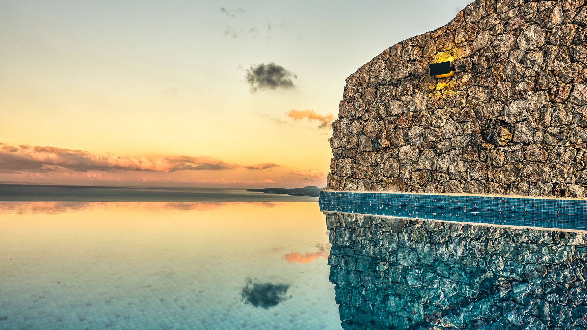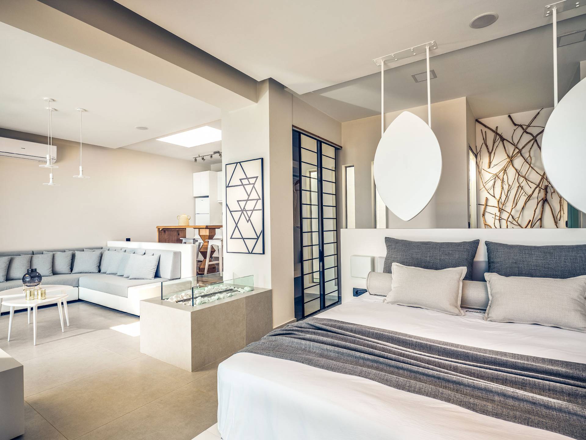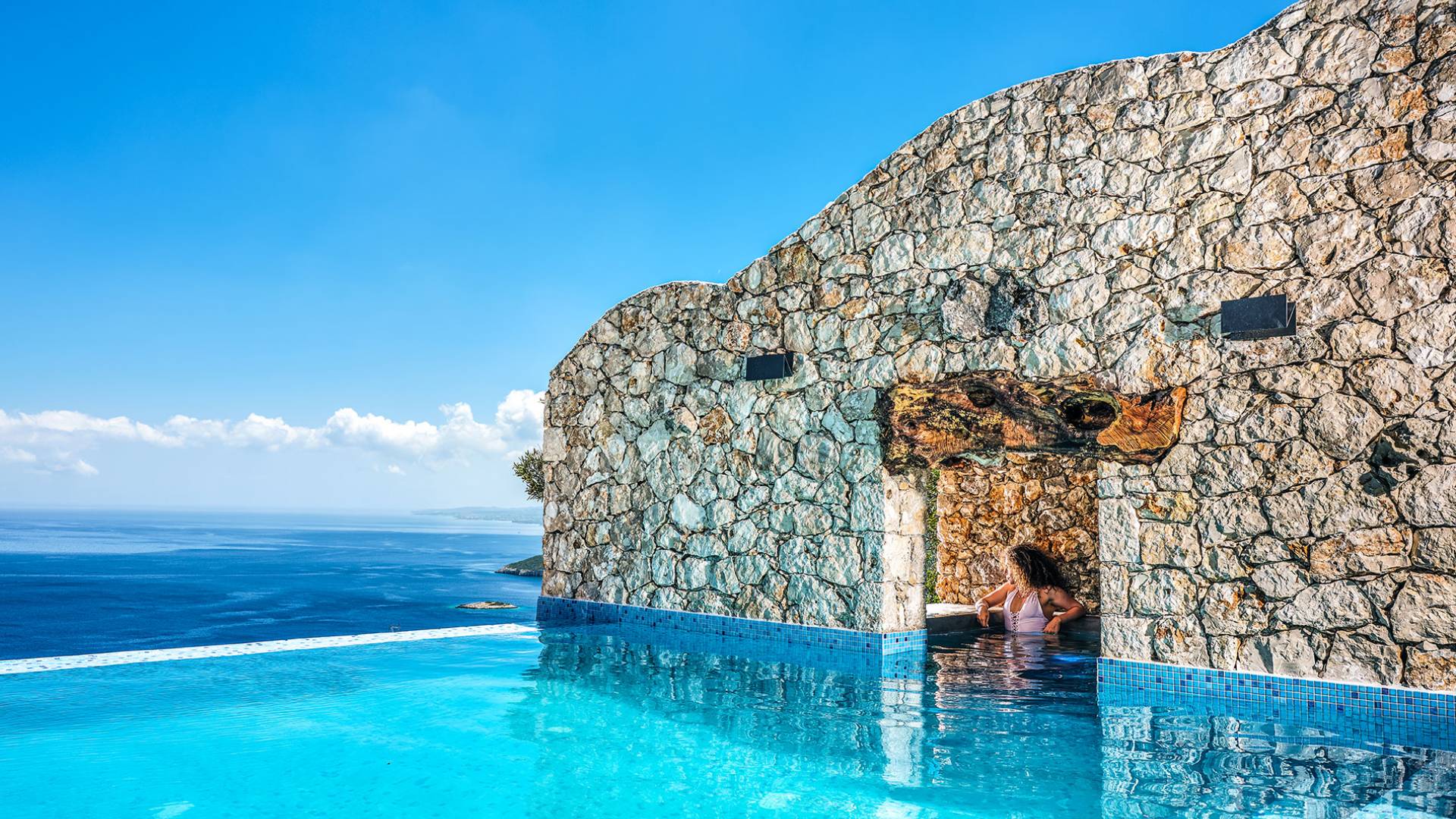Η εμπειρία δεν σταματά από μέσα. Συνεχίζει στην ιδιωτική σας βεράντα με την πισίνα υπερχείλισης, τον καταρράκτη, την εξωτερική τηλεόραση, τη διπλή ξαπλώστρα και την ανεμπόδιστη θέα στη θάλασσα! Το αποκορύφωμα αυτής της σουίτας είναι η εξωτερική πισίνα Hydro Massage και η εξαιρετική εσοχή σπηλαίου στην πισίνα για αξέχαστες στιγμές χαλάρωσης!! Οτιδήποτε χρειάζεται, ενεργοποιώντας όλες τις αισθήσεις του, δημιουργώντας αναμνήσεις που δεν θα ξεχαστούν ποτέ.