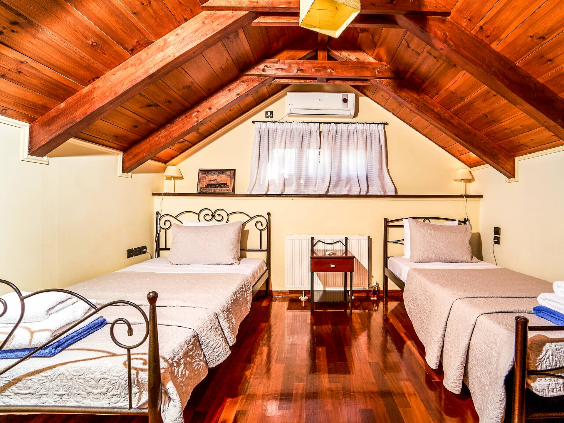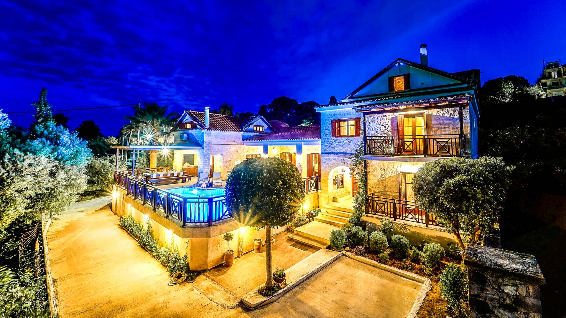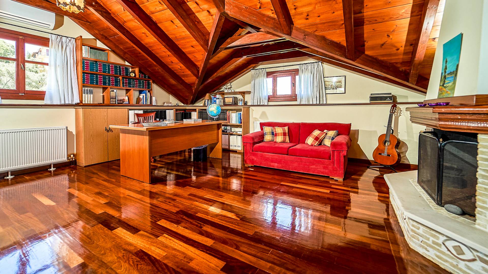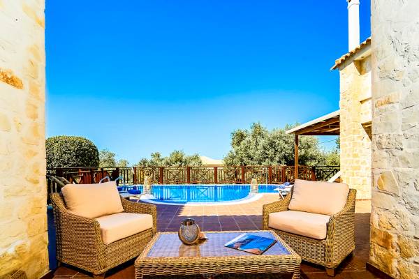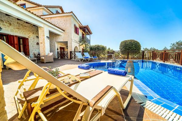 Estel Villa Zakynthos provides privacy and quiet since it is located at the end of a cul de sac, surrounded by greenery. It offers a private pool with hydro-massage, a large veranda, garden, five bedrooms, a very comfortable sitting room with office, free Internet, three bathrooms and two WC. It also has a spacious loft which has been converted into a private office which also has a sofa-bed.