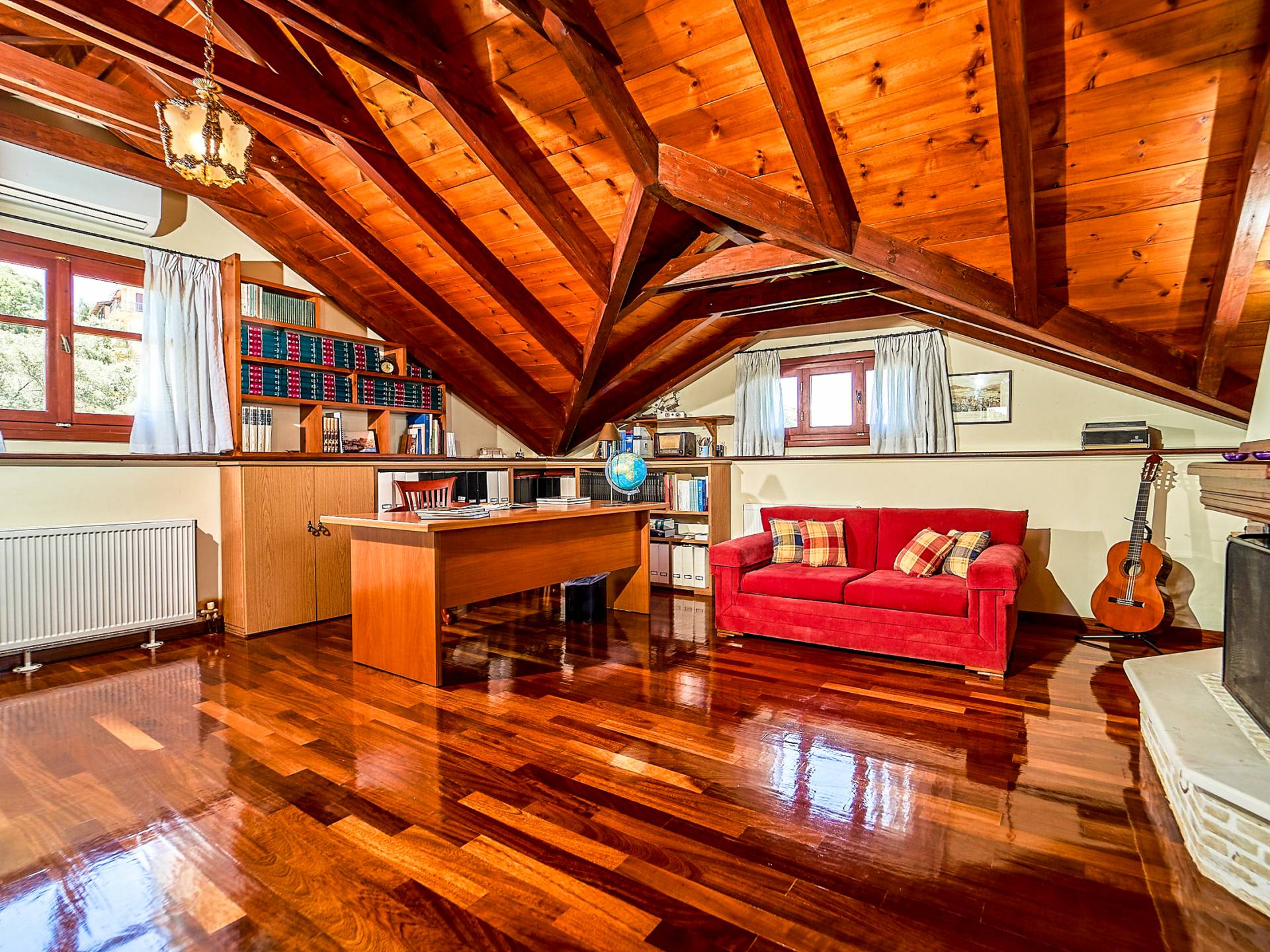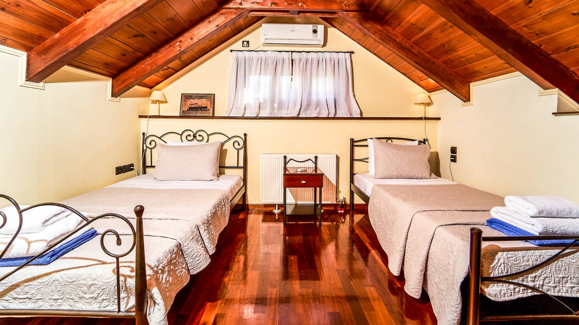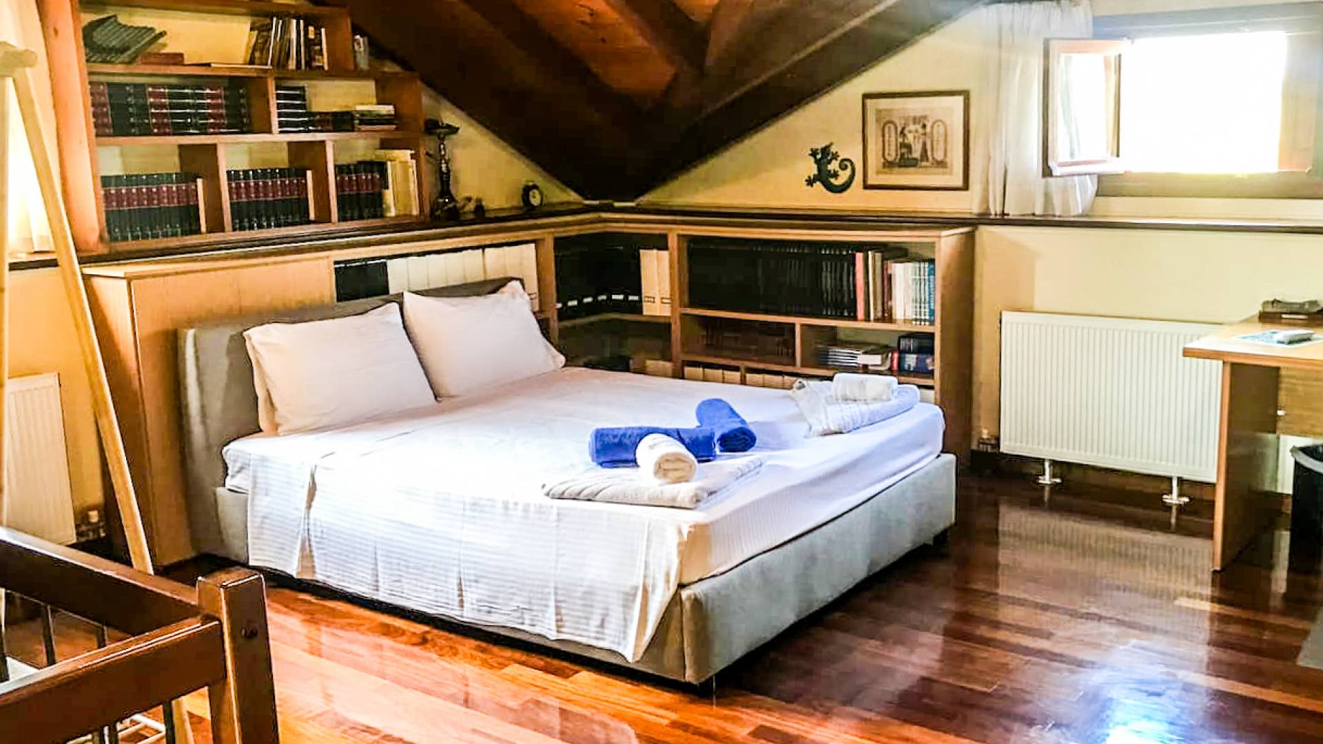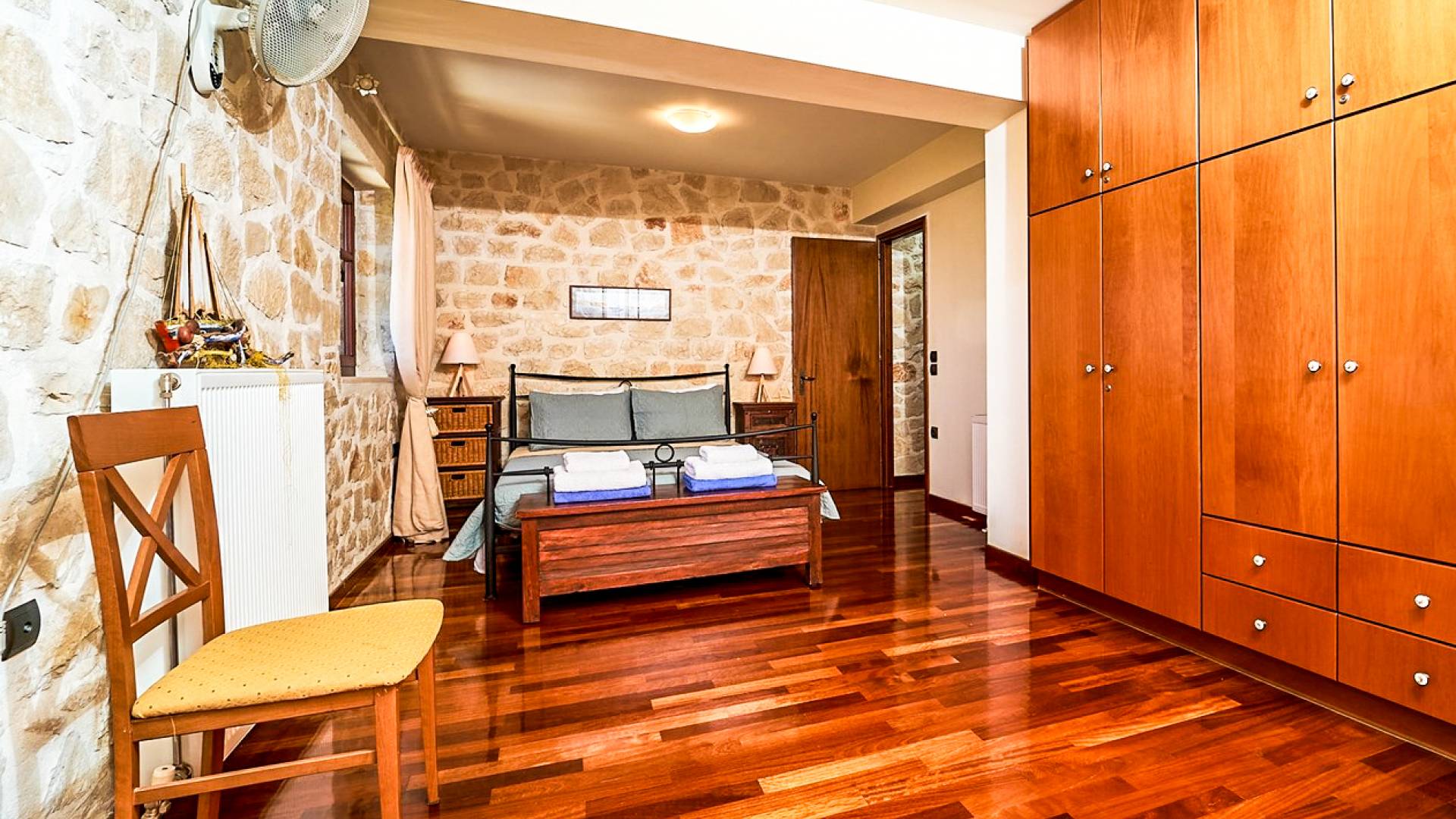 Estel Villa Zakynthos provides privacy and quiet since it is located at the end of a cul de sac, surrounded by greenery. It offers a private pool with hydro-massage, a large veranda, garden, five bedrooms, a very comfortable sitting room with office, free Internet, three bathrooms and two WC. It also has a spacious loft which has been converted into a private office which also has a sofa-bed.
