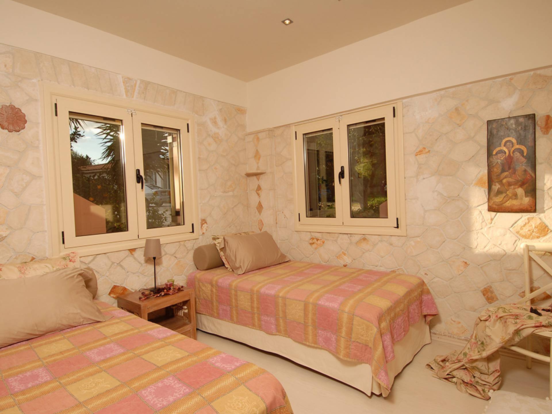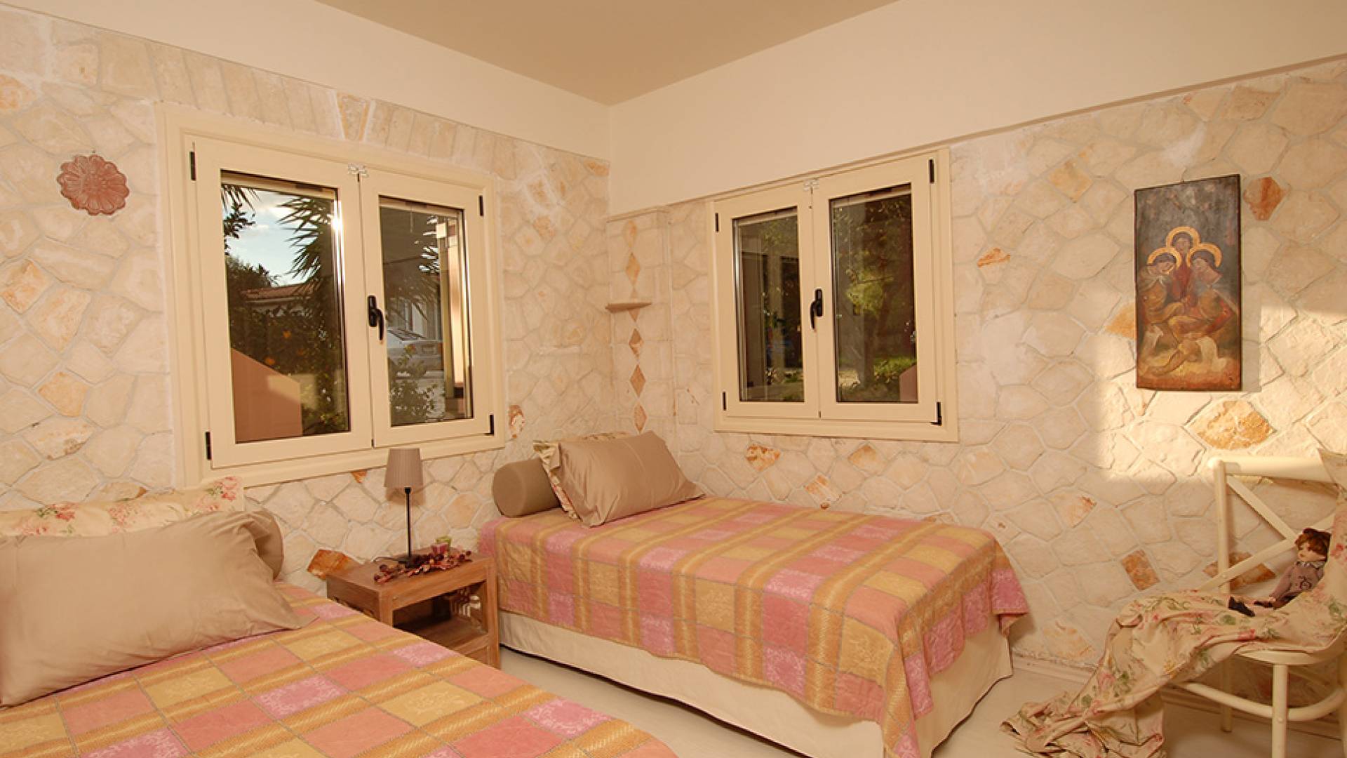Αυτή η εξαιρετική βίλα προσφέρει εμπνευσμένη θέα στο Ιόνιο Πέλαγος και το υπέροχο ηλιοβασίλεμα. Το 110τμ αποτελείται από τρία υπνοδωμάτια. το ένα υπνοδωμάτιο διαθέτει ένα άνετο κρεβάτι king size και τα άλλα δύο υπνοδωμάτια αποτελούνται από δύο μονά κρεβάτια. Υπάρχουν επίσης δύο κομψά μπάνια (το ένα με μπανιέρα και το άλλο με ντους), ένα ευρύχωρο σαλόνι με τζάκι και μια πλήρως εξοπλισμένη μοντέρνα κουζίνα. Τα υπερμεγέθη παράθυρα προσφέρουν φυσικό ηλιακό φως και υπέροχη θέα στη θάλασσα και τον ορίζοντα, καθώς και την ιδιωτική αυλή με πλούσιο πράσινο 70τμ και άνετα έπιπλα τραπεζαρίας. Στη βίλα, έχετε την ευκαιρία να απολαύσετε ποιότητα ύπνου COCO-MAT και ανέσεις Apivita.