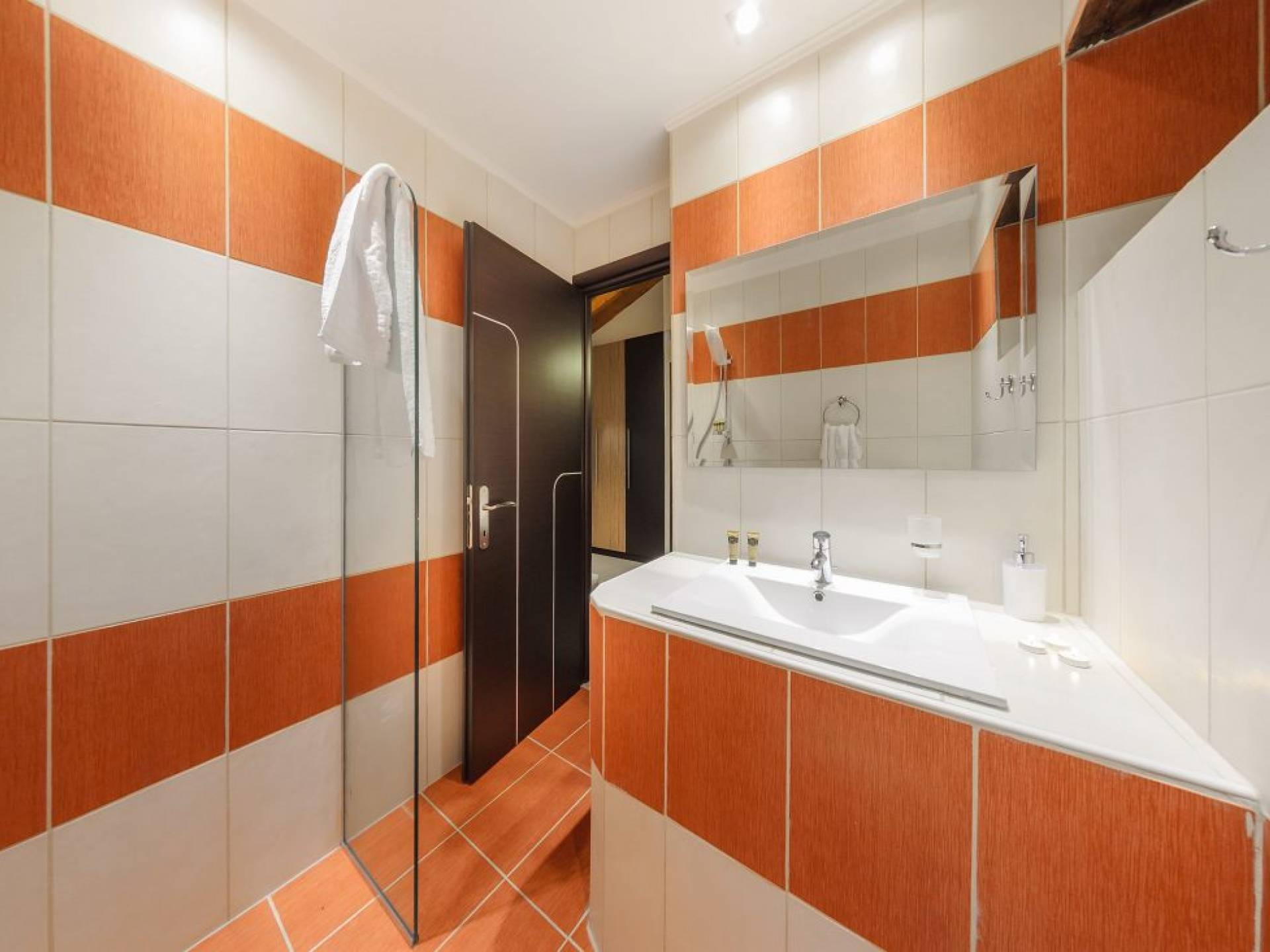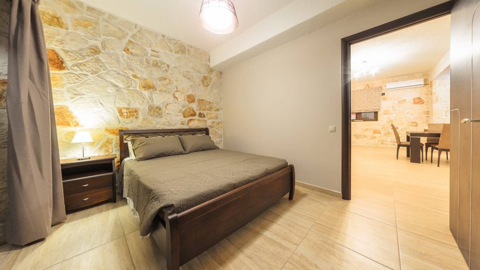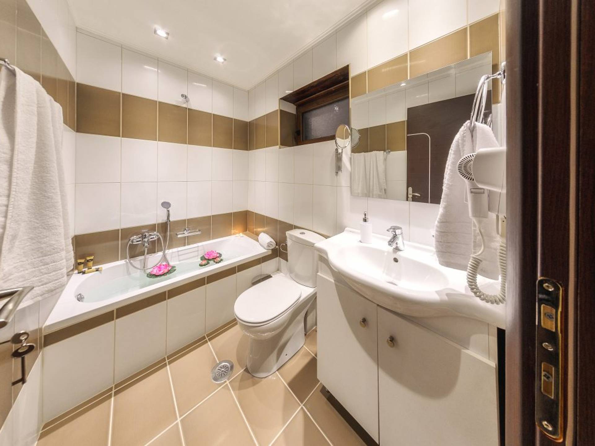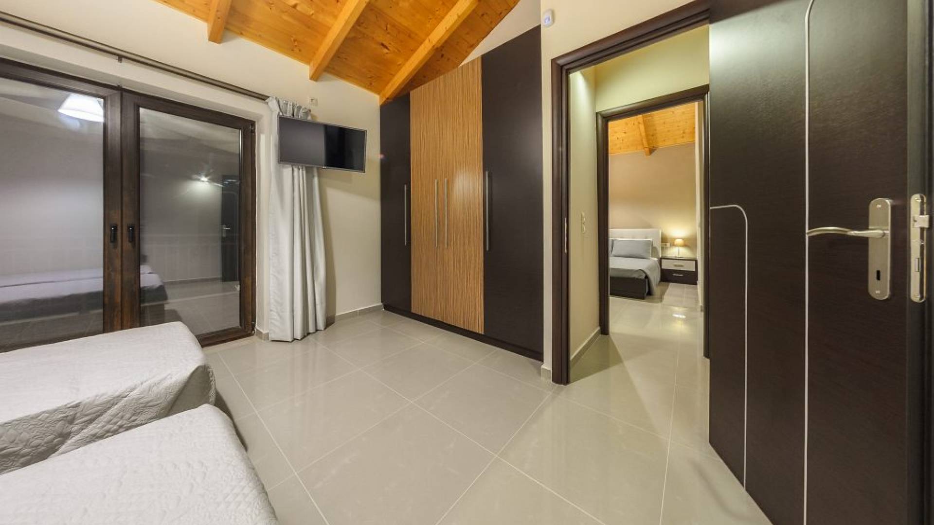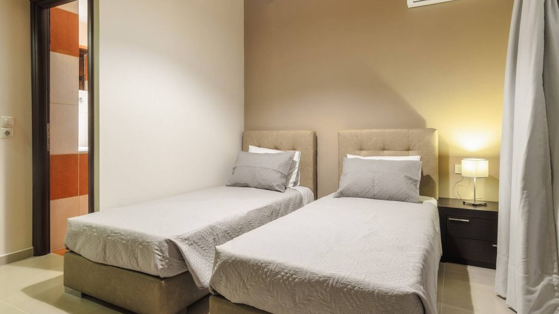 Μέσω της εσωτερικής σκάλας, οι επισκέπτες μπορούν να έχουν πρόσβαση στον πρώτο όροφο, ο οποίος αποτελείται από 2 ακόμη υπνοδωμάτια και 2 ακόμη μπάνια. Το κυρίως υπνοδωμάτιο προσφέρει διπλό κρεβάτι, θυρίδα ασφαλείας, μεγάλη ντουλάπα, καθρέφτη ομορφιάς, τηλεόραση, πόρτες βεράντας και ιδιωτικό μπάνιο με νιπτήρα, τουαλέτα και μπανιέρα. Το δεύτερο υπνοδωμάτιο διαθέτει 2 μονά κρεβάτια, WC με ντους, ντουλάπα και τηλεόραση. Ολόκληρη η βίλα είναι πλήρως κλιματιζόμενη.