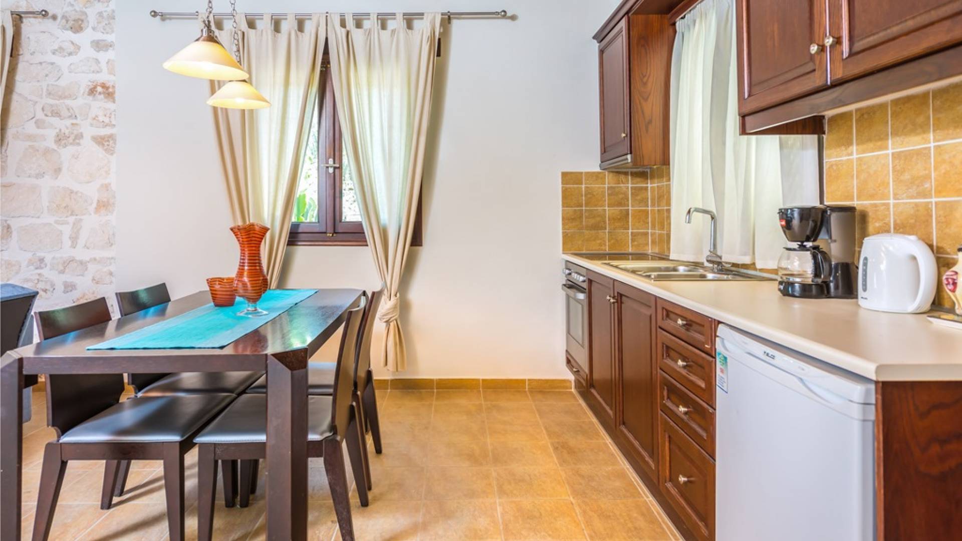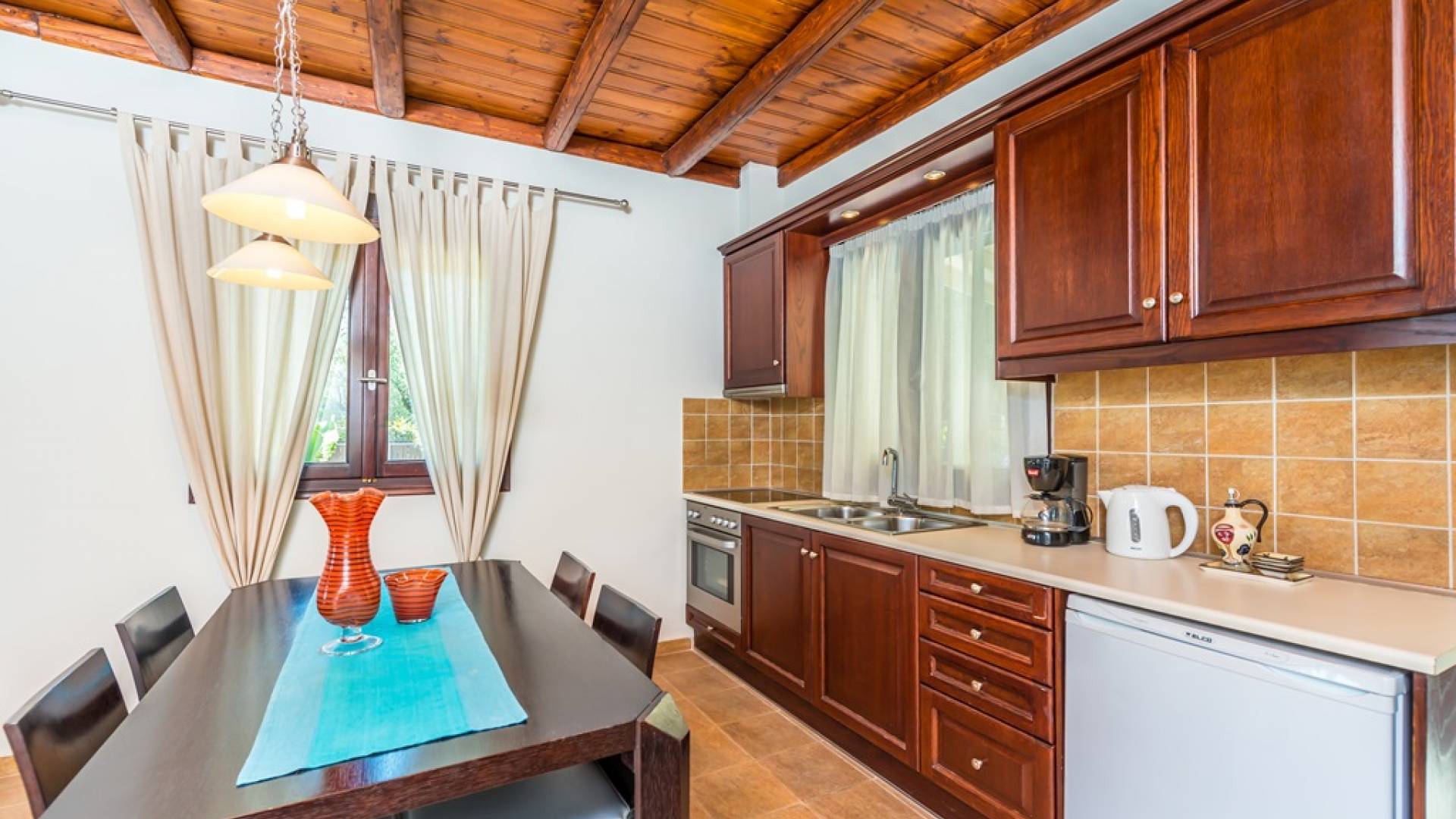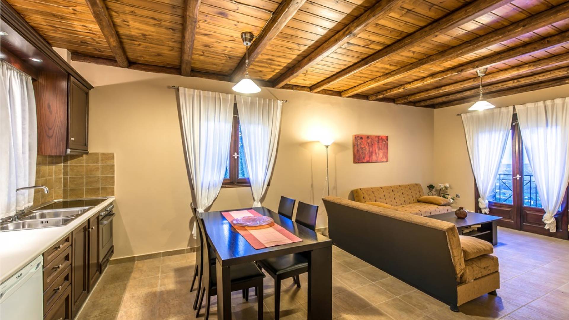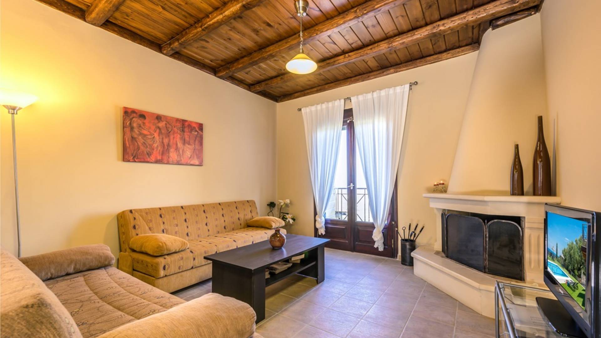 Αυτό το διαμέρισμα ενός υπνοδωματίου (με εμβαδόν 65τμ) είναι κατάλληλο για 2-4 άτομα. Αποτελείται από ξεχωριστό υπνοδωμάτιο με διπλό κρεβάτι και τηλεόραση, ευρύχωρο σαλόνι με δύο καναπέδες-κρεβάτια (ο καθένας κατάλληλος για ένα άτομο), τηλεόραση με οθόνη plasma και τζάκι. πλήρως εξοπλισμένη κουζίνα με φούρνο, ψυγείο, βραστήρα και όλα τα σκεύη. μπάνιο με ντους και στεγνωτήρα μαλλιών, θυρίδα ασφαλείας και επιπλωμένο μπαλκόνι με απεριόριστη θέα στο Ιόνιο Πέλαγος, την ύπαιθρο και τους πολύχρωμους κήπους. Το διαμέρισμα διαθέτει επίσης κλιματισμό σε όλους τους χώρους.