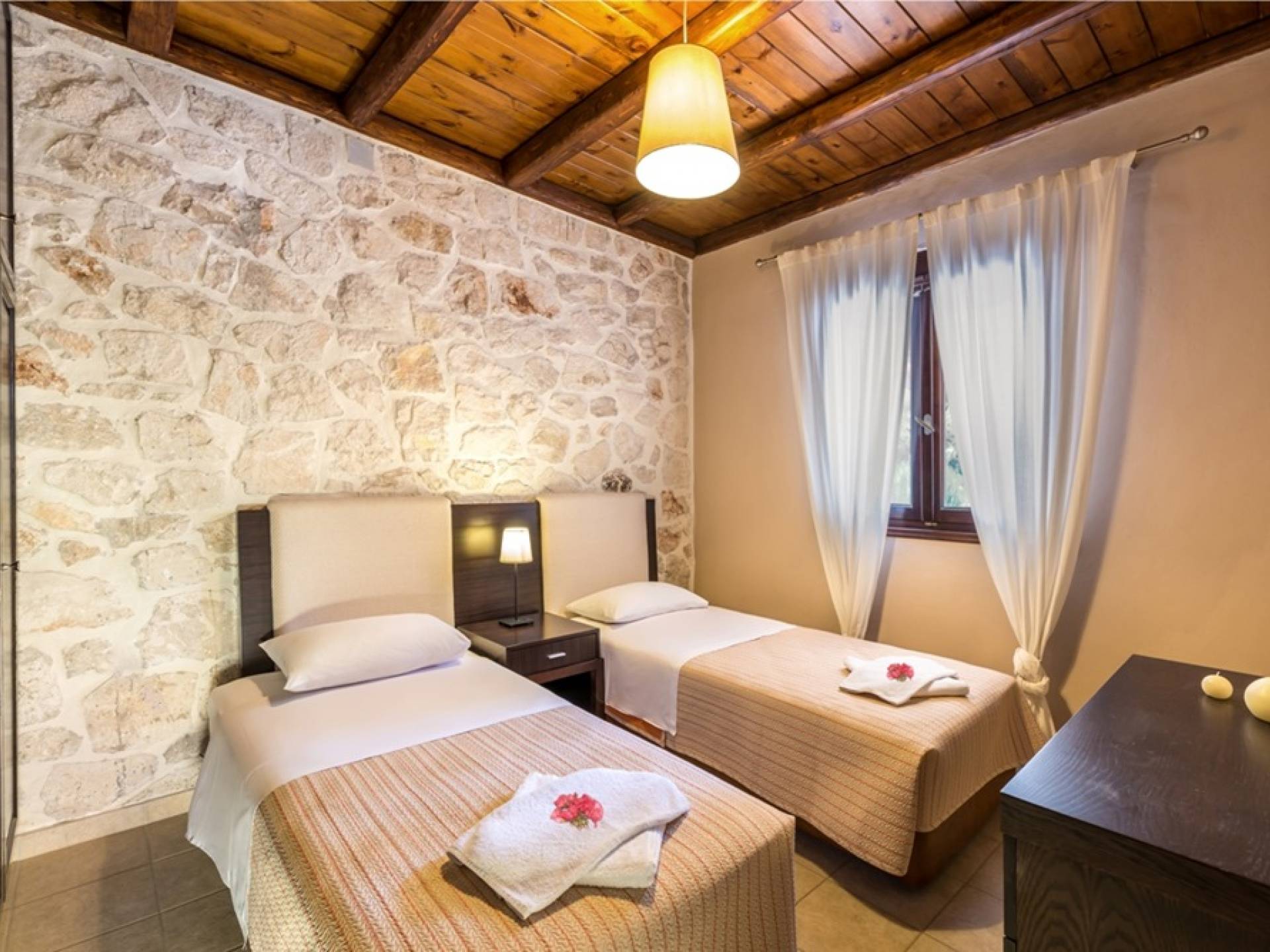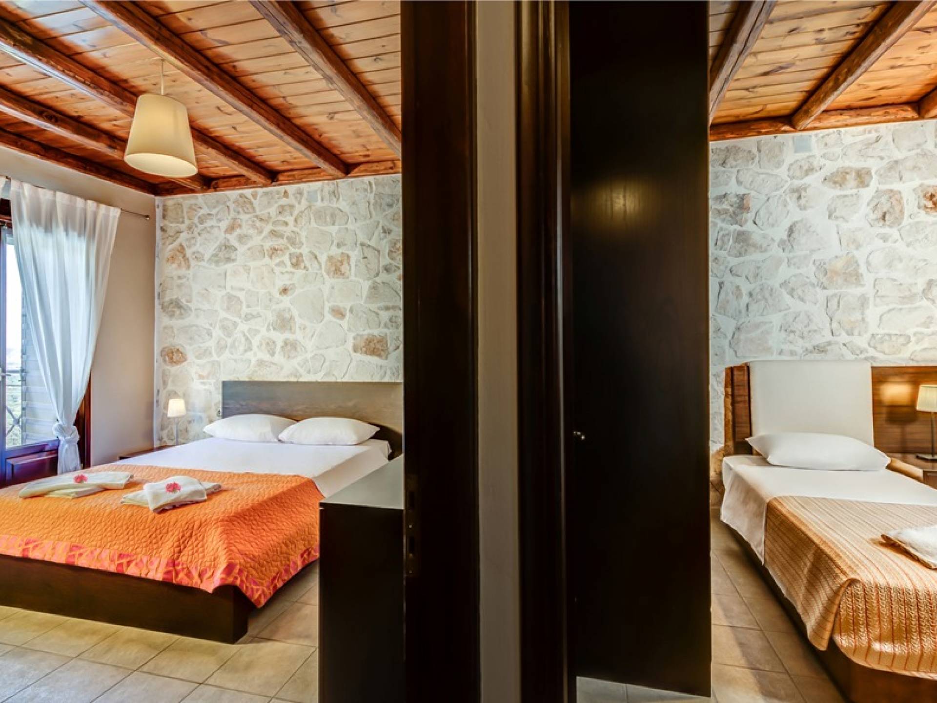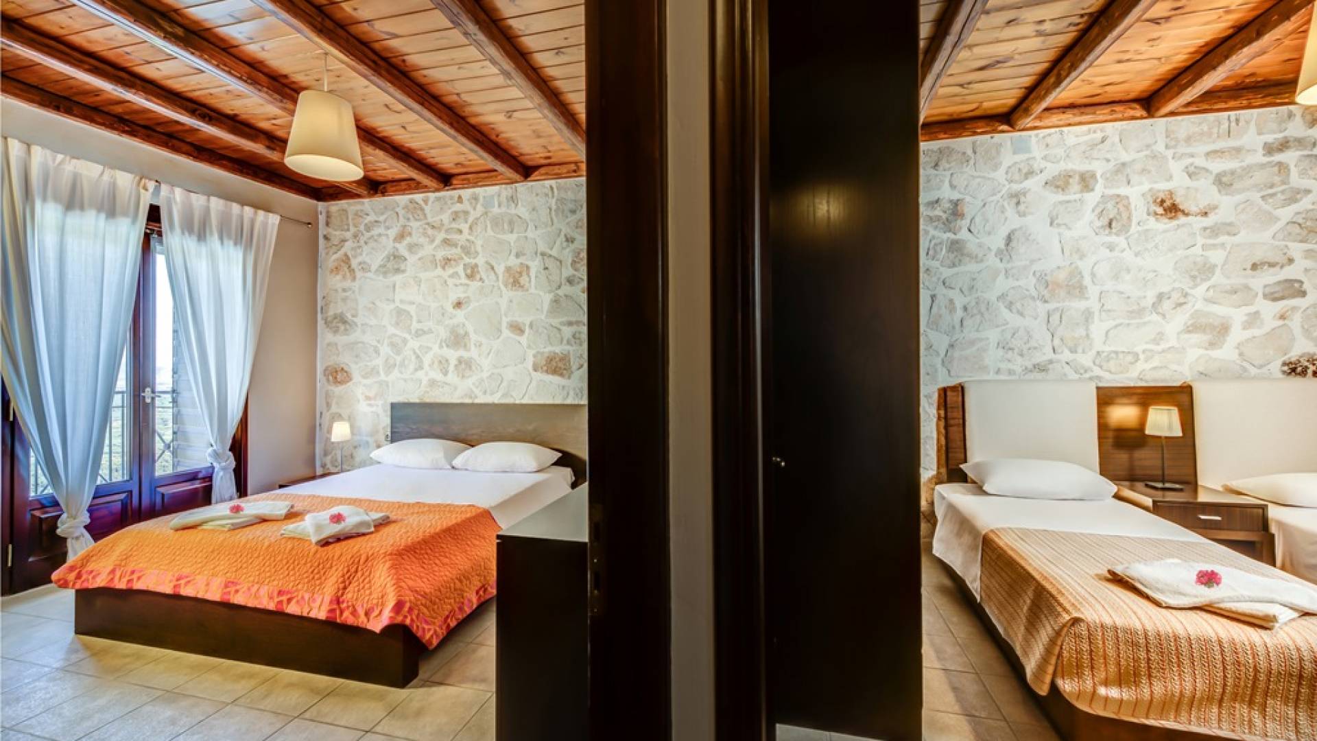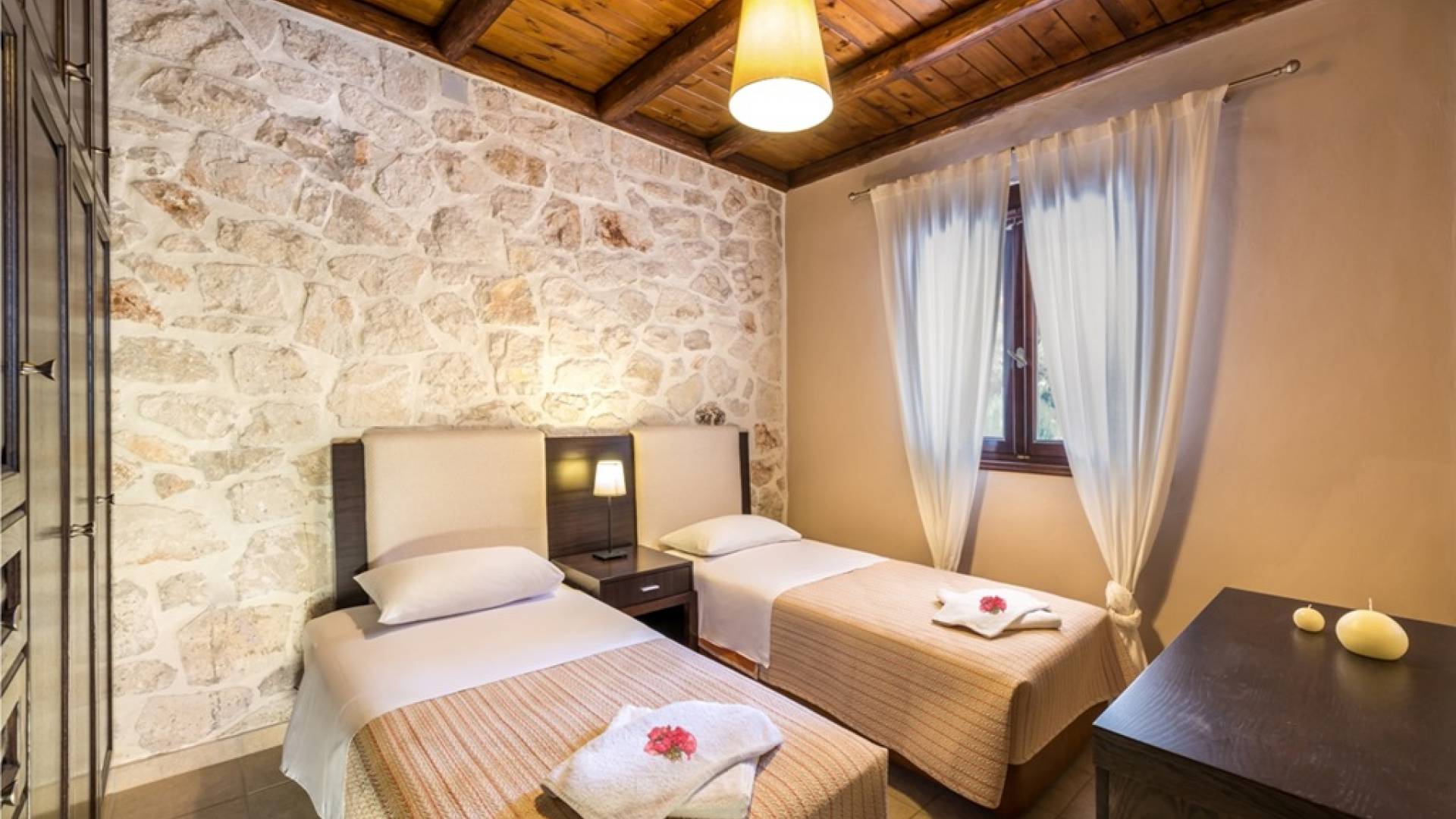 Λόγω της απομακρυσμένης τοποθεσίας του, είναι η τέλεια απόδραση για χαλαρωτικές διακοπές χωρίς άγχος, προσφέροντας φυσικό περιβάλλον και υπέροχο τοπίο. Τα διαμερίσματα είναι κατάλληλα για οικογένειες, ζευγάρια ή παρέες φίλων που αναζητούν πολυτελή διαμονή σε μια ήσυχη και χαλαρωτική περιοχή. Το διαμέρισμα 2 υπνοδωματίων στη Villa Agrikia (με εμβαδόν 75τμ) είναι μια πινελιά πιο πολυτελές και μπορεί να φιλοξενήσει 4-6 άτομα. Αποτελείται από δύο ξεχωριστά υπνοδωμάτια με τηλεοράσεις, το ένα με διπλό κρεβάτι και το άλλο με δύο μονά. Ευρύχωρο σαλόνι με δύο καναπέδες-κρεβάτια (ο καθένας είναι κατάλληλος για ένα άτομο), τηλεόραση με οθόνη plasma και τζάκι. πλήρως εξοπλισμένη κουζίνα με φούρνο, ψυγείο, βραστήρα και όλα τα σκεύη. μπάνιο με μπανιέρα και στεγνωτήρα μαλλιών, θυρίδα ασφαλείας και επιπλωμένο μπαλκόνι με απεριόριστη θέα στο Ιόνιο Πέλαγος, τη γραφική εξοχή και τους όμορφους κήπους. Το διαμέρισμα διαθέτει επίσης κλιματισμό σε όλους τους χώρους.
